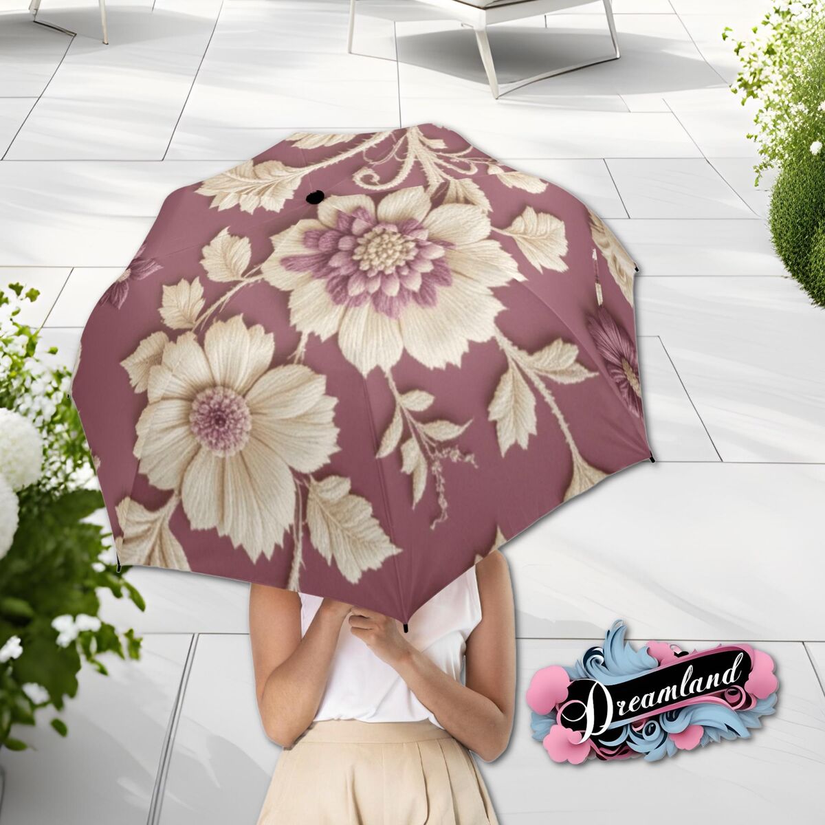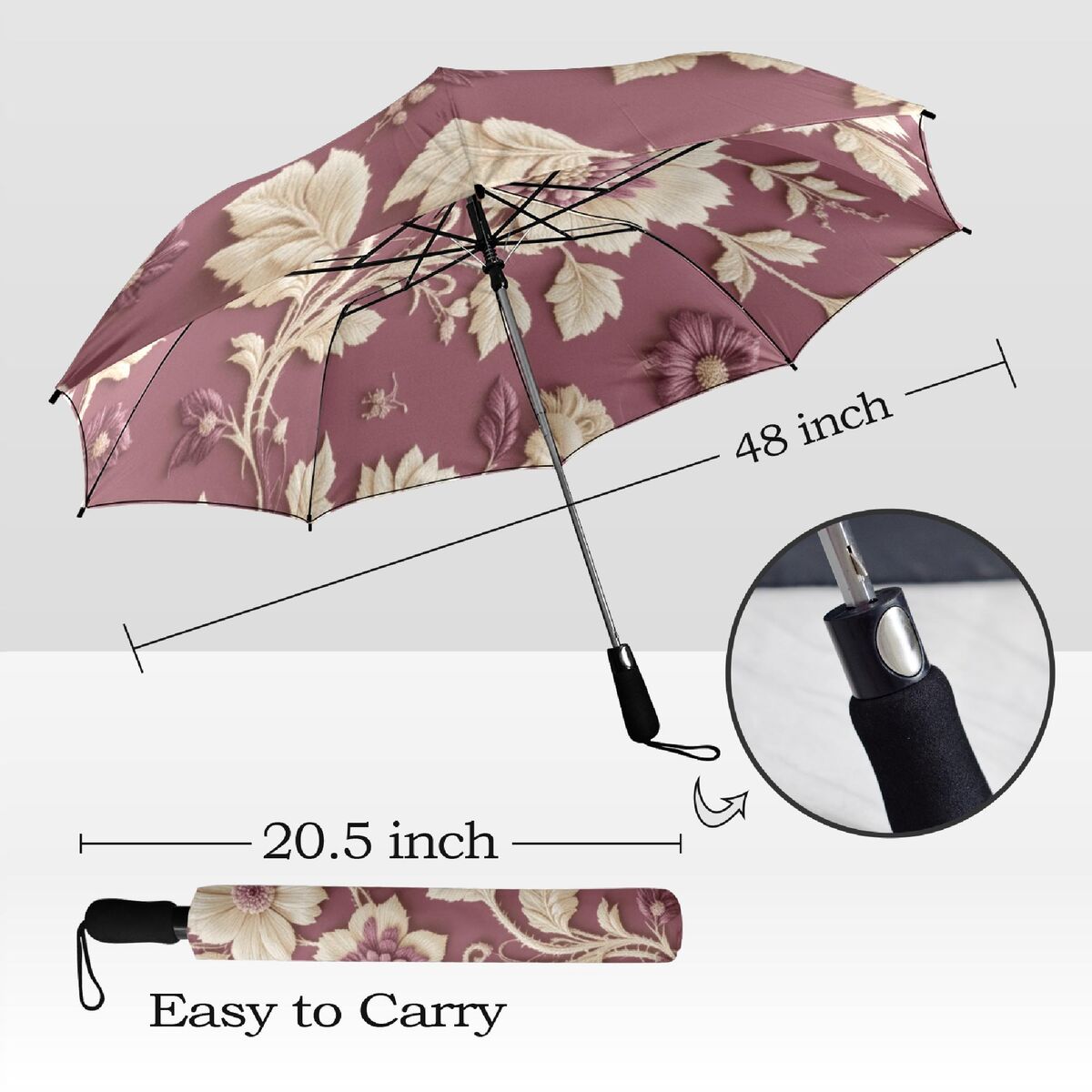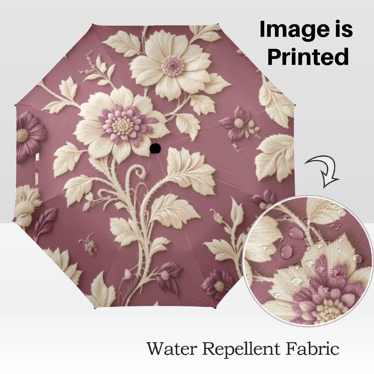 Dark Berry Pink Flower Umbrella Pink Art Nouveau Printed Flowers Floral Parasol Semi-Automatic Waterproof Foldable Umbrella