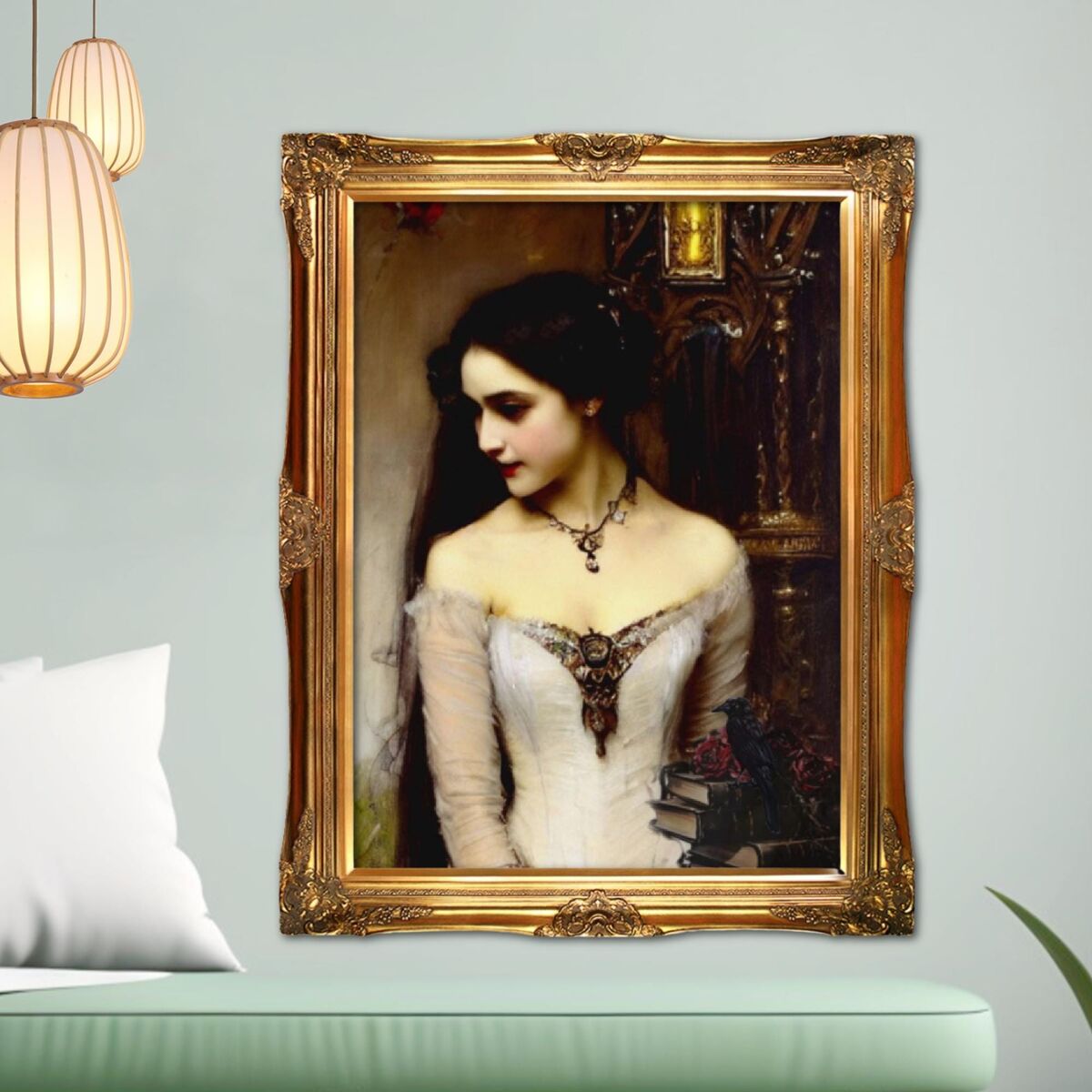 Elevate your space with this stunning victorian Painting Print featuring a girl, perfect for those who appreciate the allure of dark academia. This oil painting print captures the essence of the victorian era, rendered in rich, moody tones that add depth and character to any room. Ideal for creating a dramatic focal poinr