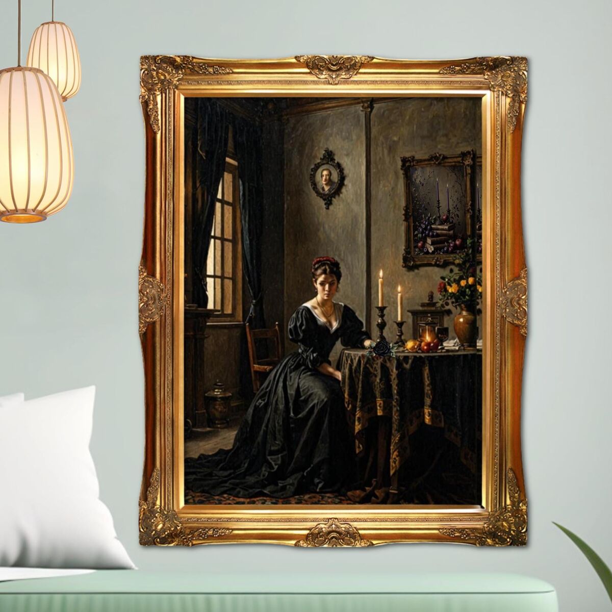 Elevate your space with this stunning victorian Painting Print featuring a girl, perfect for those who appreciate the allure of dark academia. This oil painting print captures the essence of the victorian era, rendered in rich, moody tones that add depth and character to any room. Ideal for creating a dramatic focal poinr