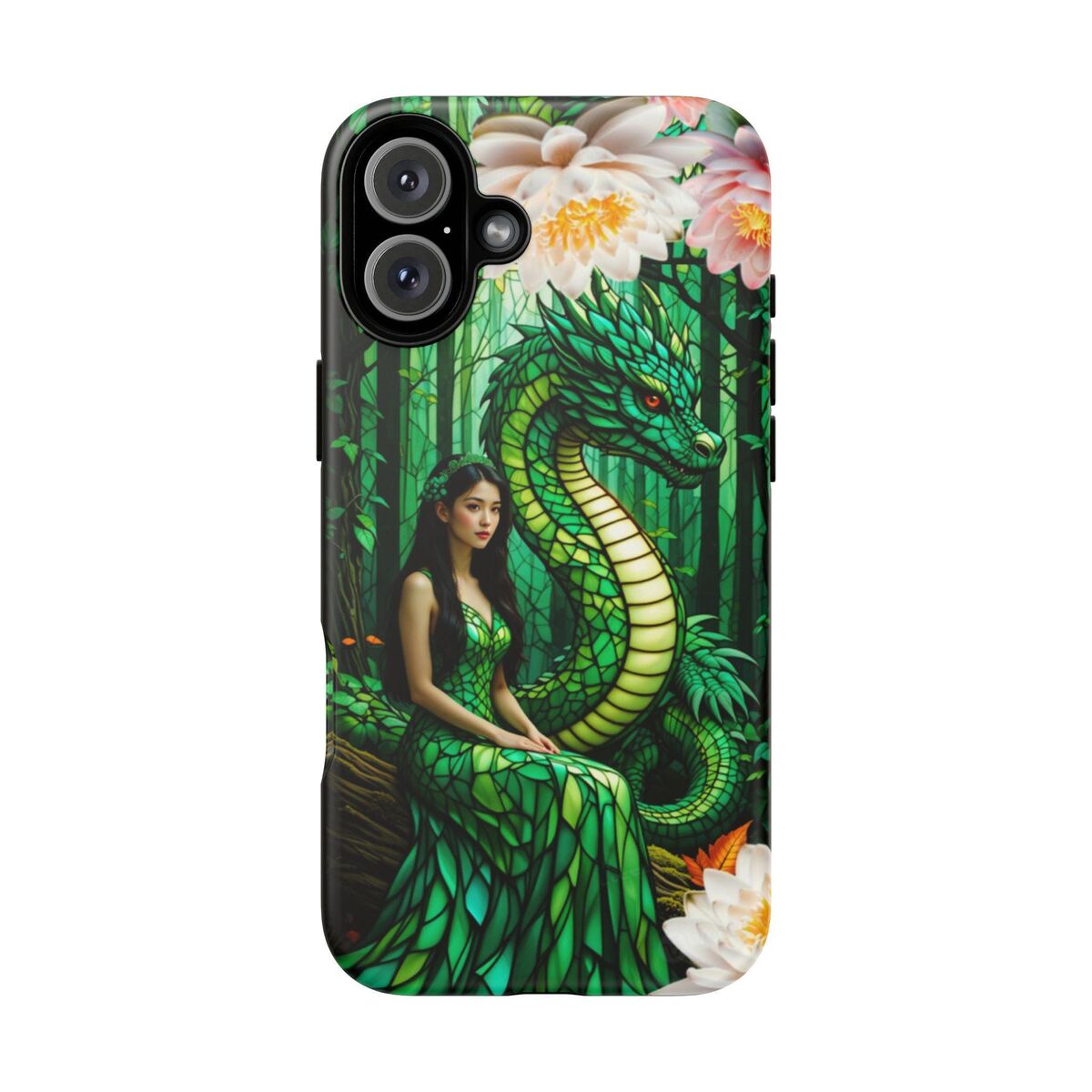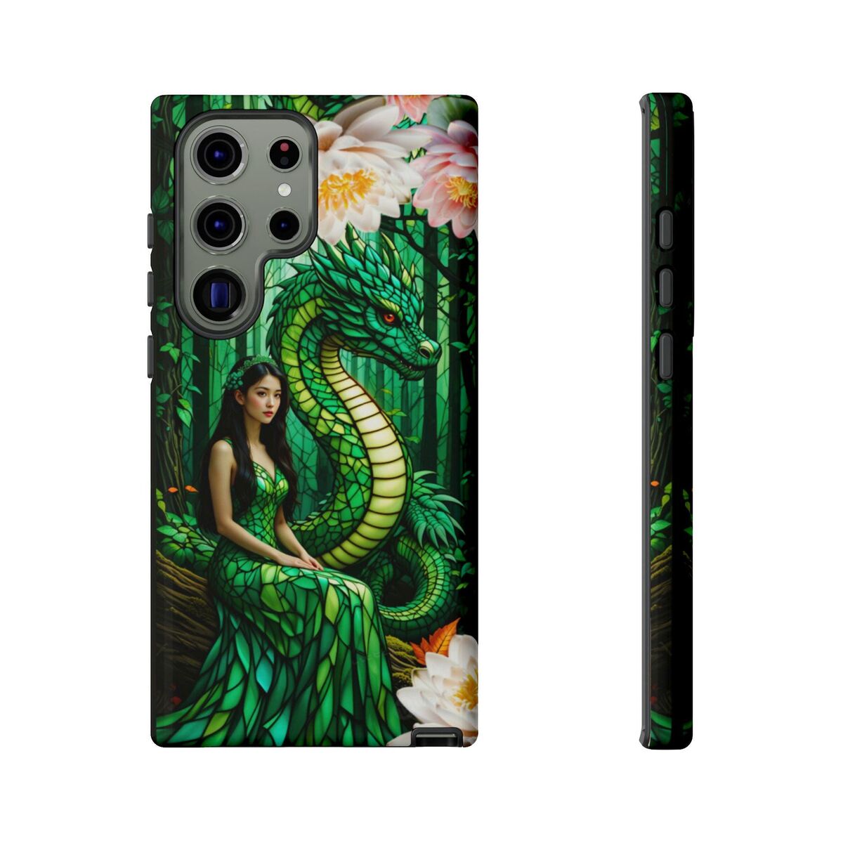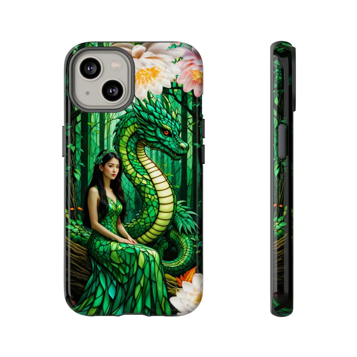 Dragon Forest Elf Phone Case Faux Stained Glass Fits iphone 16 15 14 13 Galaxy S25 S24 S23 Pixel And More
