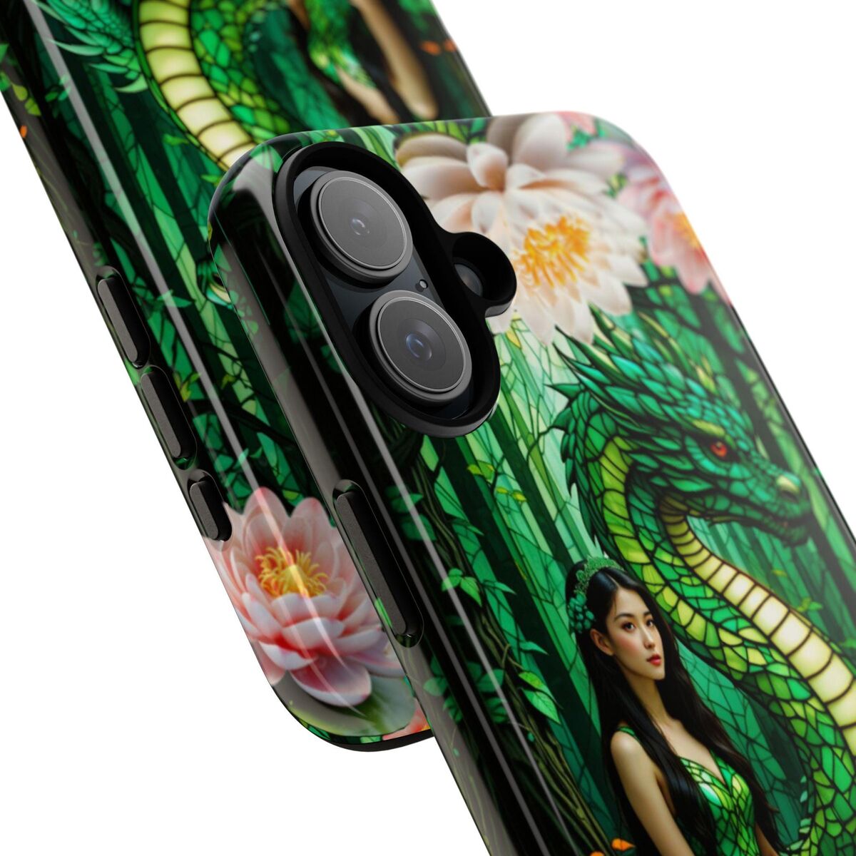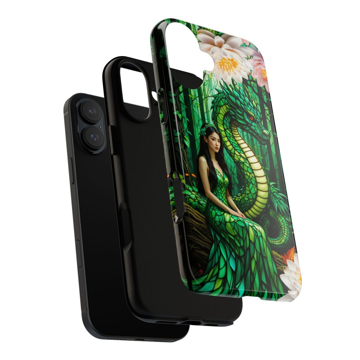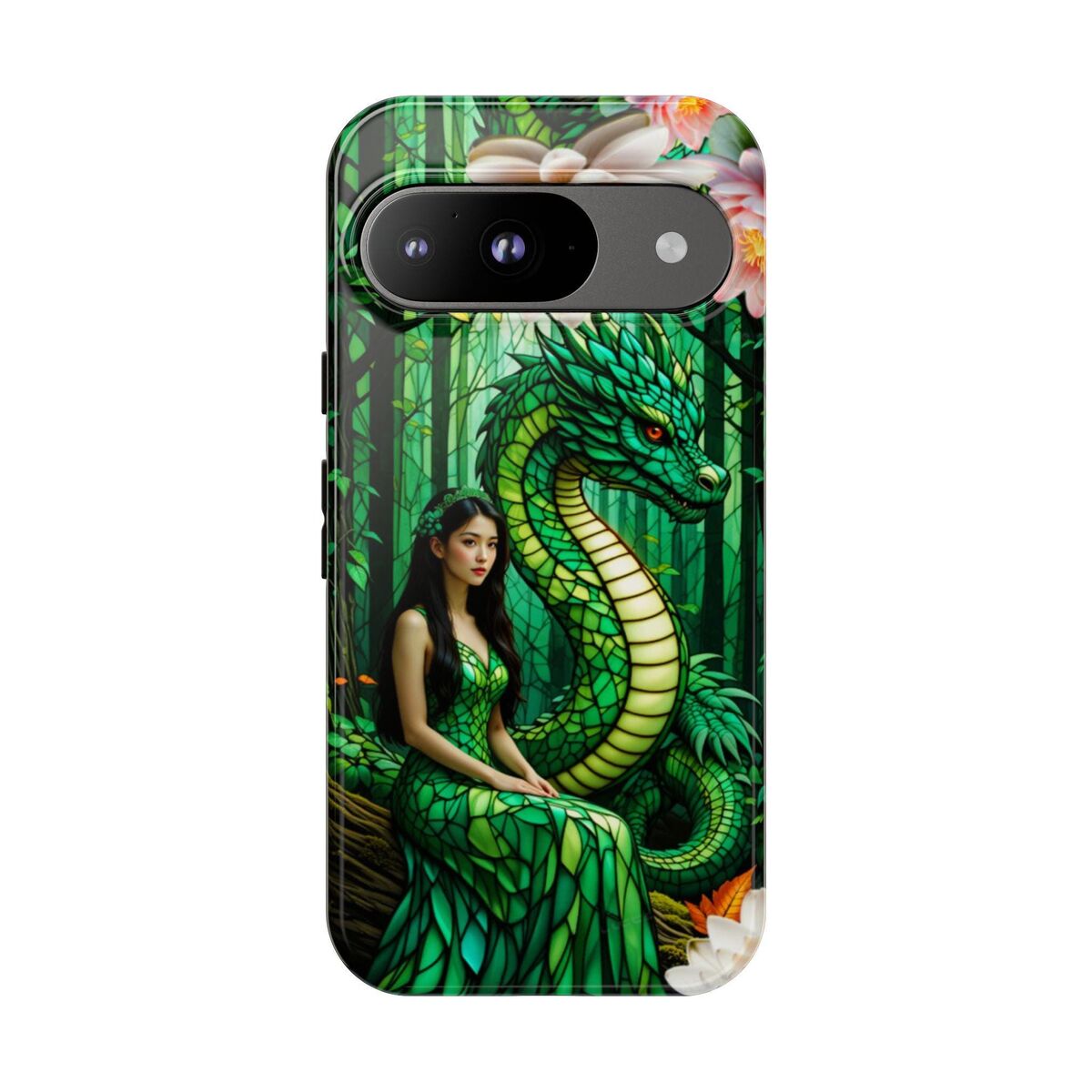 Dragon Forest Elf Phone Case Faux Stained Glass Fits iphone 16 15 14 13 Galaxy S25 S24 S23 Pixel And More