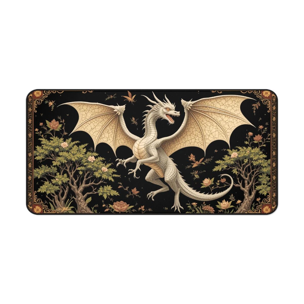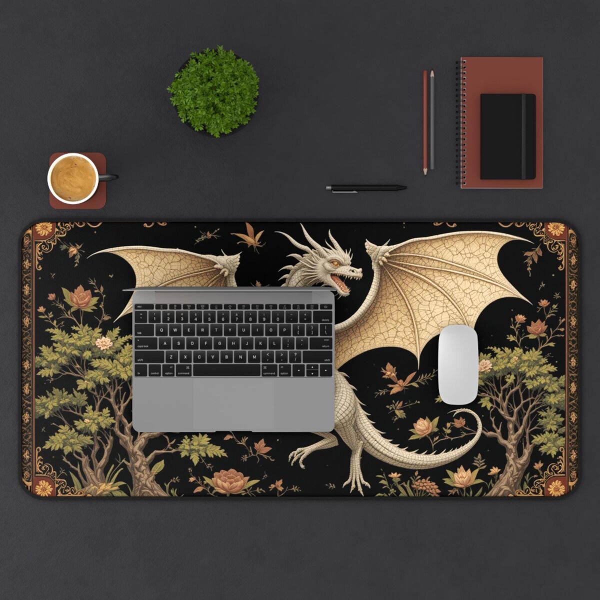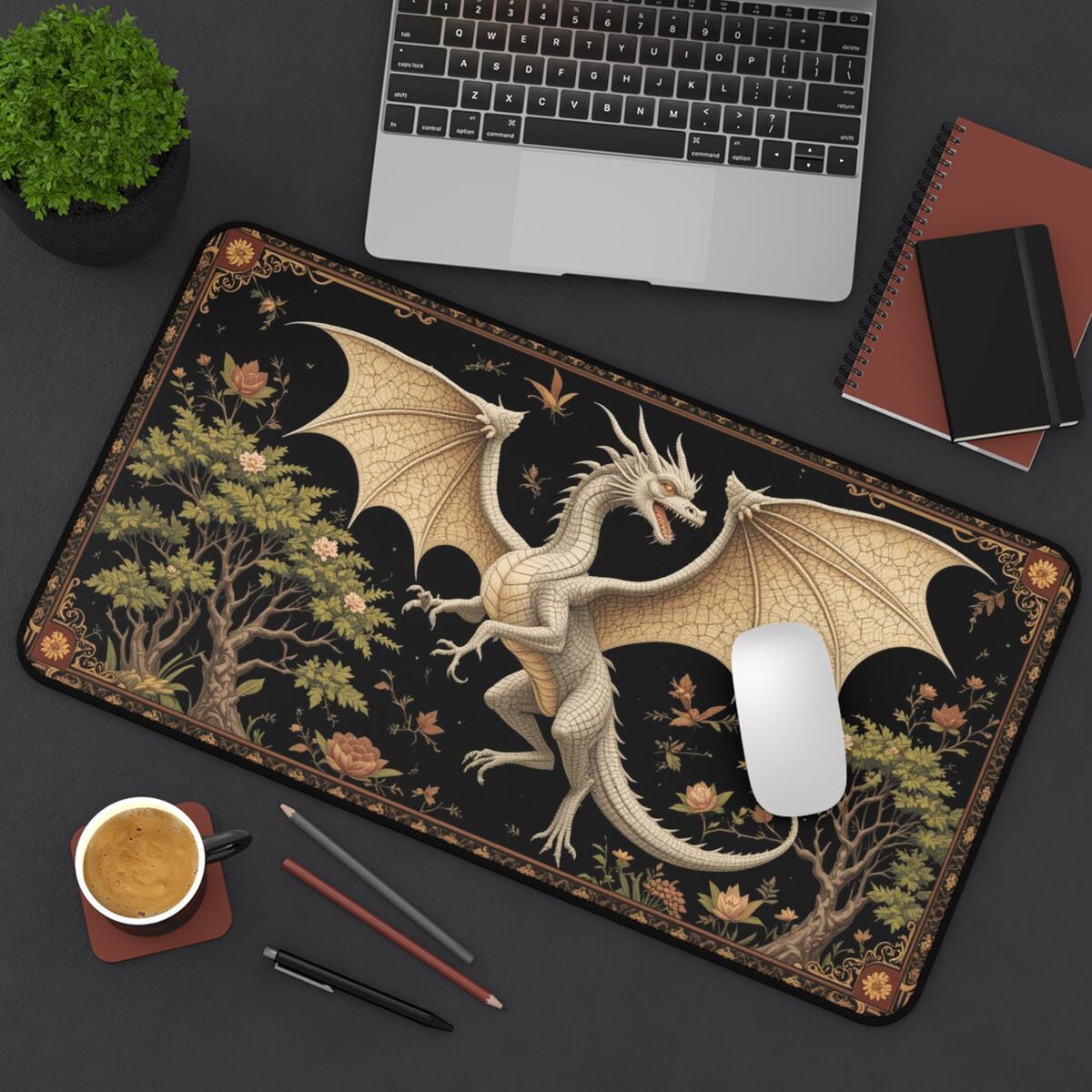 Dragon Medieval Desk Mat Mousepad Office Decor Large Gaming Mat Dark Fantasy Gothic Design Aesthetic Floral