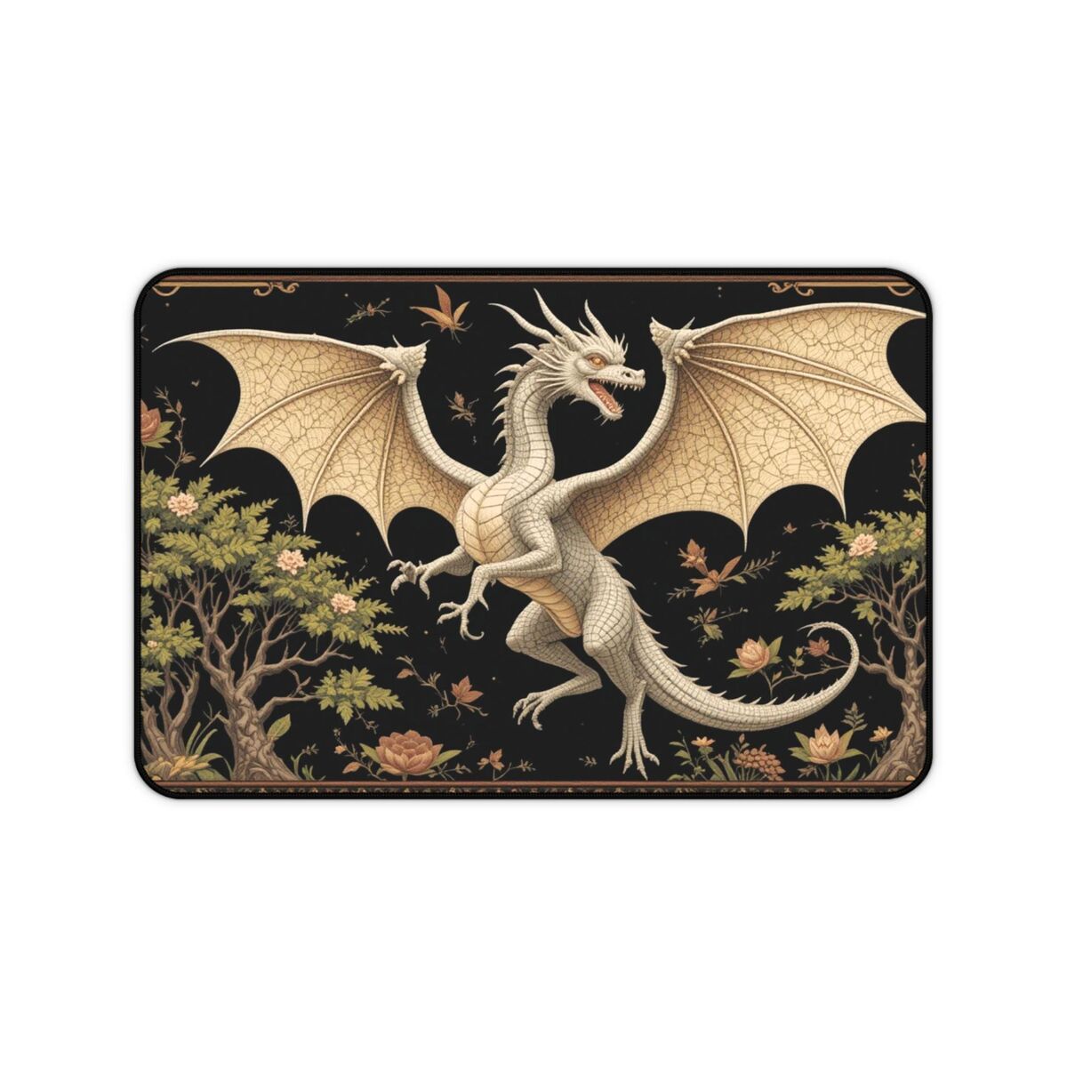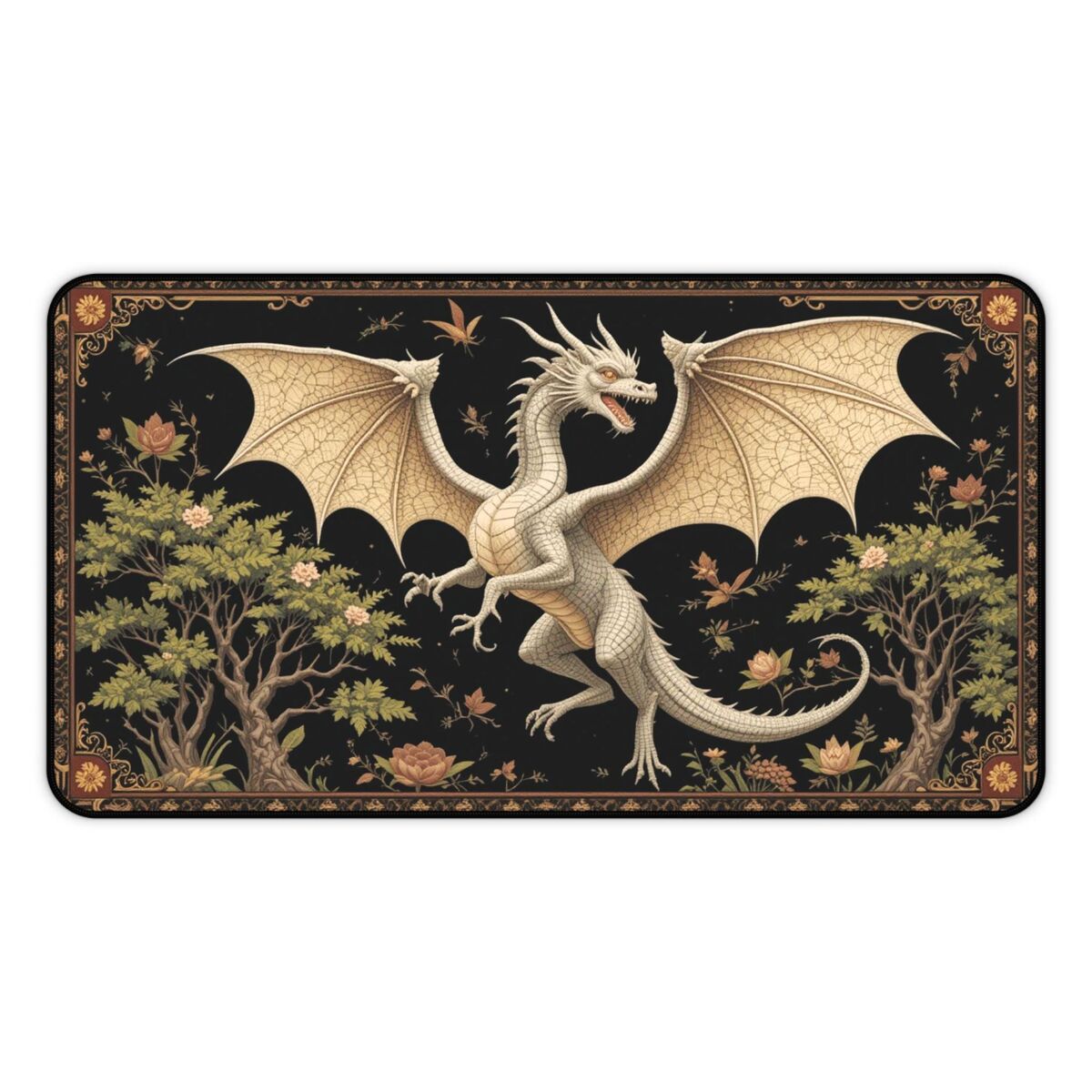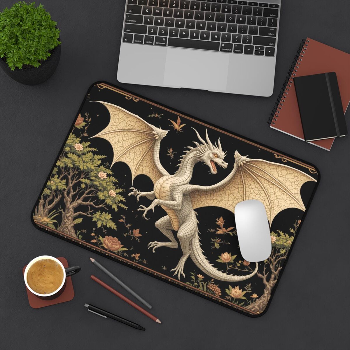 Dragon Medieval Desk Mat Mousepad Office Decor Large Gaming Mat Dark Fantasy Gothic Design Aesthetic Floral