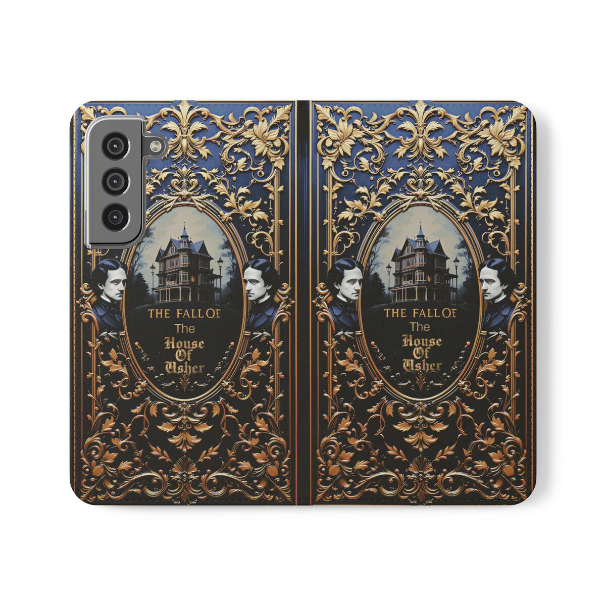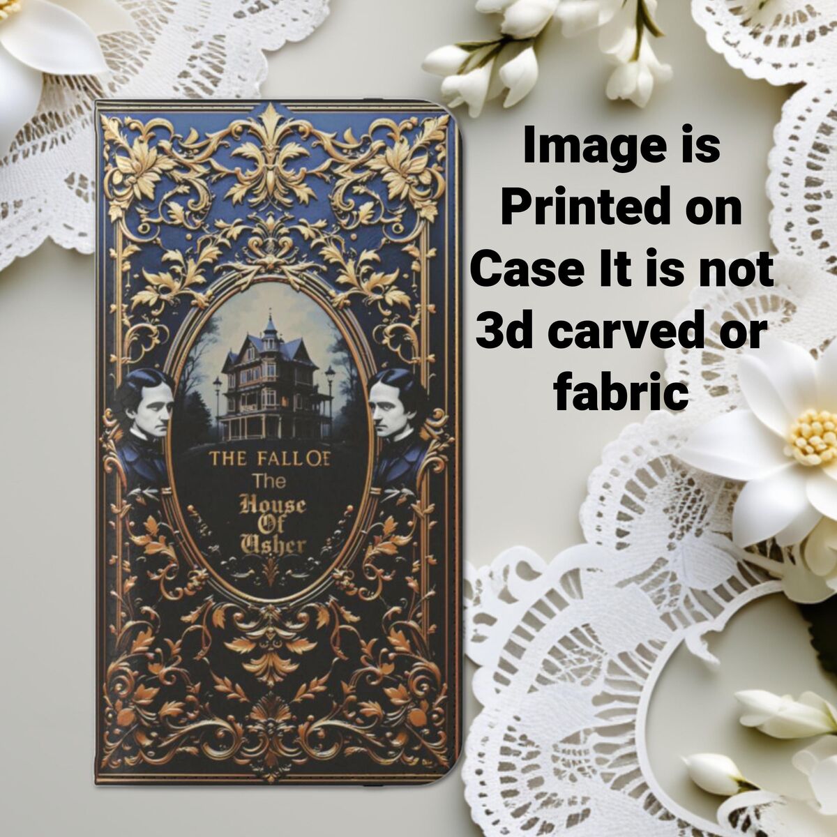 Edgar Allan Poe Book Phone Case Wallet House Of Usher Gothic Flip Case Card Case Fits iphone 16 15 14 Galaxy S25 S24 And More