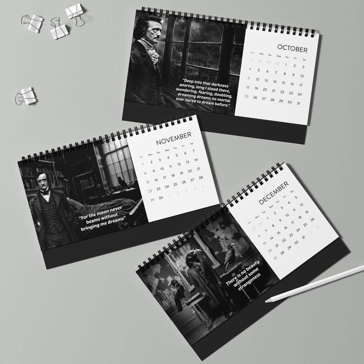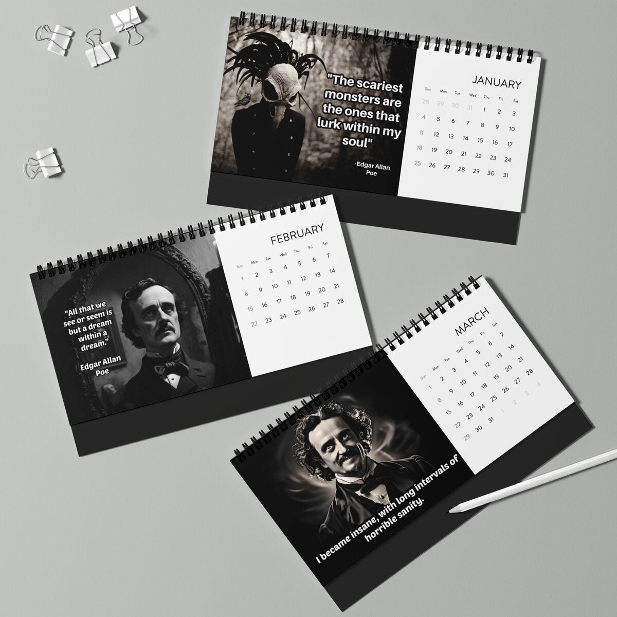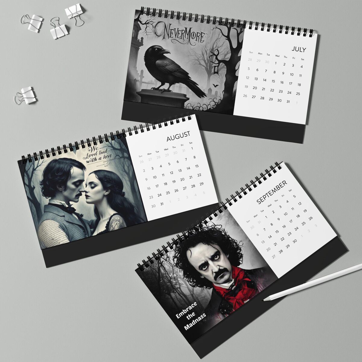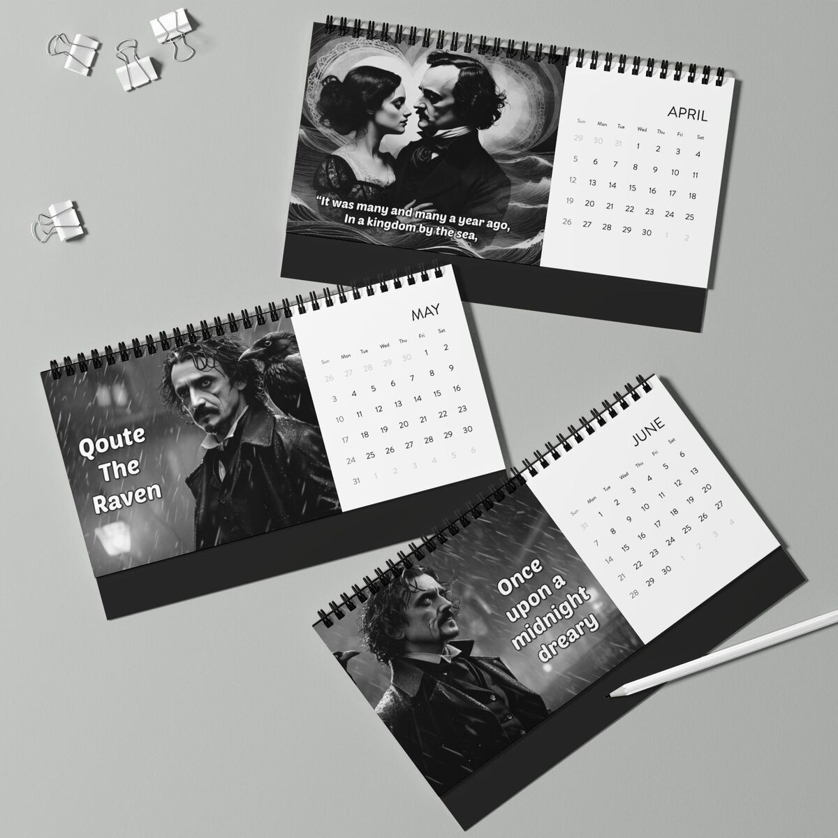 Edgar Allan Poe Desktop 2026 Calendar Spiral Gothic Dark Academia The Raven Annabel Lee Home Office Decor