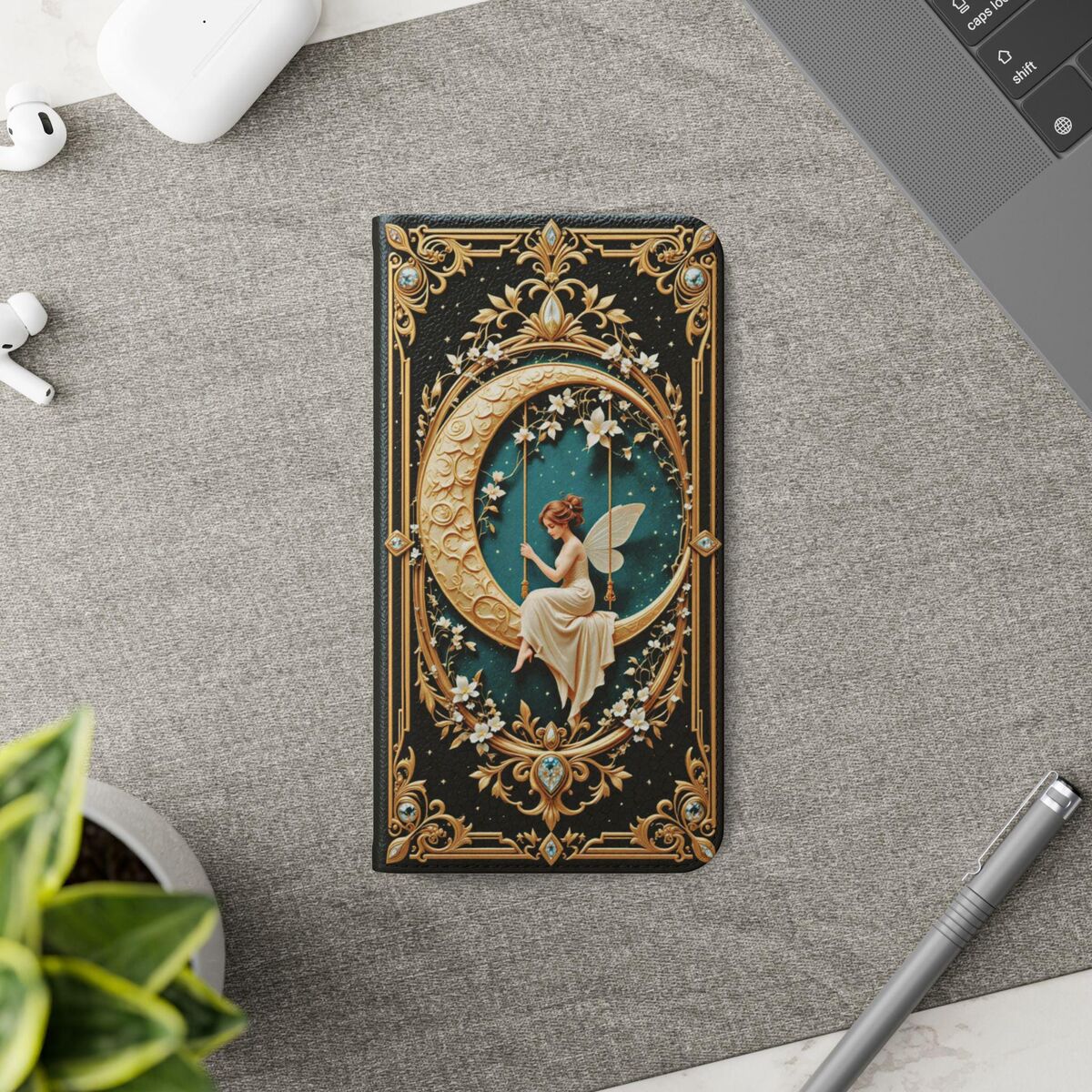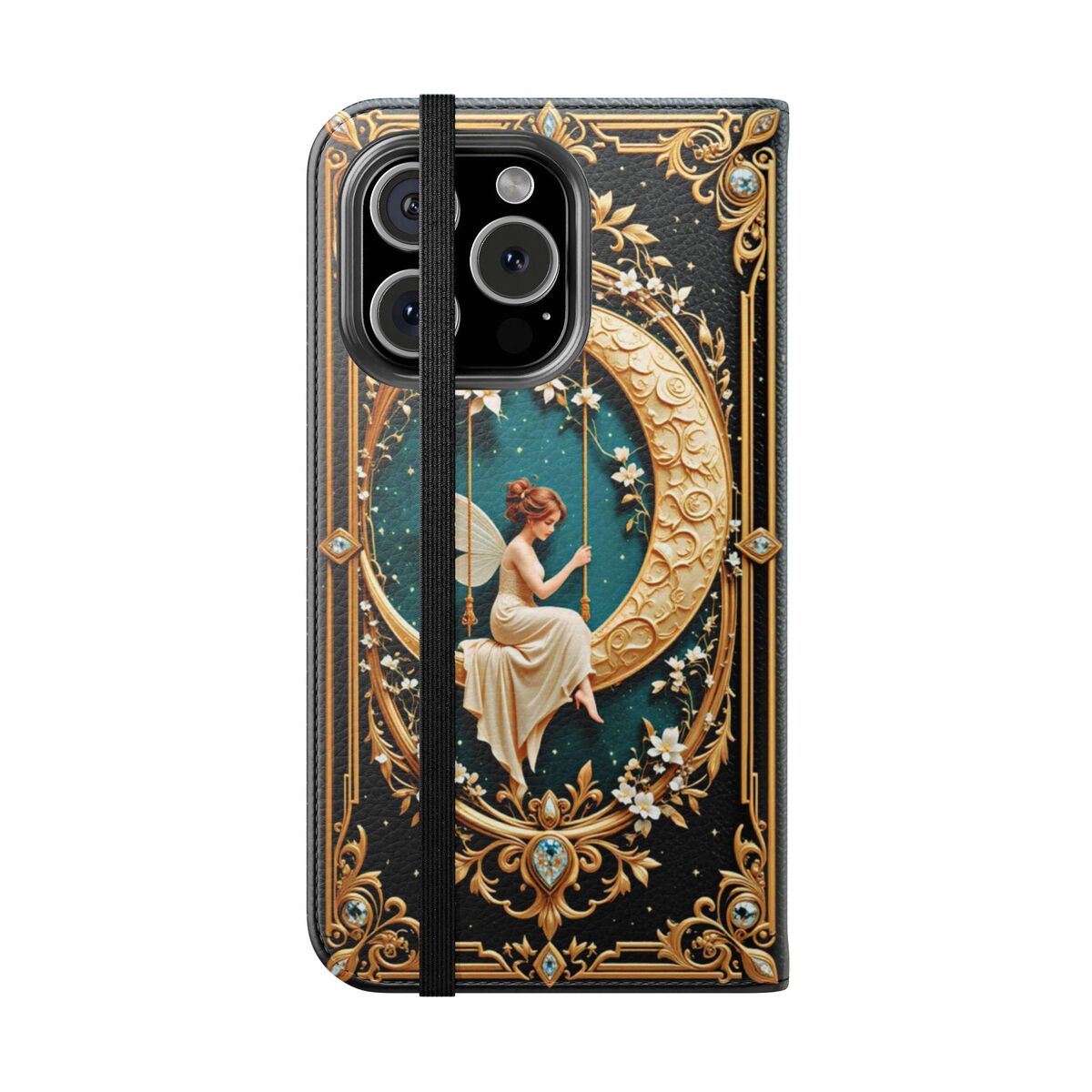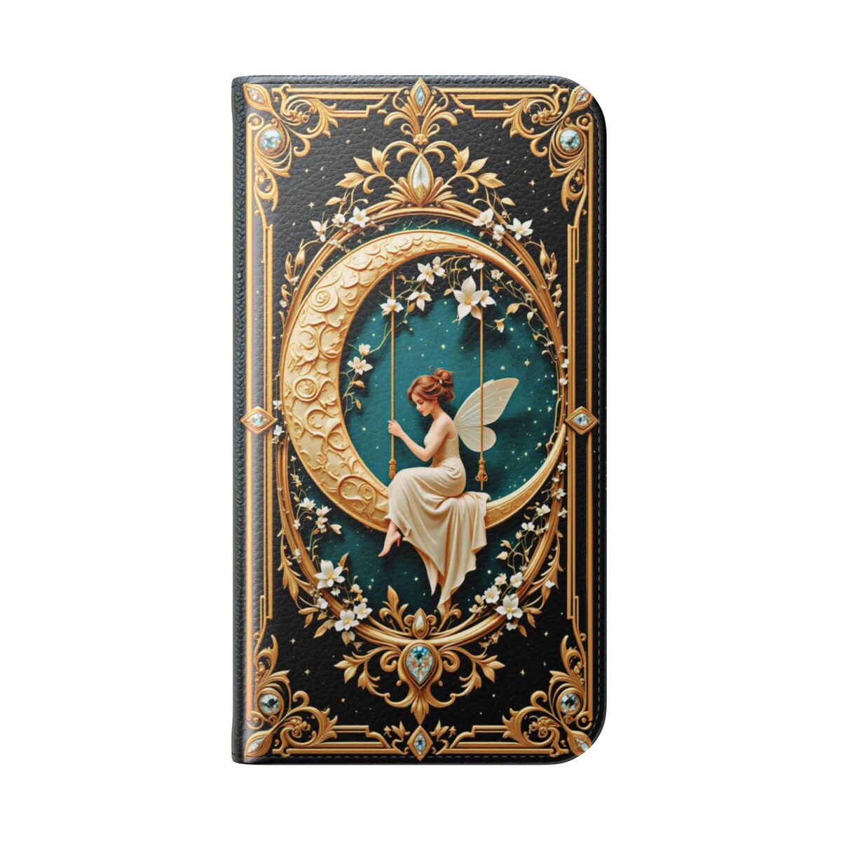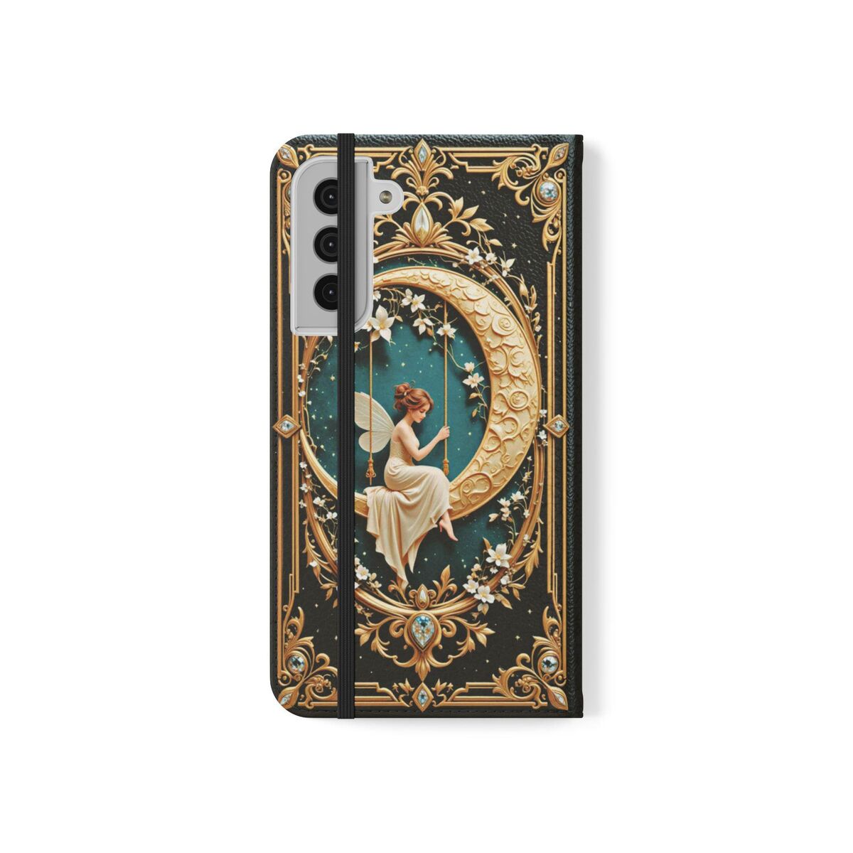 Fairy Crescent Moon Book Phone Case Wallet Custom Witchy Book Dark Academia Flip Case Card Case Fits iphone 16 15 14 Galaxy S22 And More