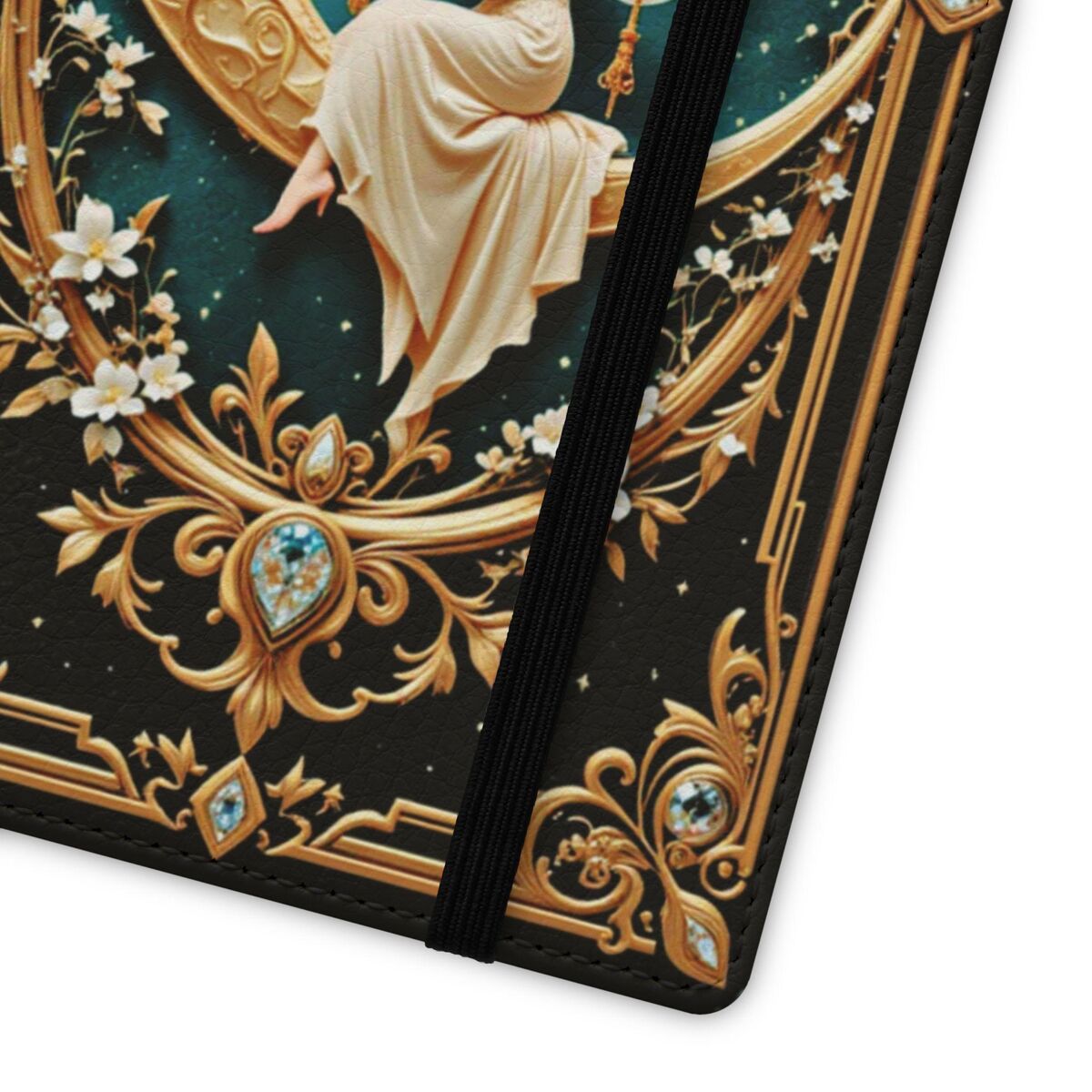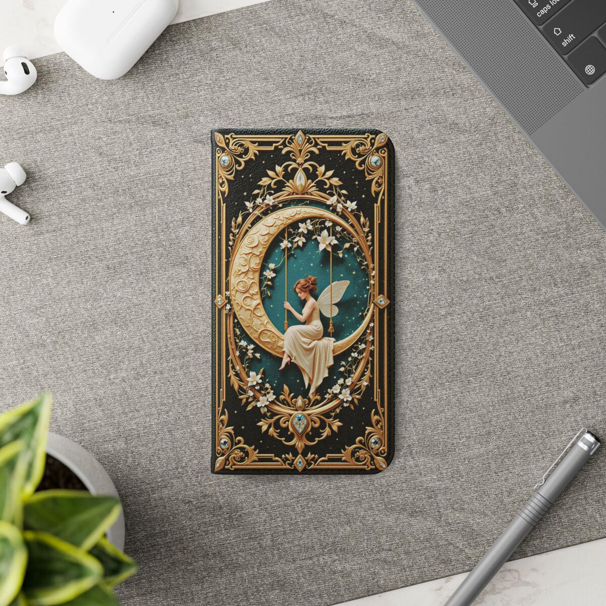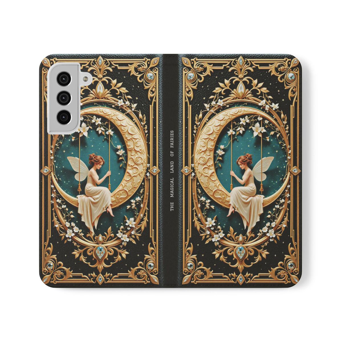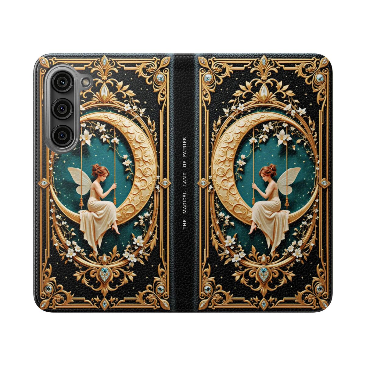 Fairy Crescent Moon Book Phone Case Wallet Custom Witchy Book Dark Academia Flip Case Card Case Fits iphone 16 15 14 Galaxy S22 And More