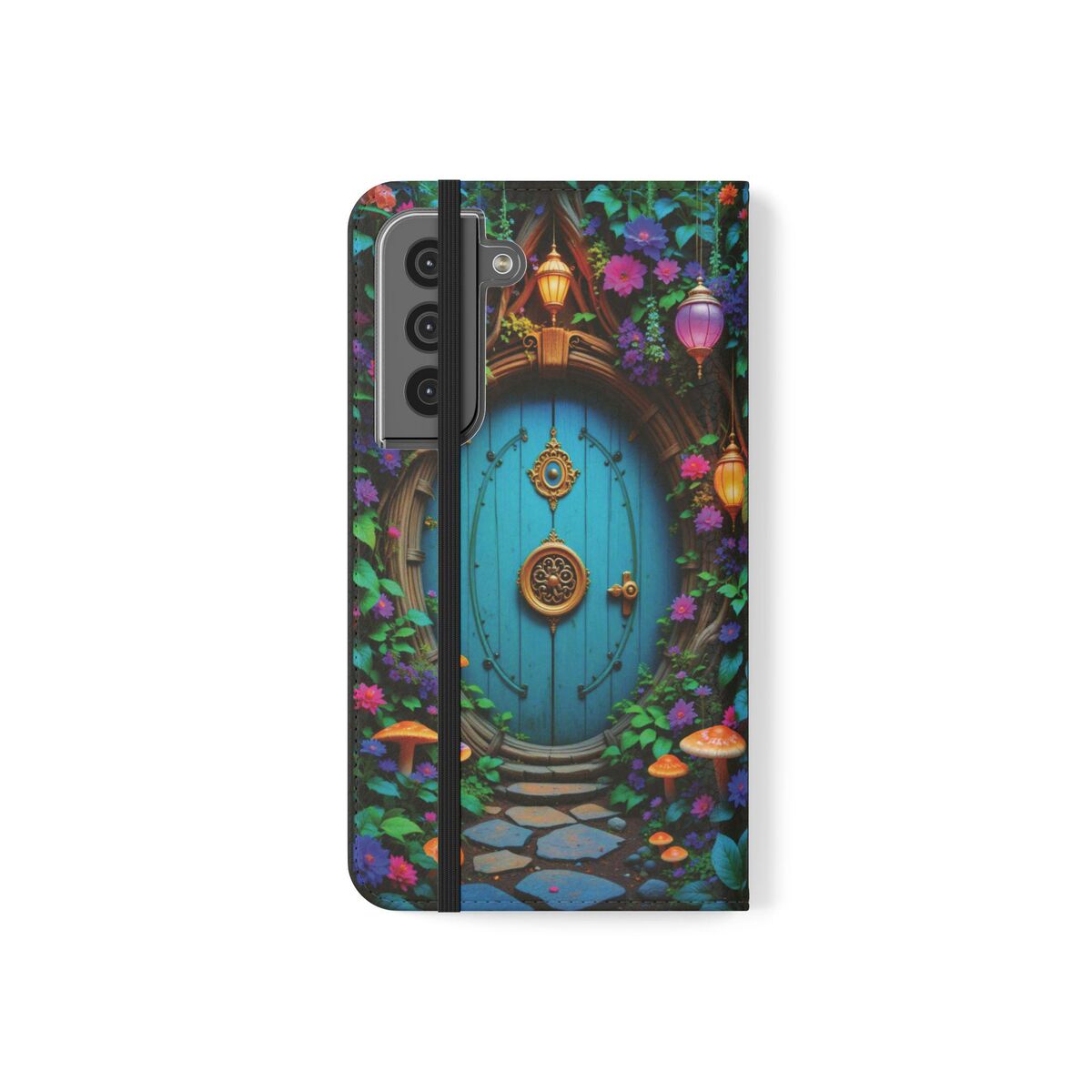 Fairy Door Book Phone Case Wallet Teal Flip Case Card Case Fits iphone 16 15 14 Galaxy S25 S24 And More