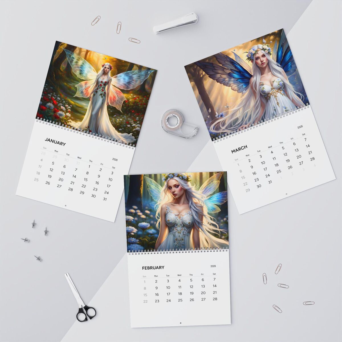Fairy Magic 2026 Wall Calendar Witchy Whimsical Fantasy Fairy Planner Home Office Decor Gift