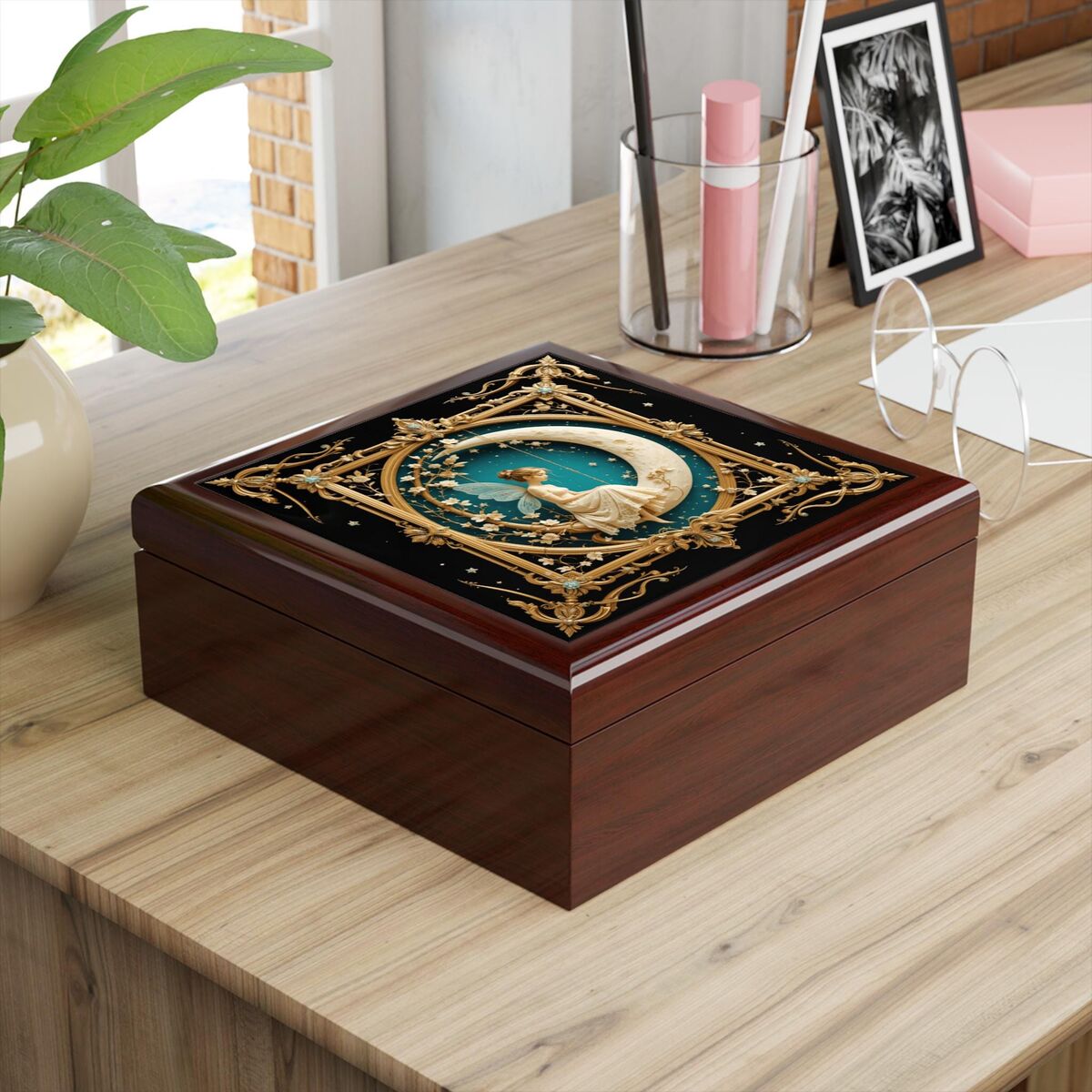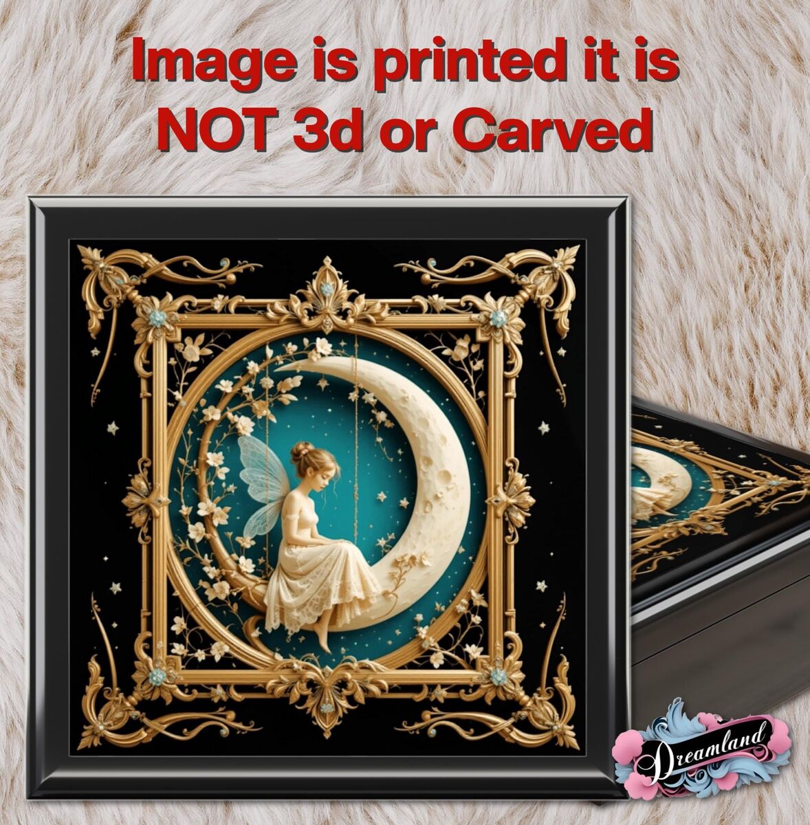 Fairy Moon Art Nouveau Wood Jewelry Box Magical Moon Printed Style Keepsake Witchy Gift Memory Box