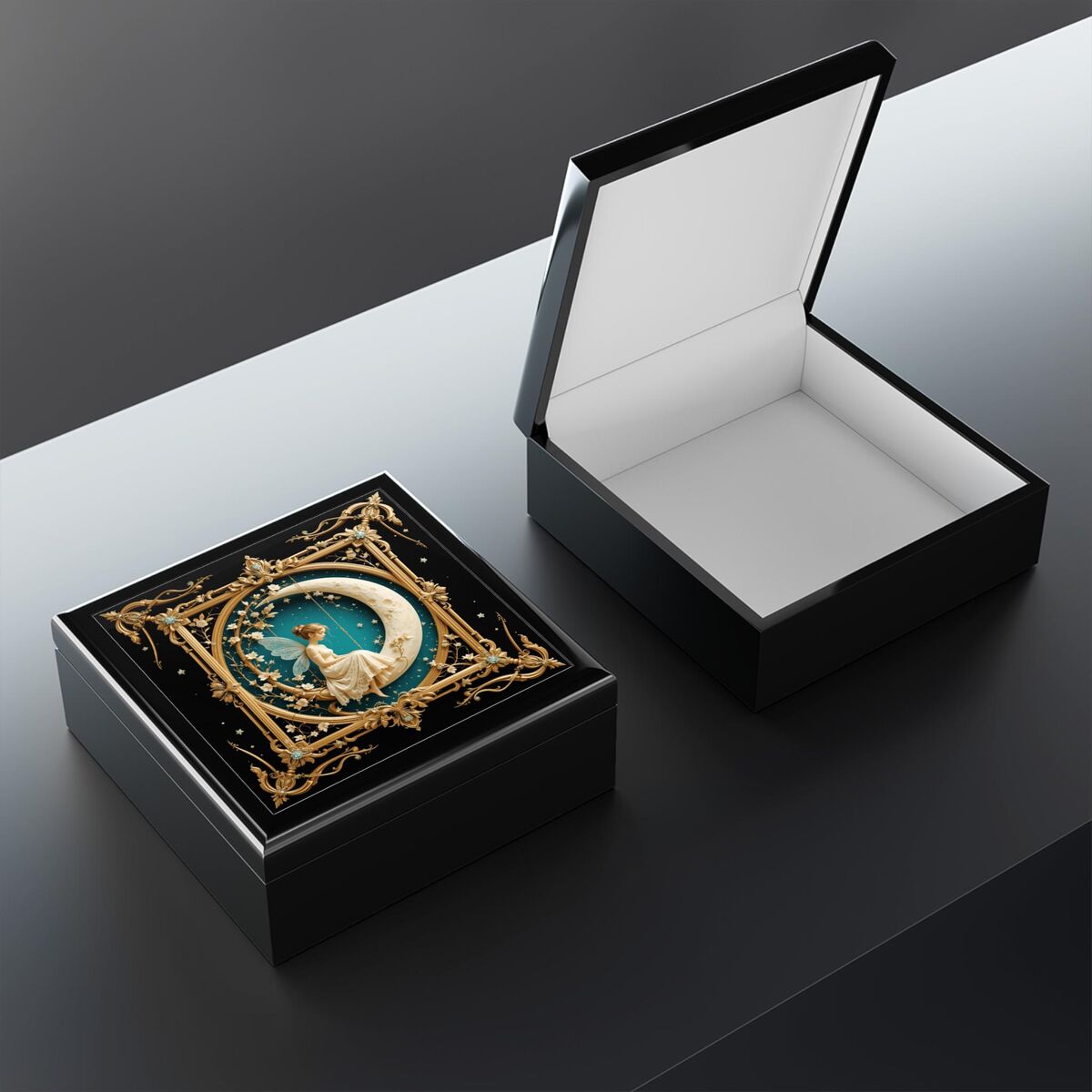 Discover the enchanting allure of the Fairy Moon Art Nouveau Wood Jewelry Box, a stunning keepsake that beautifully marries Art Deco elegance with whimsical charm. Crafted from high-quality wood, this intricately designed box features a captivating printed style that showcases delicate fairy motifs, making it a perfect addition to any decor. Ideal for storing your cherished jewelry or treasured memories, this box is not just functional but also a striking piece of art.