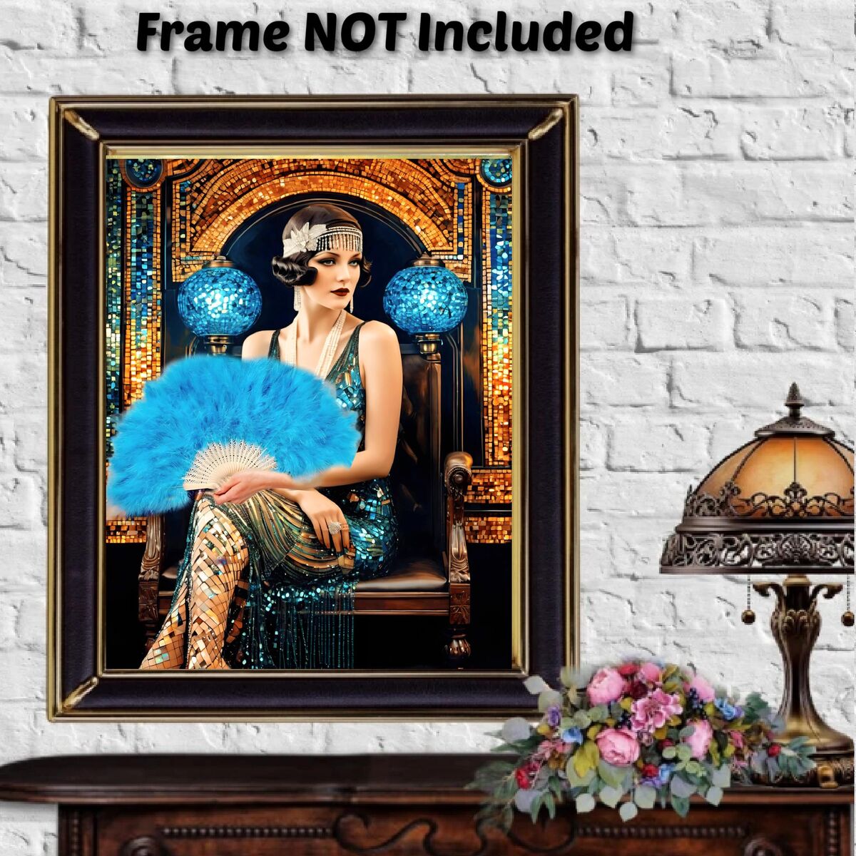Fan Dancer Art Deco Mosaic Print Flapper Wall Art Painting Print Gatsby Old Hollywood Girl Glamour Gatsby Retro Poster 1920s Wall Art
