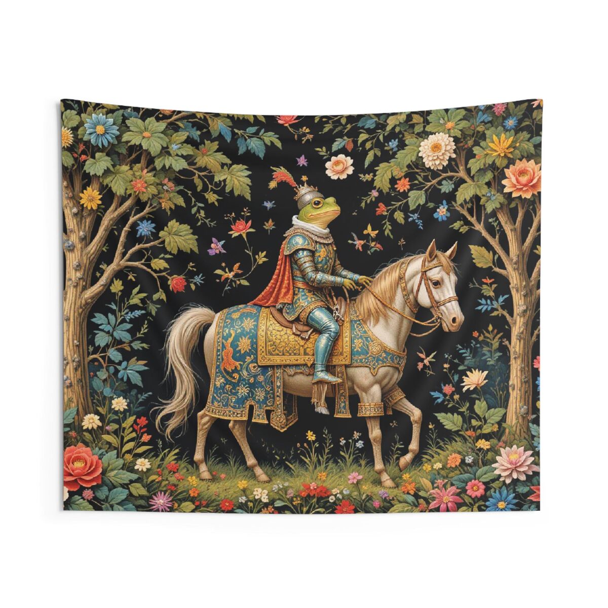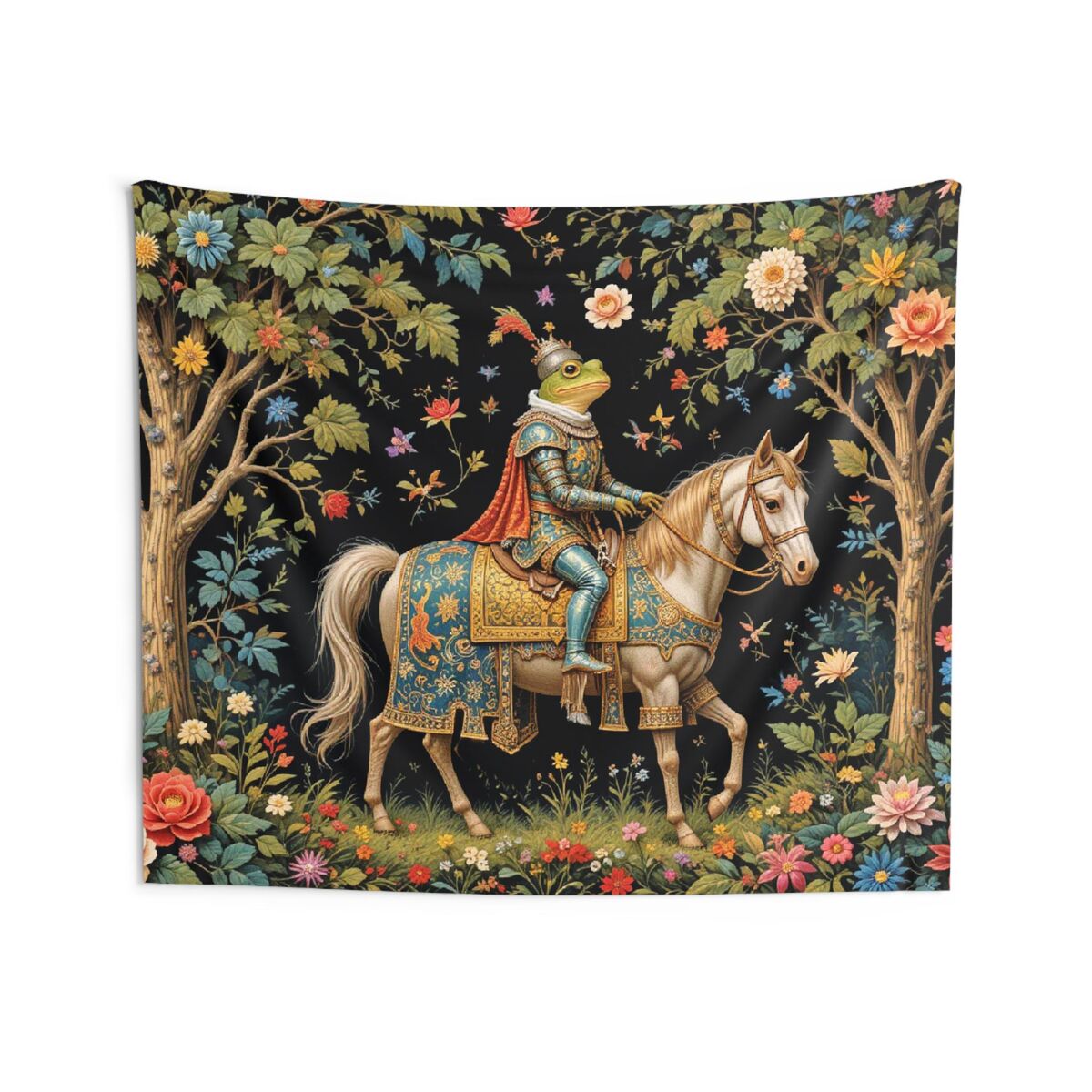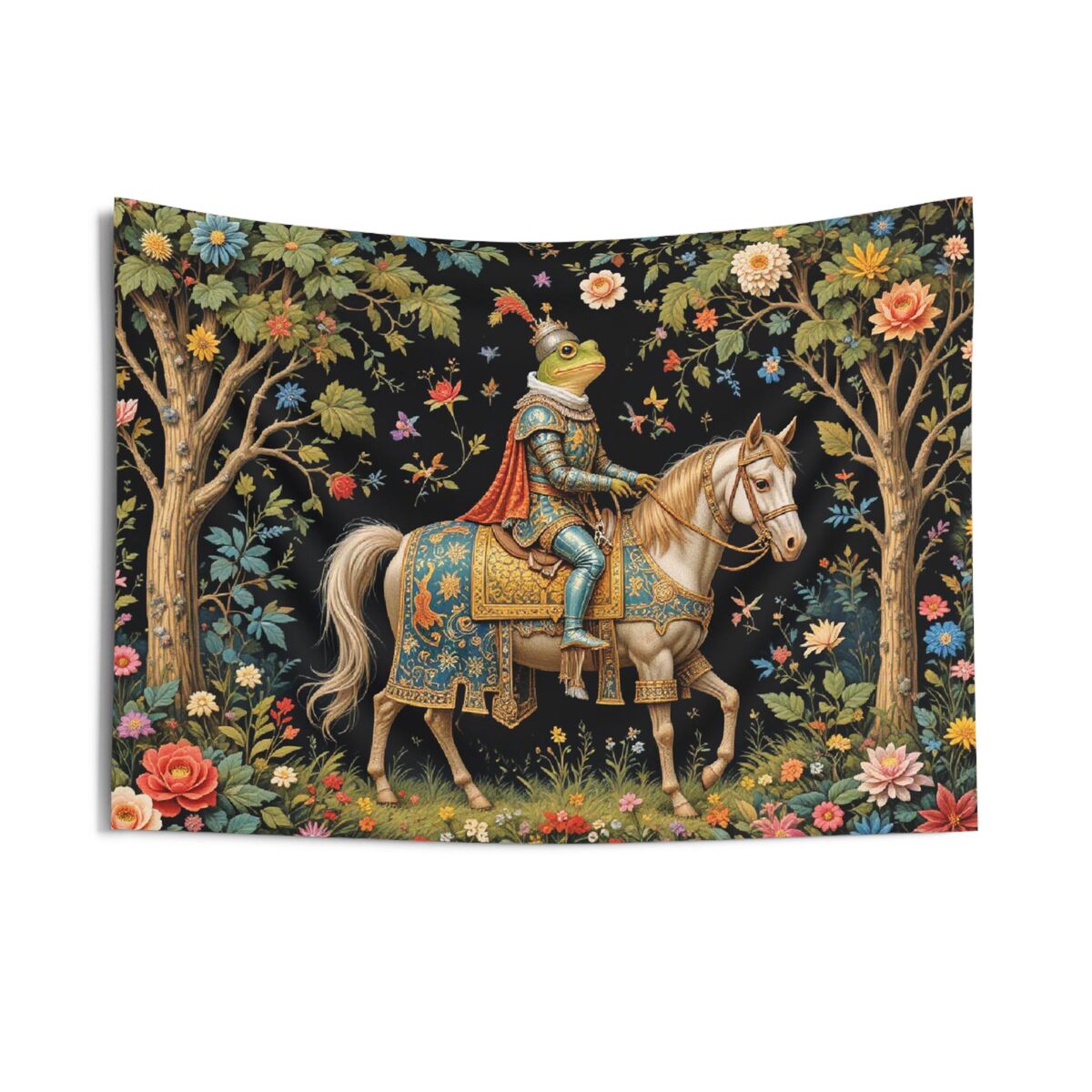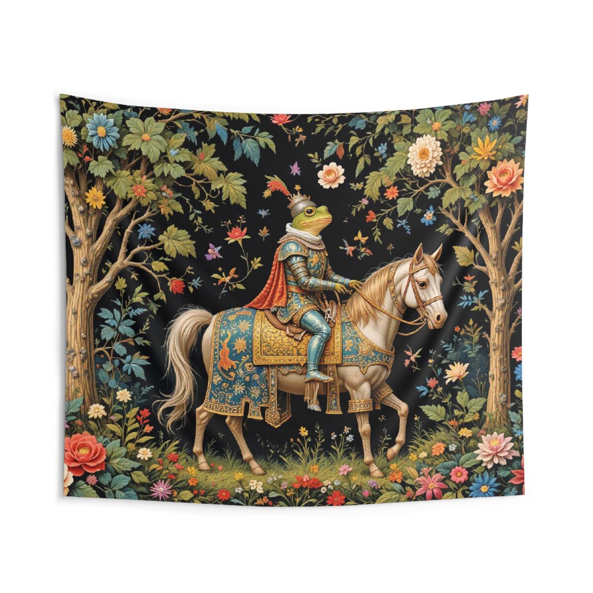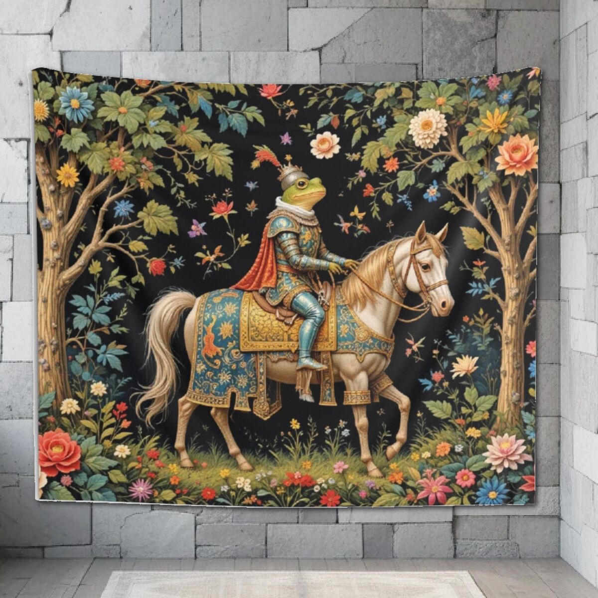 Frog Prince Medieval Tapestry Lightweight Indoor Wall Hanging Mystical Forest Faux Embroidered Dark Academia Boho Home Decor