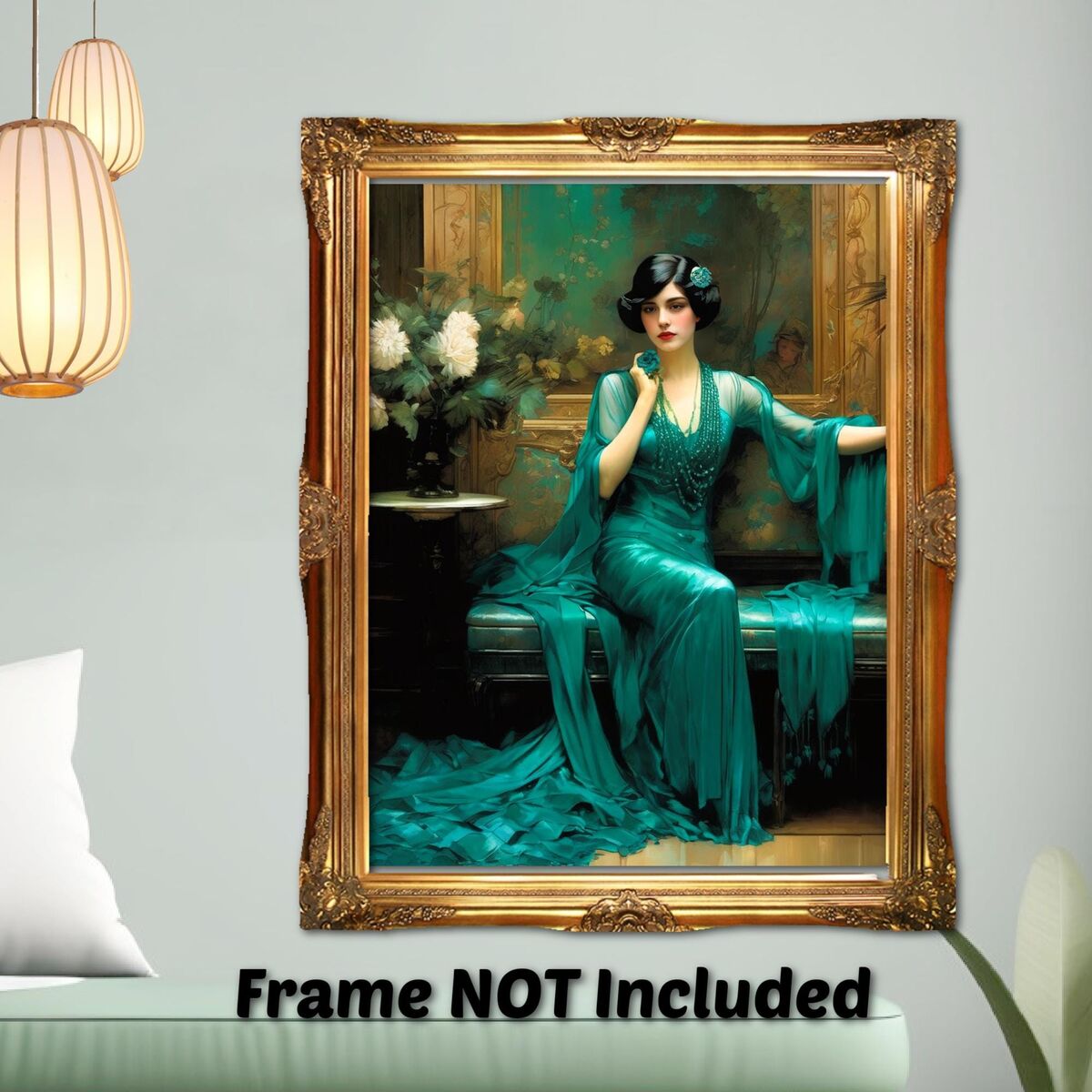 Art Deco Canvas Wall Art Print Gatsby GIrl Girl Portrait 1920s Gatsby Style Speakeasy Home Decor Poster Matte Framed Canvas