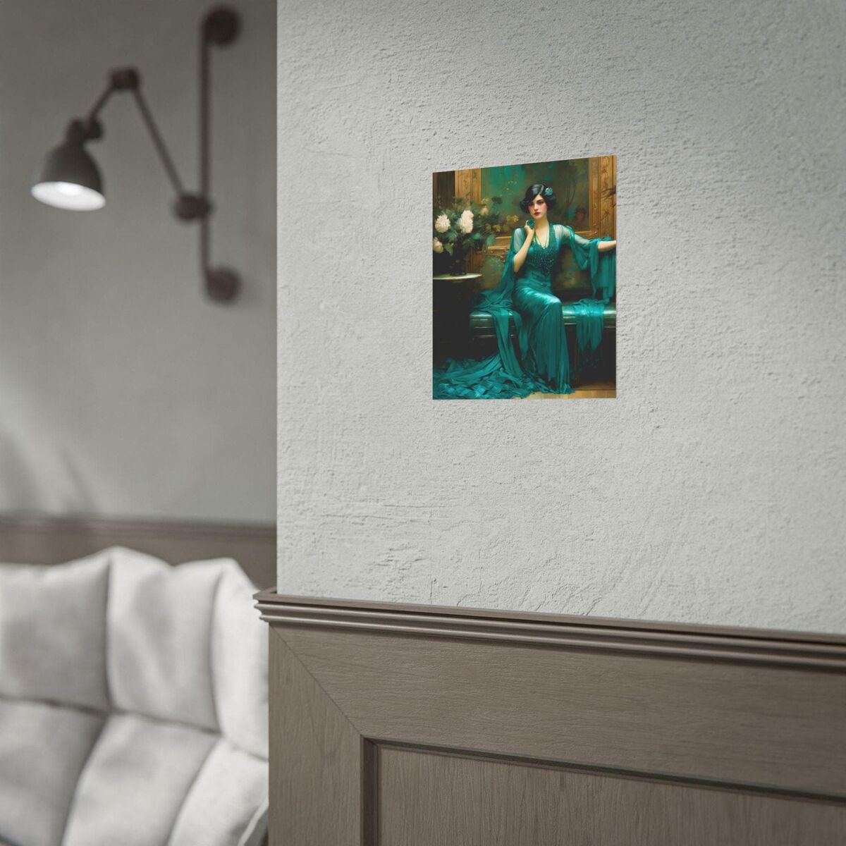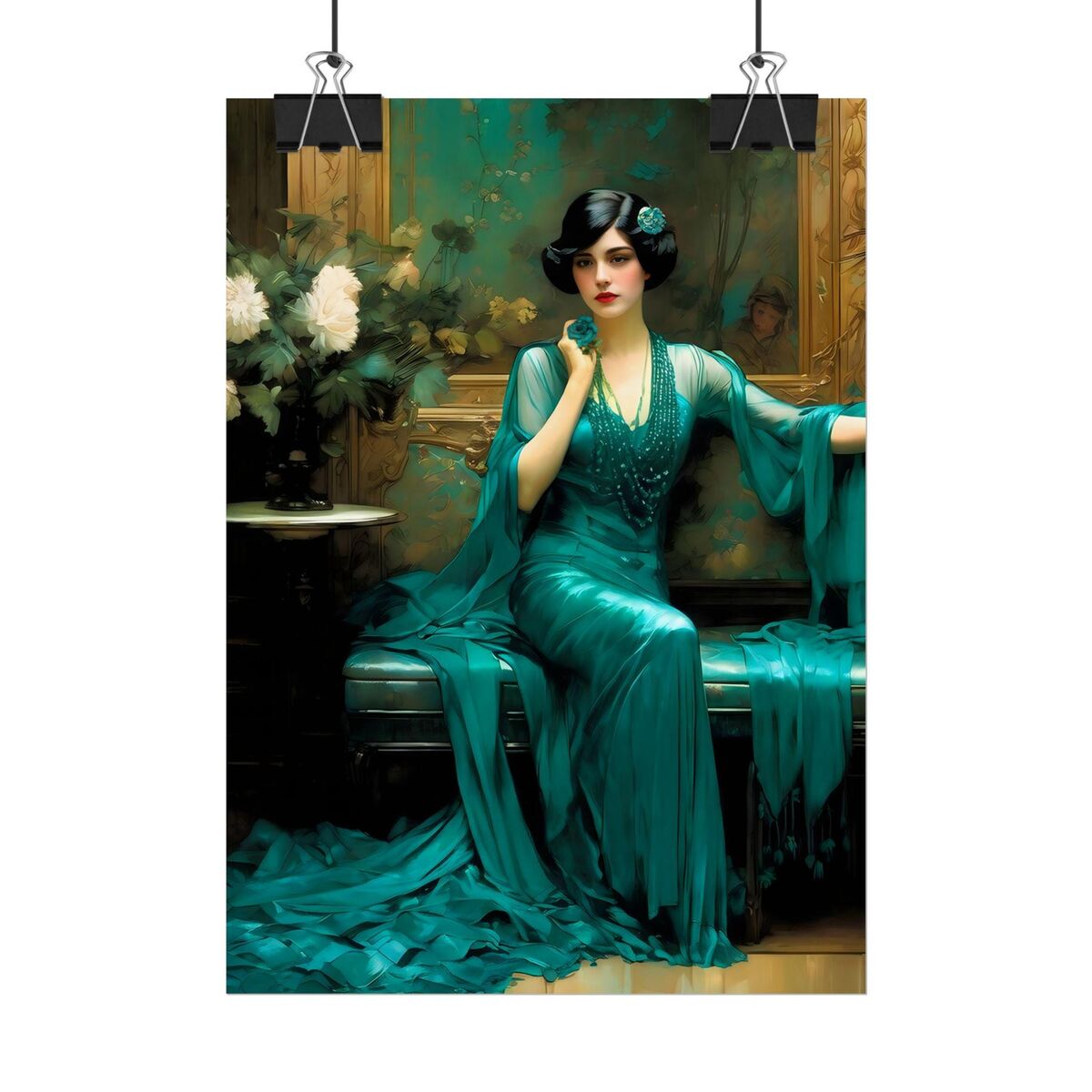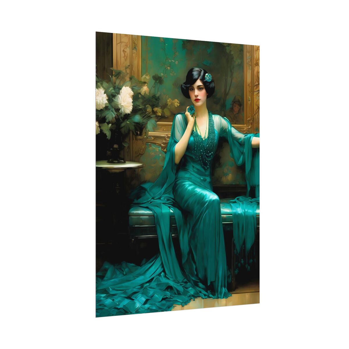 Black Teal Art Deco Gatsby Girl 1920 Style Powder Room Bathroom Poster Print Wall Art Retro Home Decor