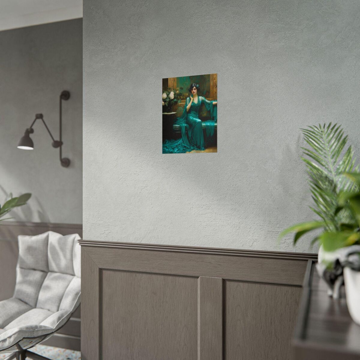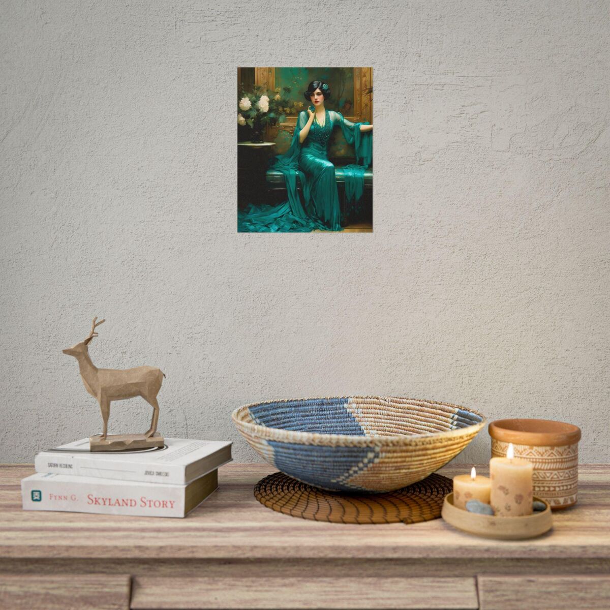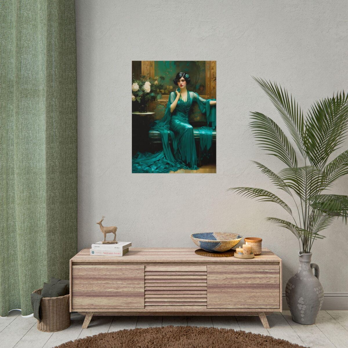 Black Teal Art Deco Gatsby Girl 1920 Style Powder Room Bathroom Poster Print Wall Art Retro Home Decor
