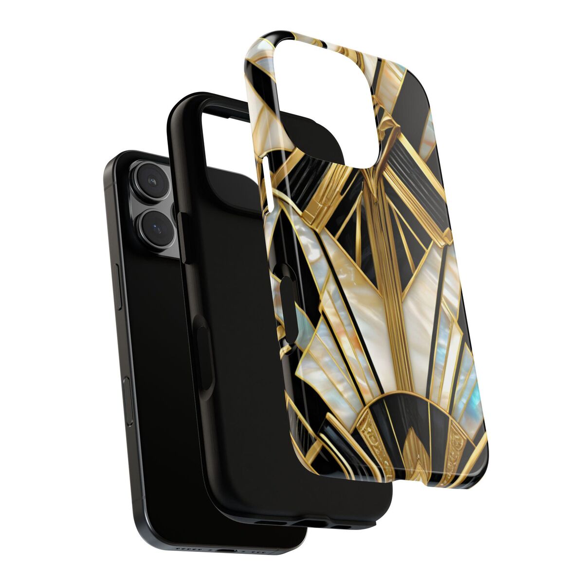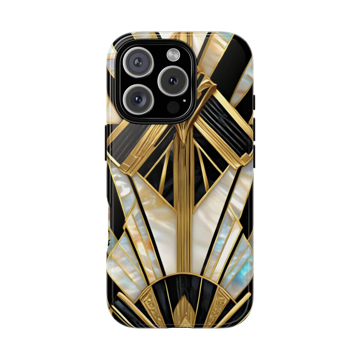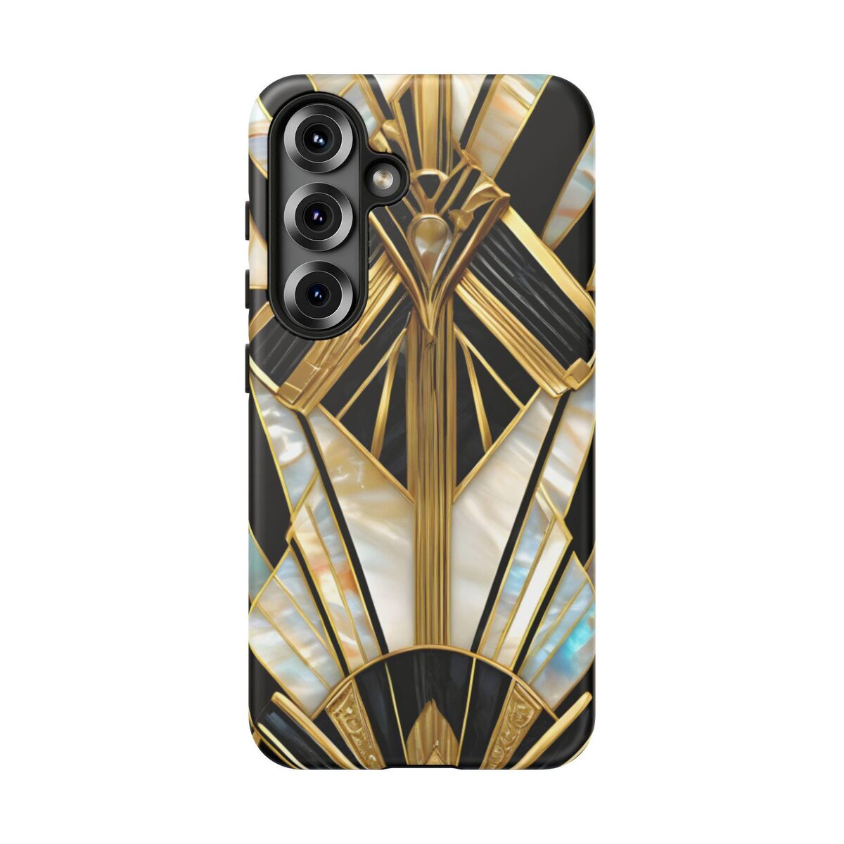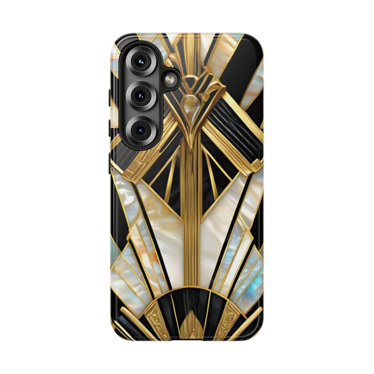 Gatsby Art Deco Tough Phone Case Black Gold Faux Stained Glass Flower Phone Case iPhone 16 15 14 13 12 11 Galaxy S24 S23 S22 And More