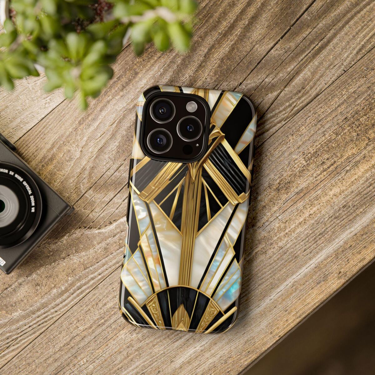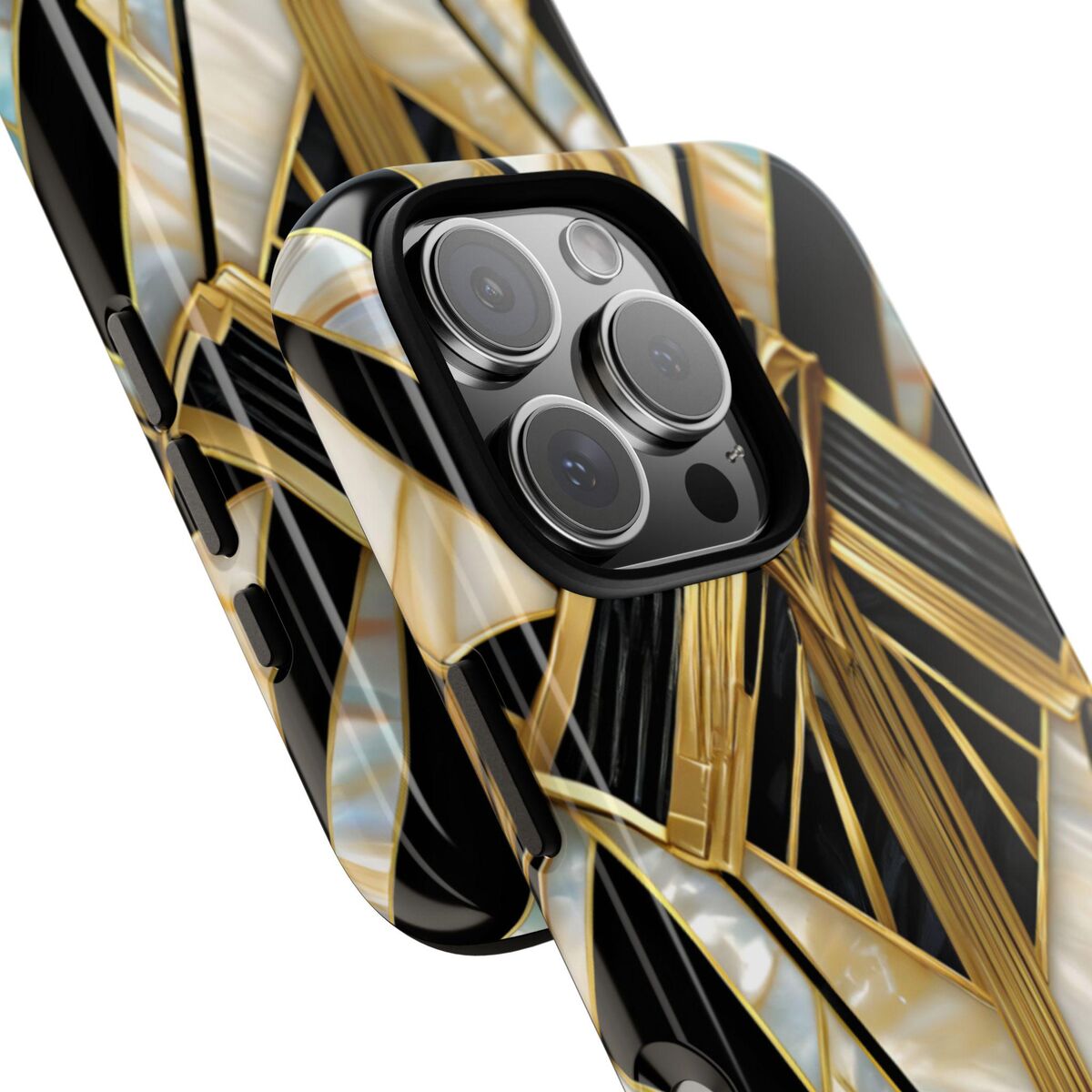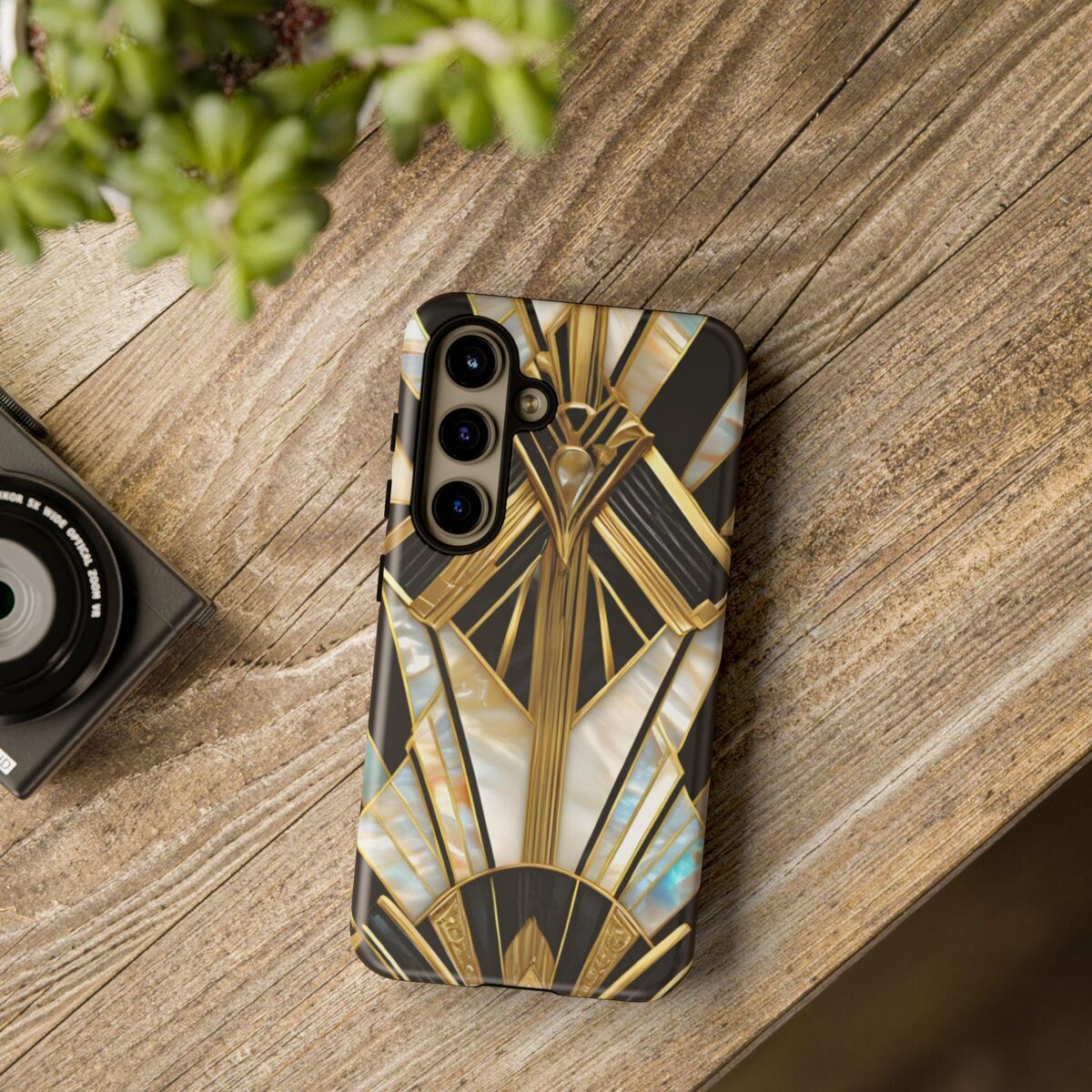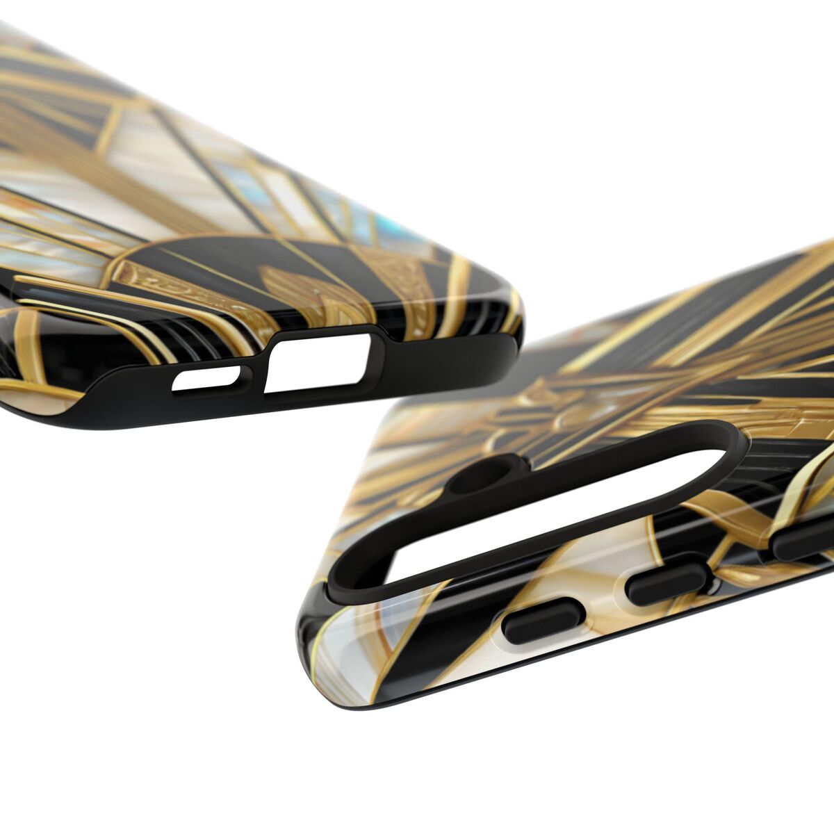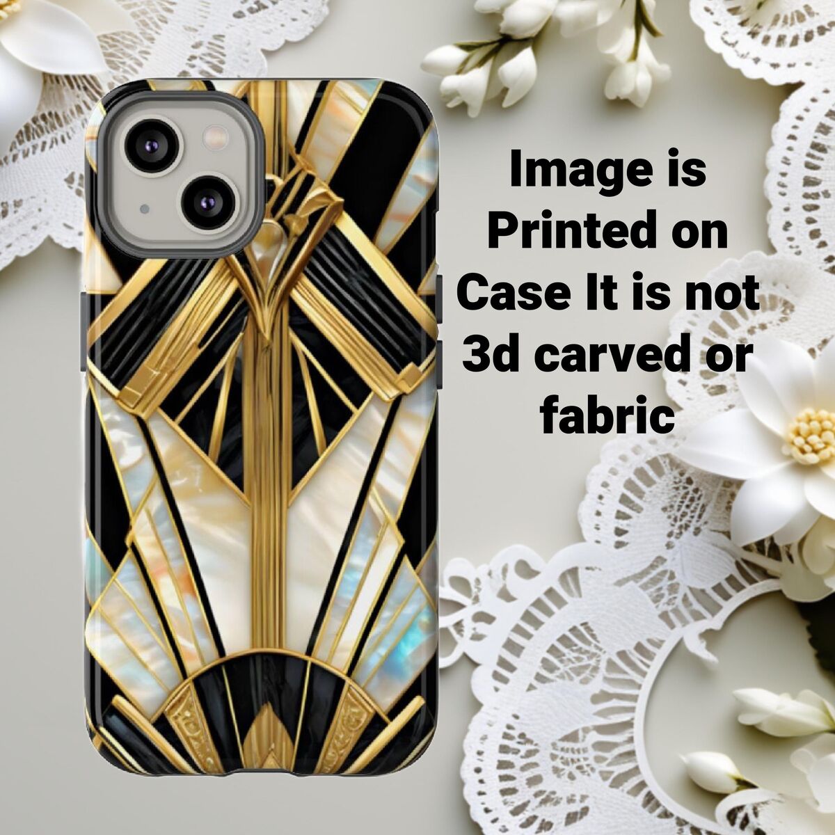 Gatsby Art Deco Tough Phone Case Black Gold Faux Stained Glass Flower Phone Case iPhone 16 15 14 13 12 11 Galaxy S24 S23 S22 And More