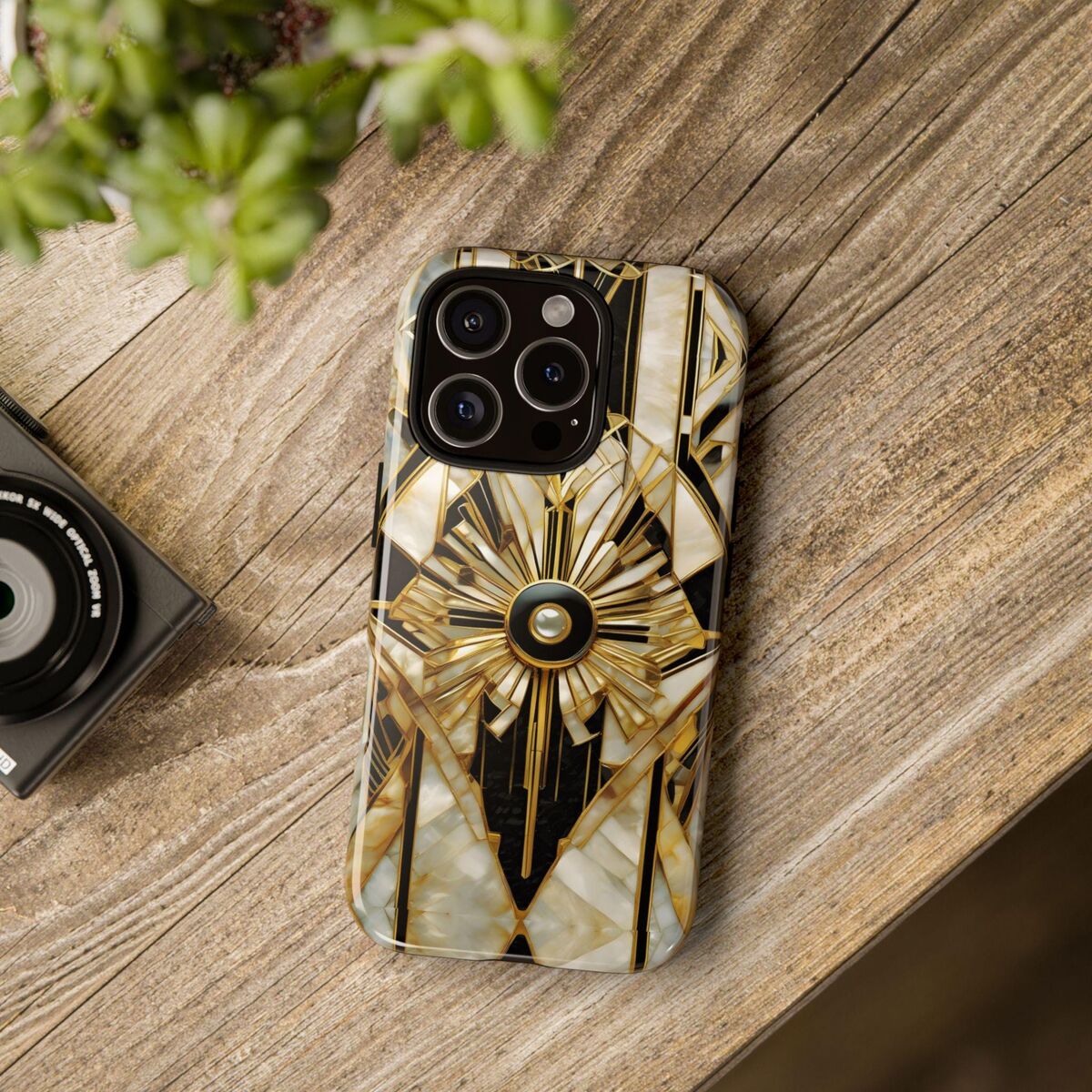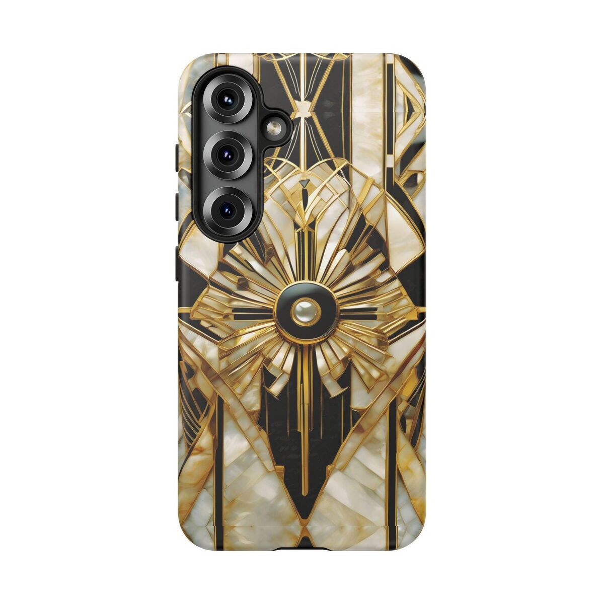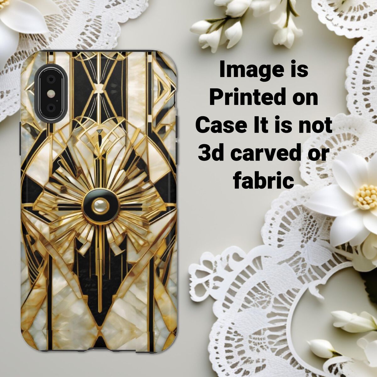 Gatsby Art Deco Tough Phone Case Gold Black Faux Stained Glass Phone Case iPhone 16 15 14 13 12 11 Galaxy S24 S23 S22 And More