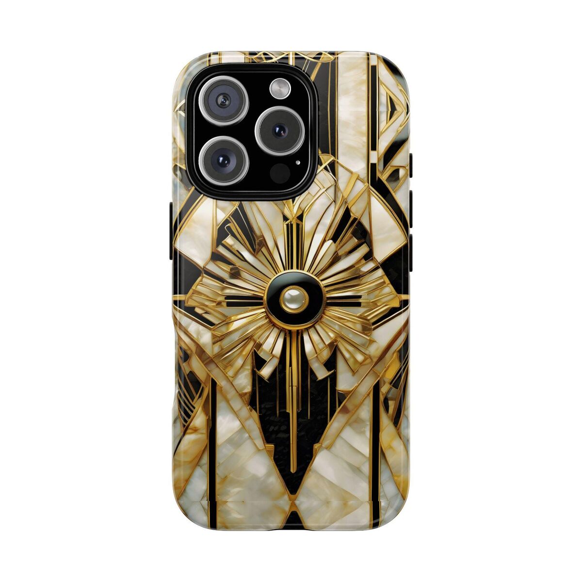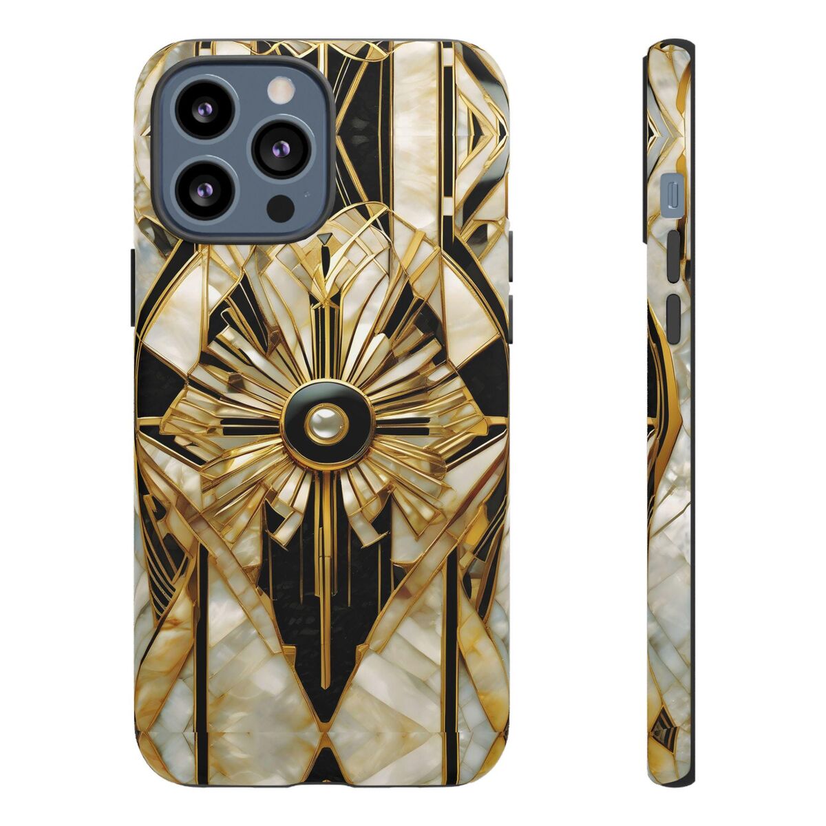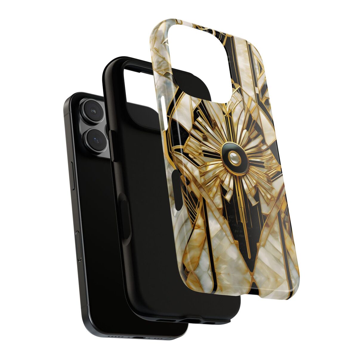 Gatsby Art Deco Tough Phone Case Gold Black Faux Stained Glass Phone Case iPhone 16 15 14 13 12 11 Galaxy S24 S23 S22 And More