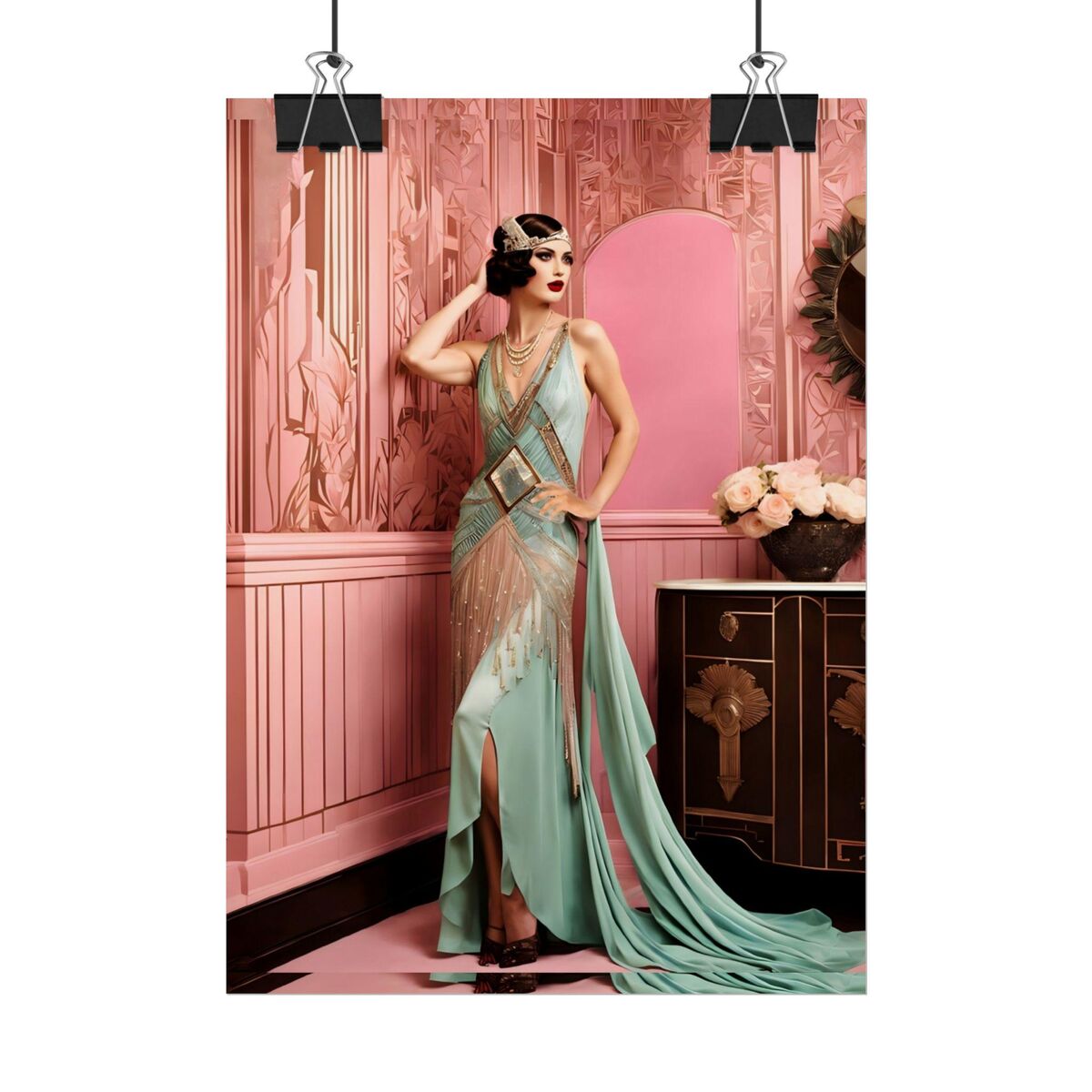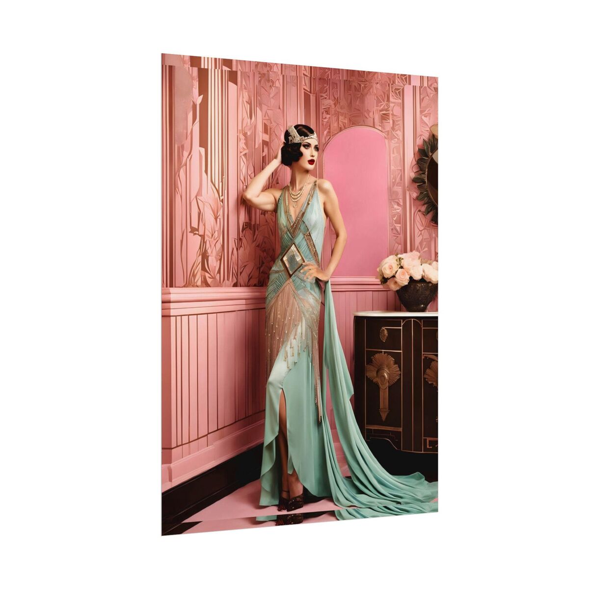 Gatsby Girl Wall Art Print Zeigfeld Girl Art Deco Poster Flapper Pink Poster Portrait 1920s Style Woman Wall Art Home Decor