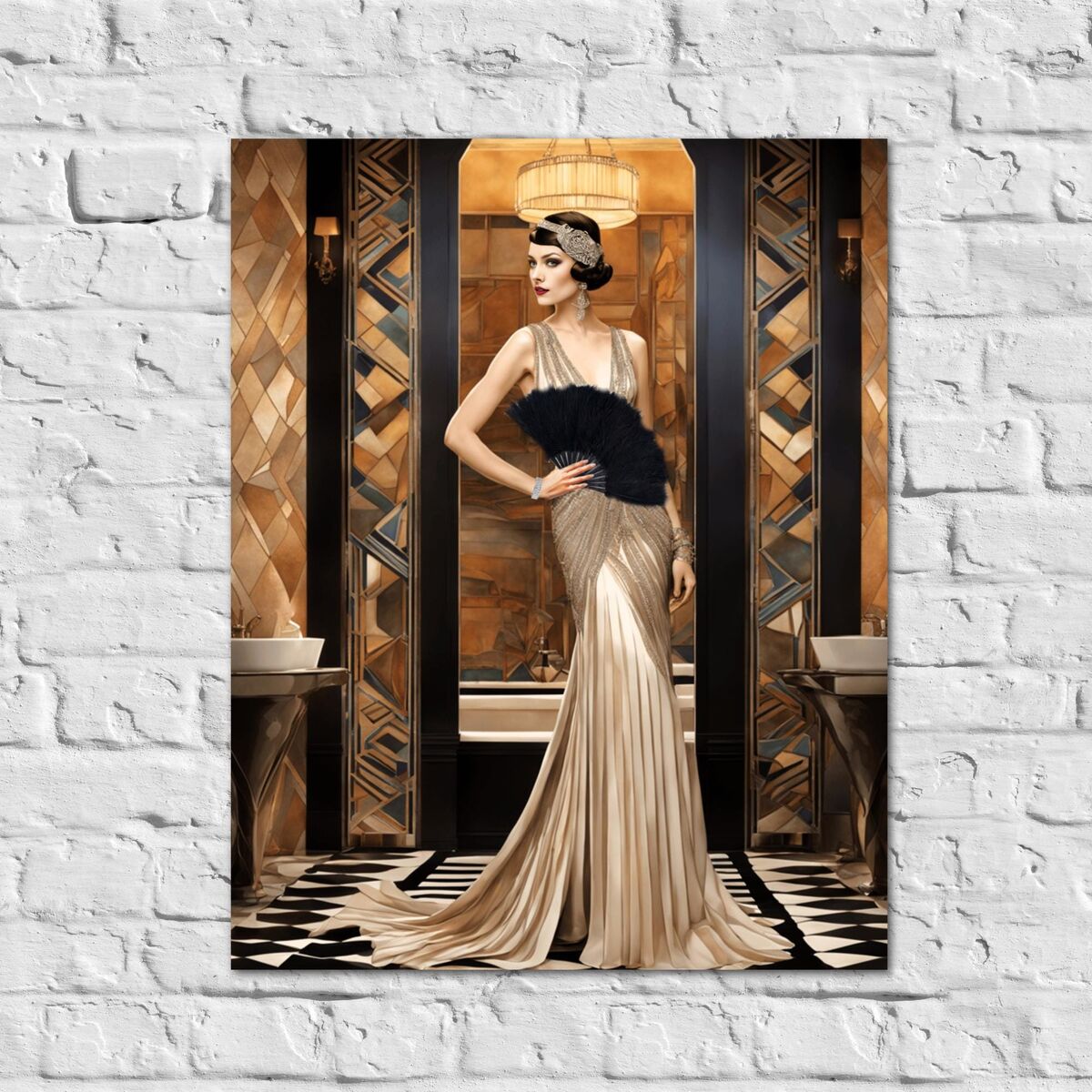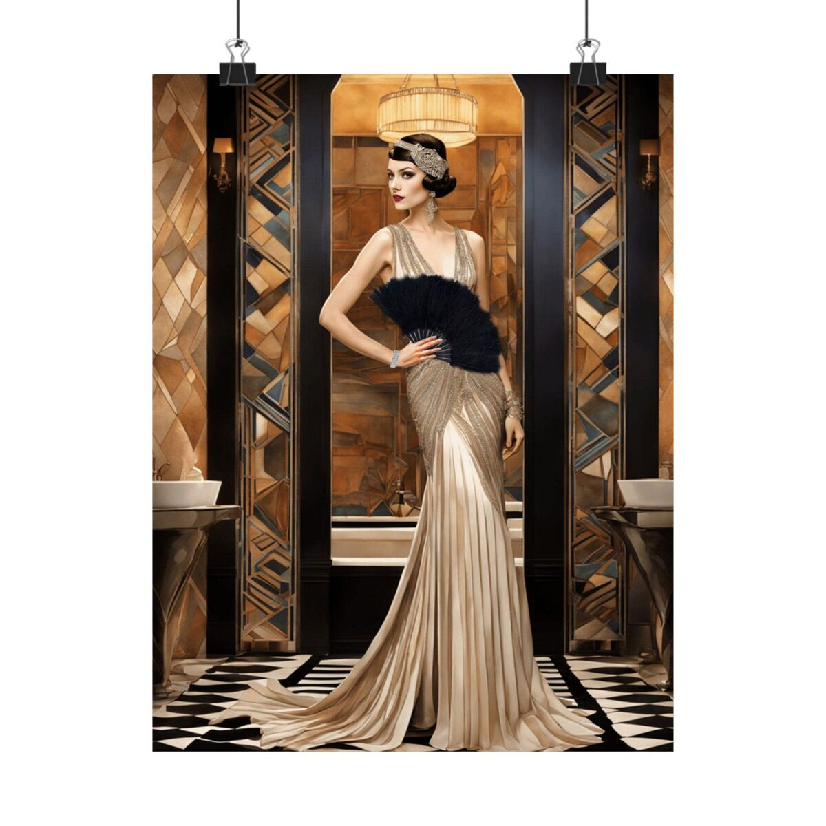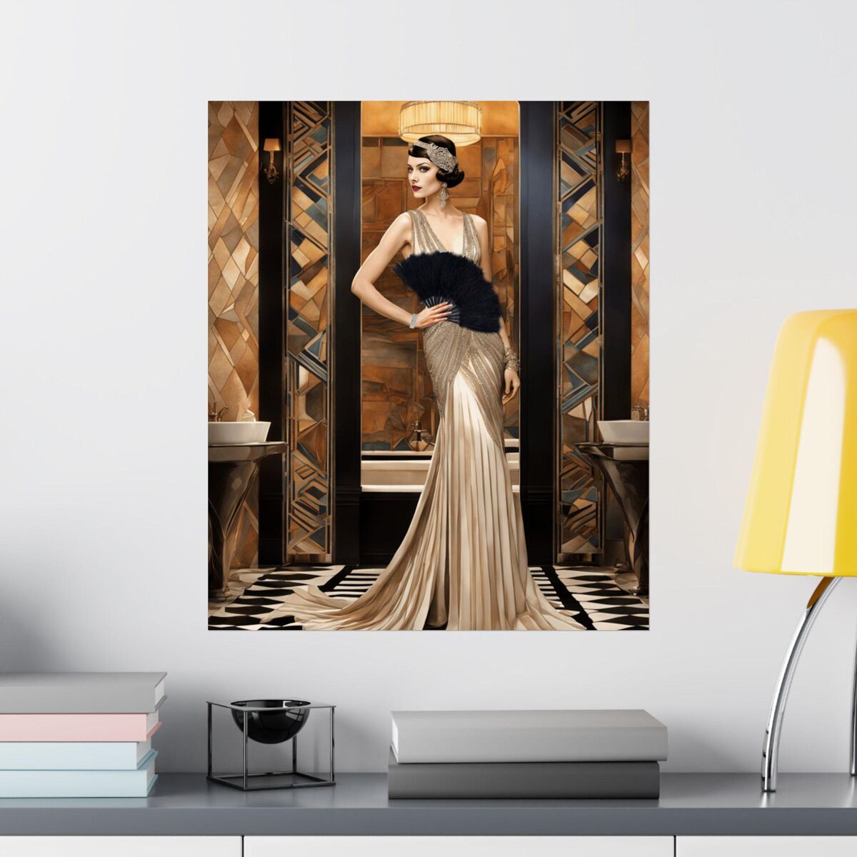 Art Deco Mosaic Print Flapper Wall Art Painting Print Gatsby Old Hollywood Girl Glamour Gatsby Retro Poster 1920s Wall Art