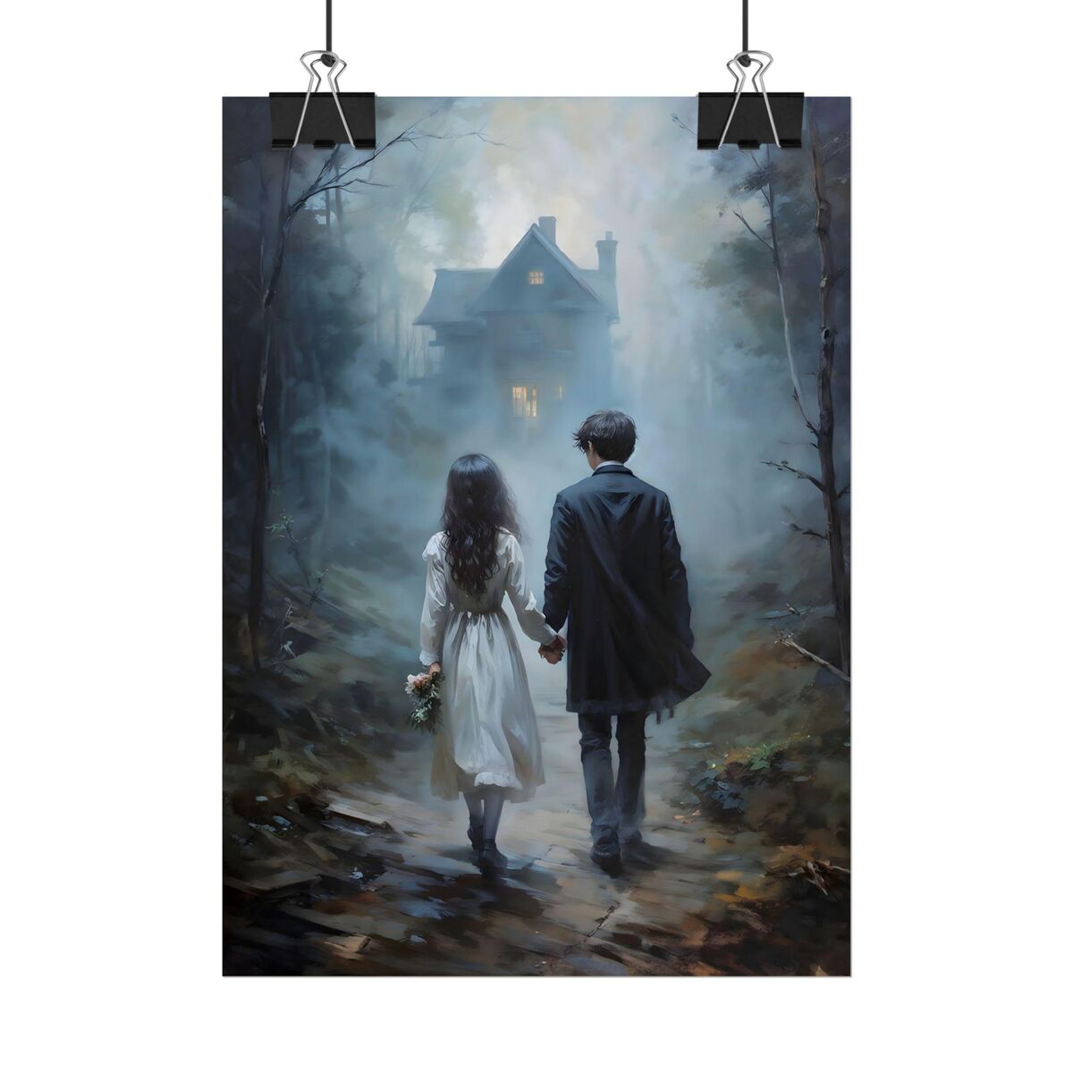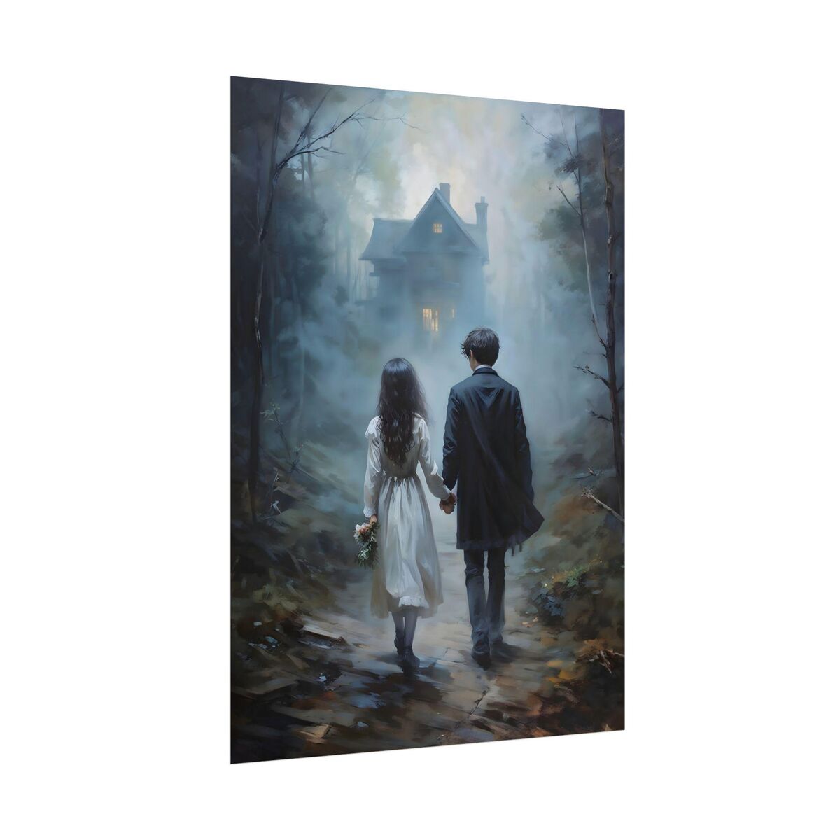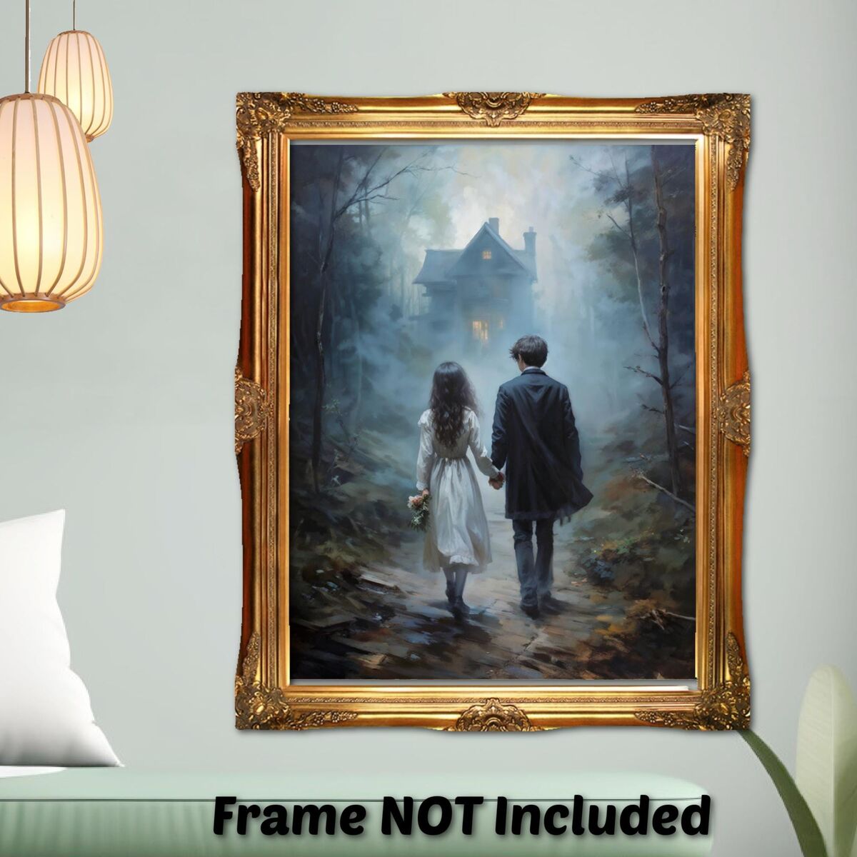 Girl In White Crossing Over Print Dark Academia Oil Painting Print Nocturne Ghost Children Dark Victorain Dark Moody Wall Art
