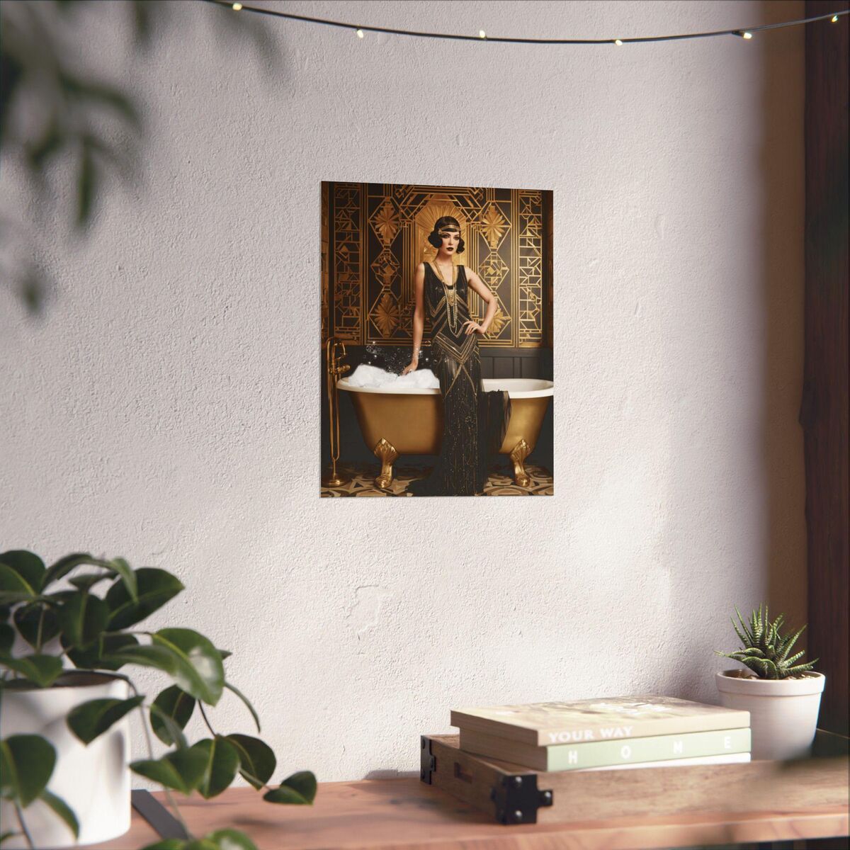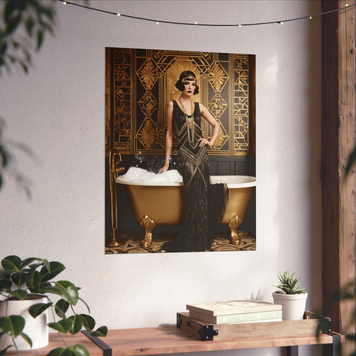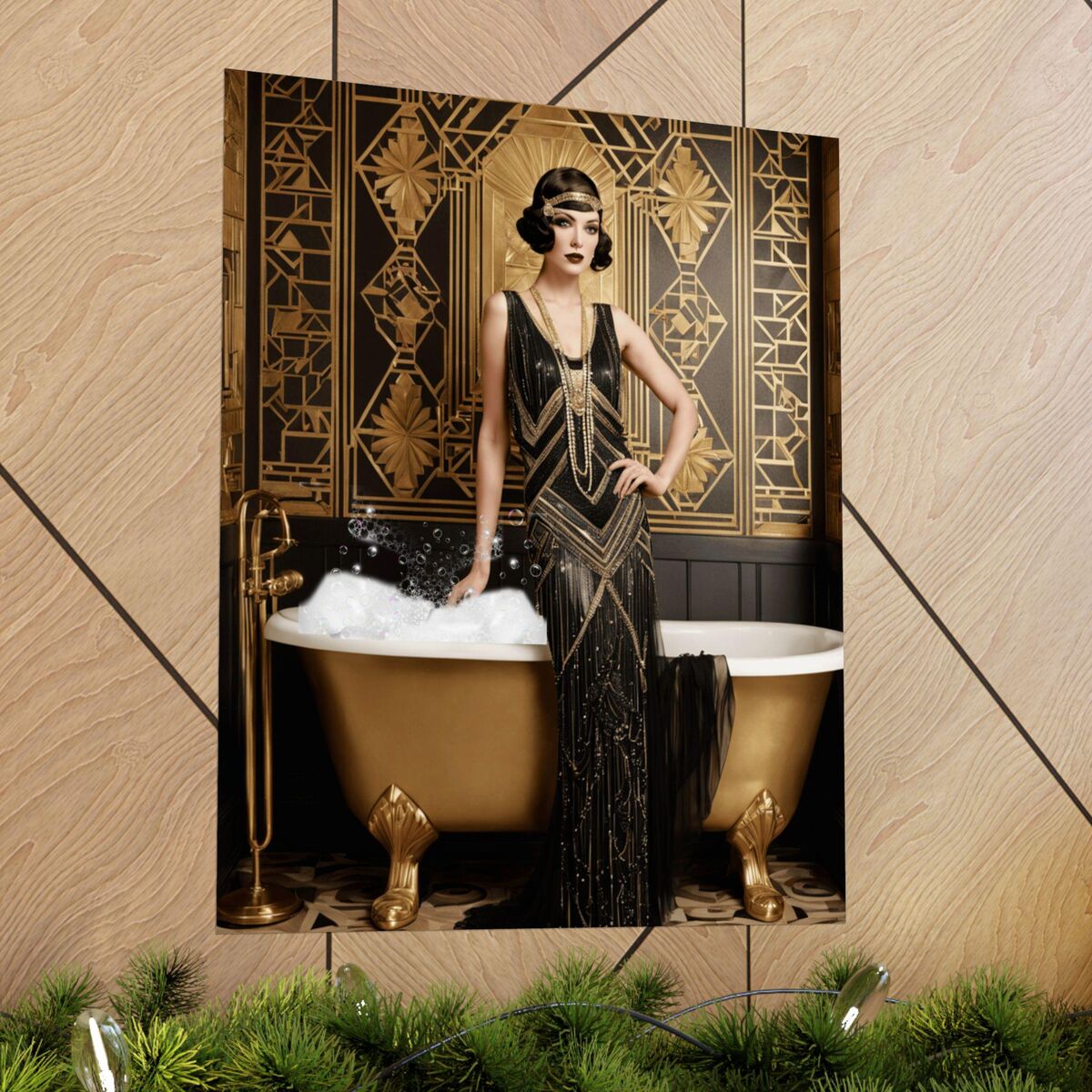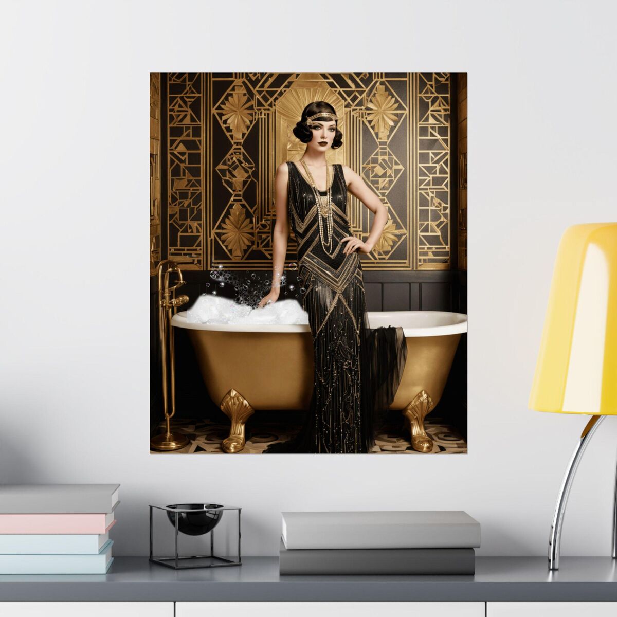 Gold Art Deco Bathroom Wall Art Print Gatsby Girl Speakeasy Poster Retro Powder Room Wall Art 1920s Style Home Decor