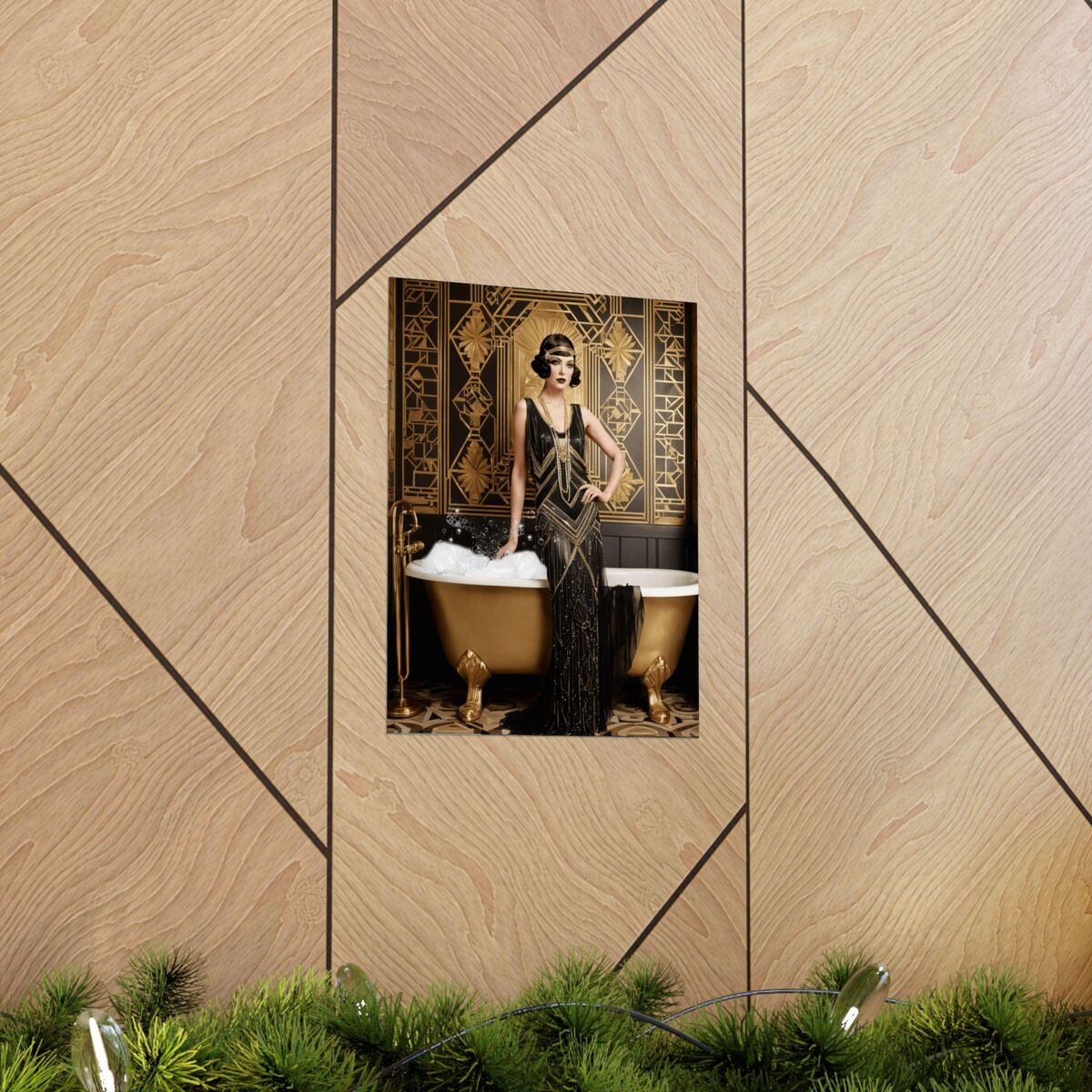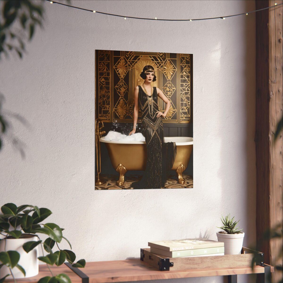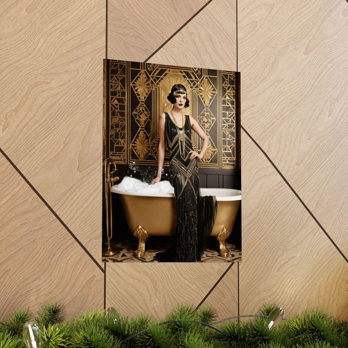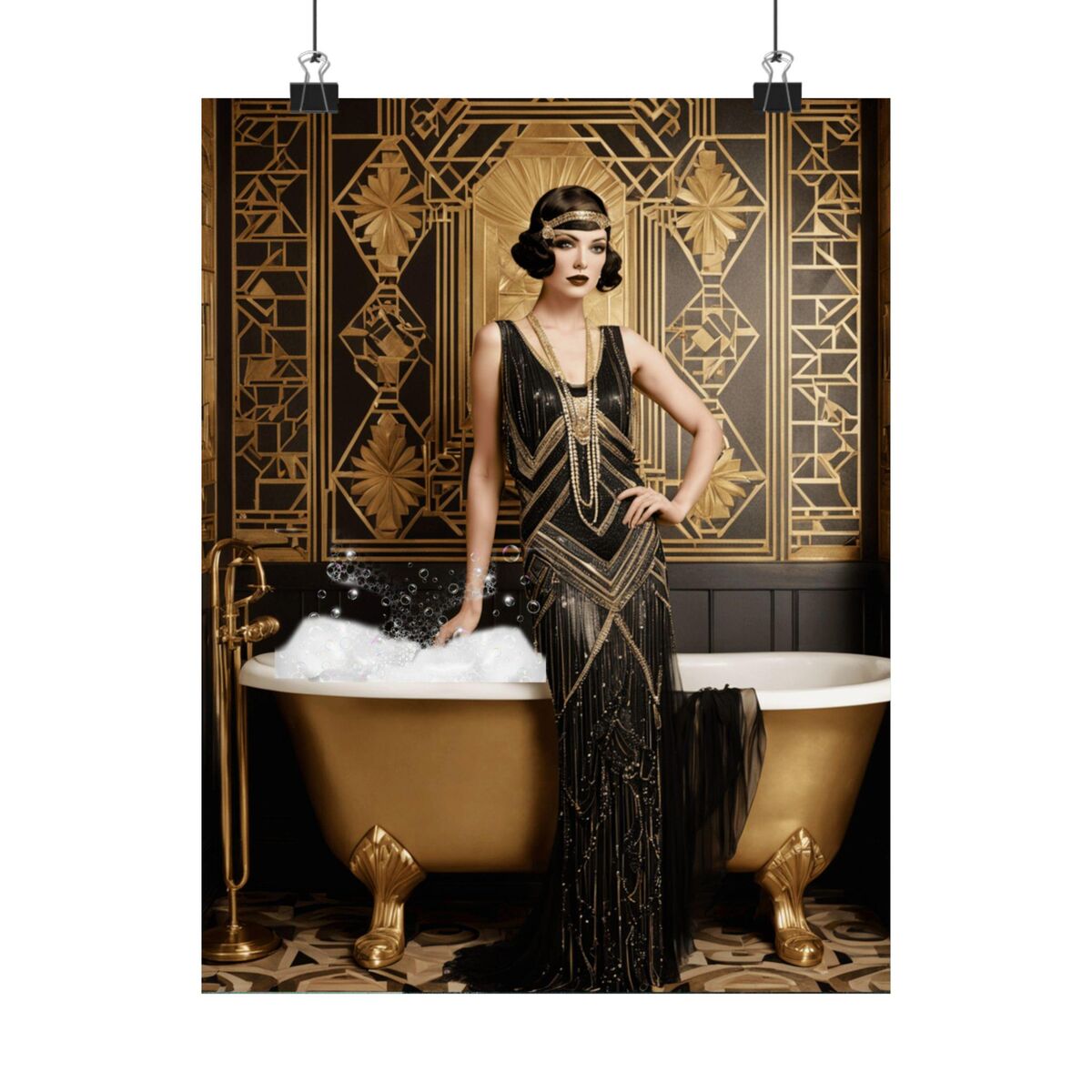 Gold Art Deco Bathroom Wall Art Print Gatsby Girl Speakeasy Poster Retro Powder Room Wall Art 1920s Style Home Decor