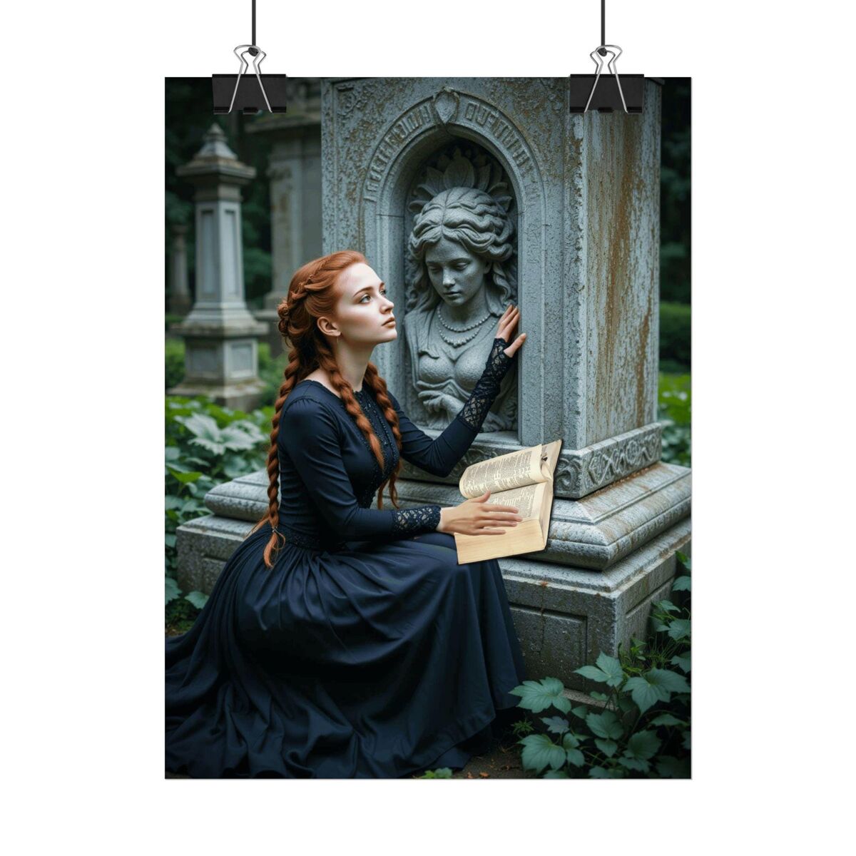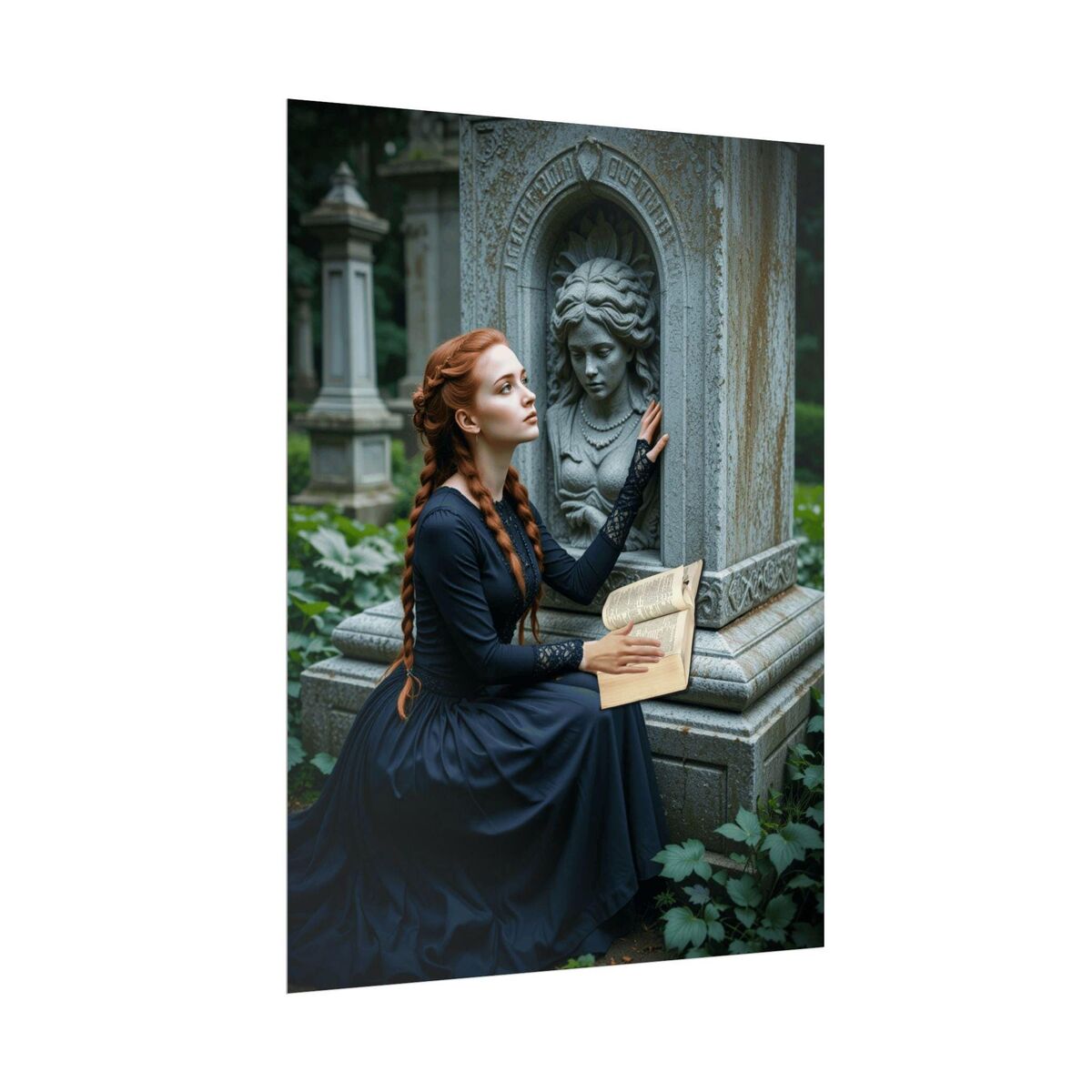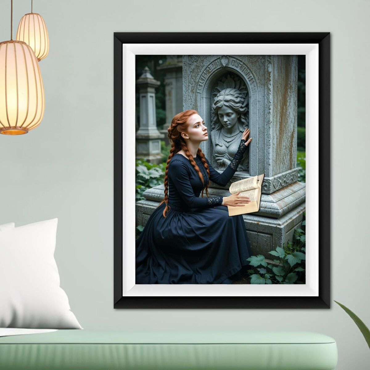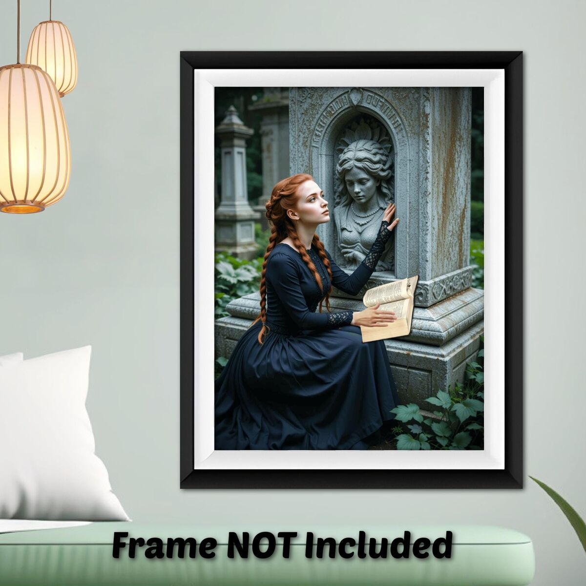 Gothic Victorian Dark Academia Painting Print Dark Lady Reading Mourning Death Nocturne Poster Decor Dark Moody Wall Art