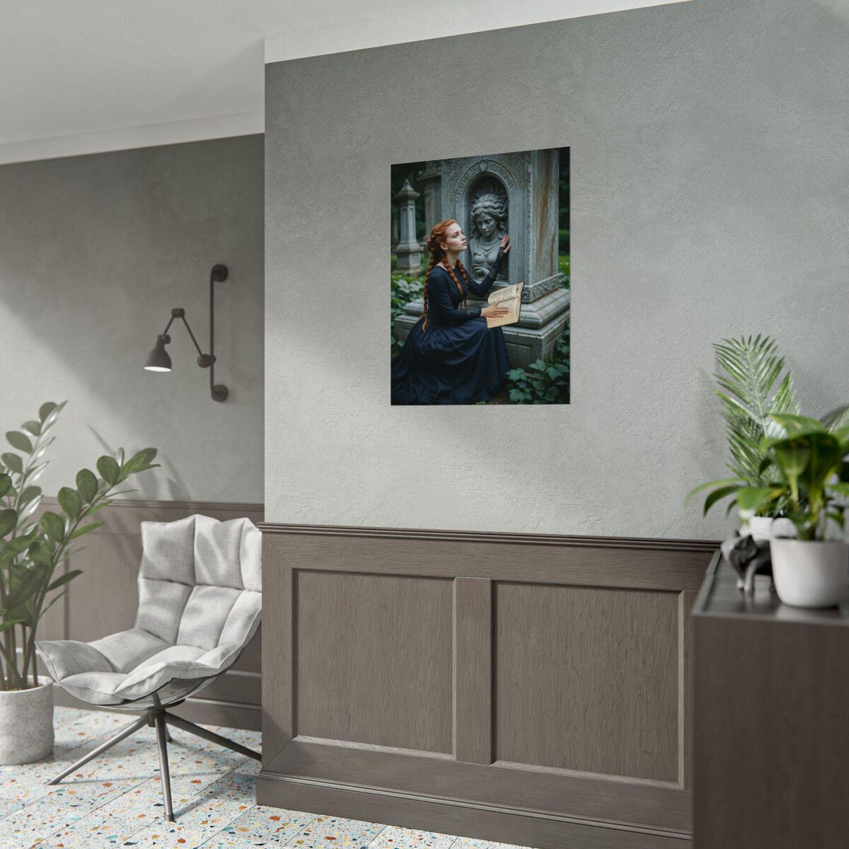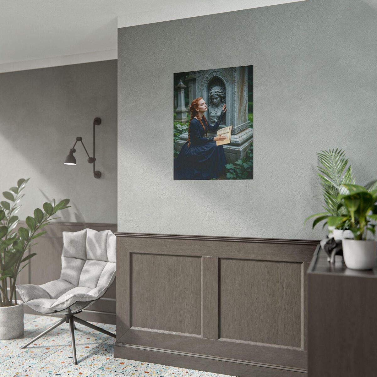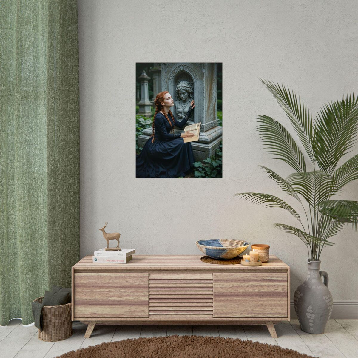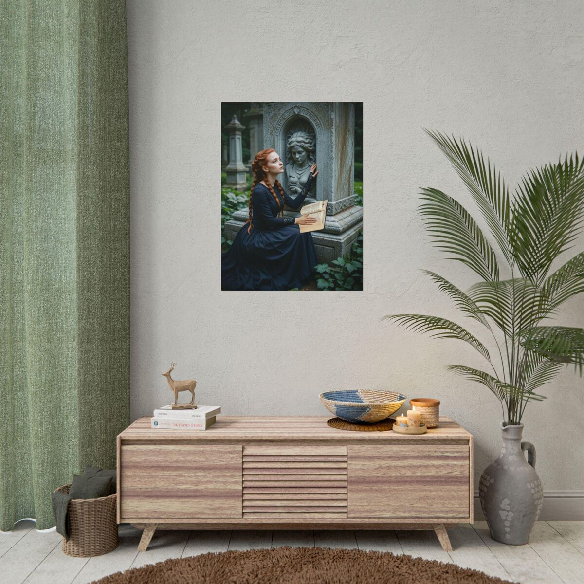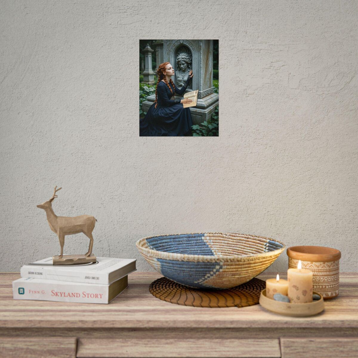 Enhance the ambiance of your living space with this captivating lady Print. This exquisite dark academia print features a mesmerizing lady print, exuding an enchanting aura that will add a touch of mystique to any room. This is a print of the original painting, and is exclusive to Dreamland