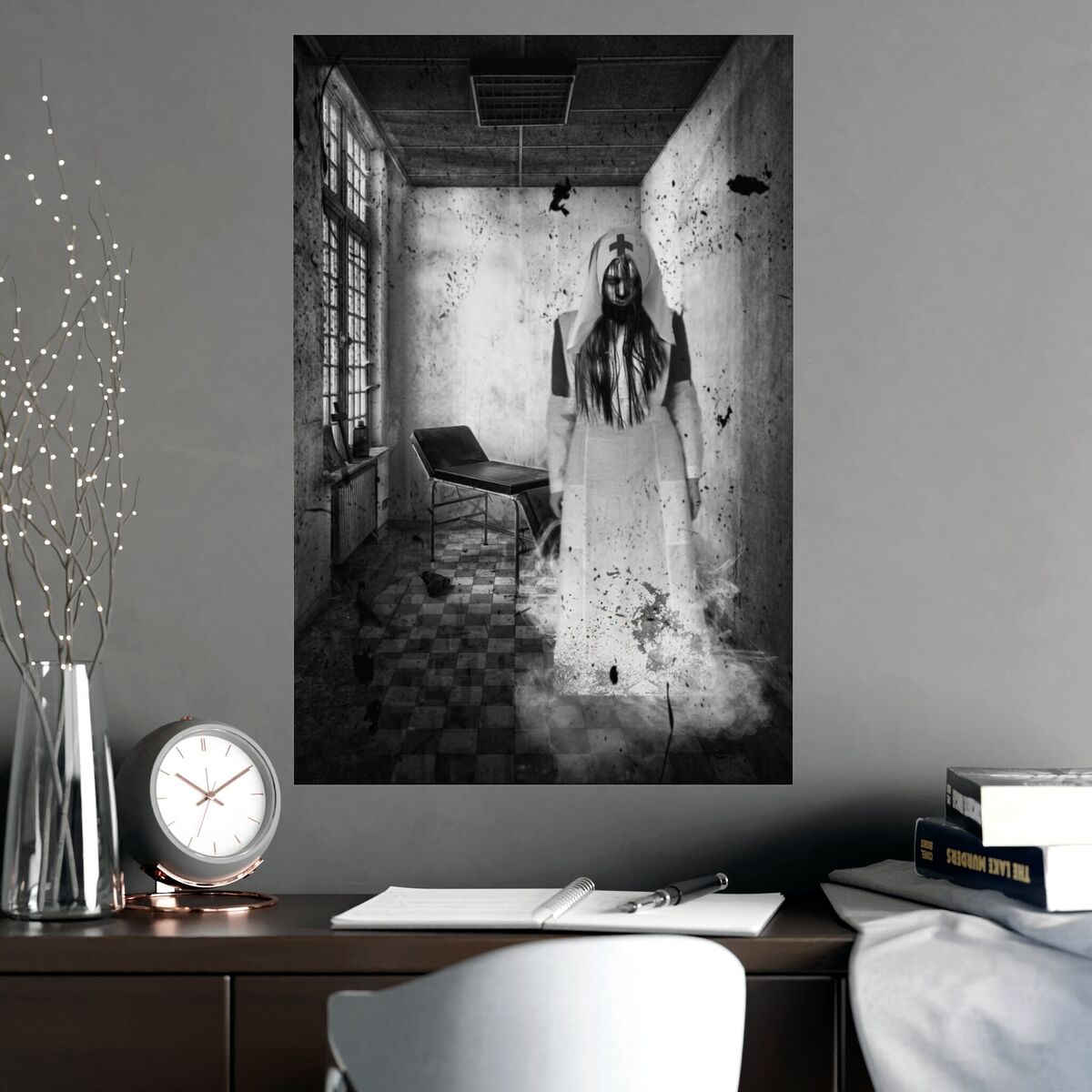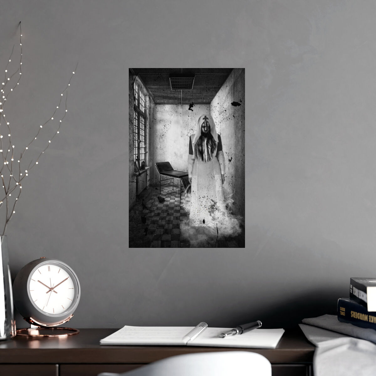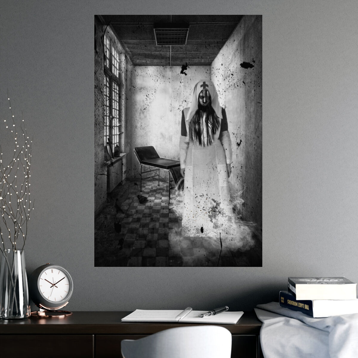 Gothic Wall Art Poster Creepy Nurse Photo Haunted Asylum Portrait Horror Print Halloween Goth Art Print Portrait