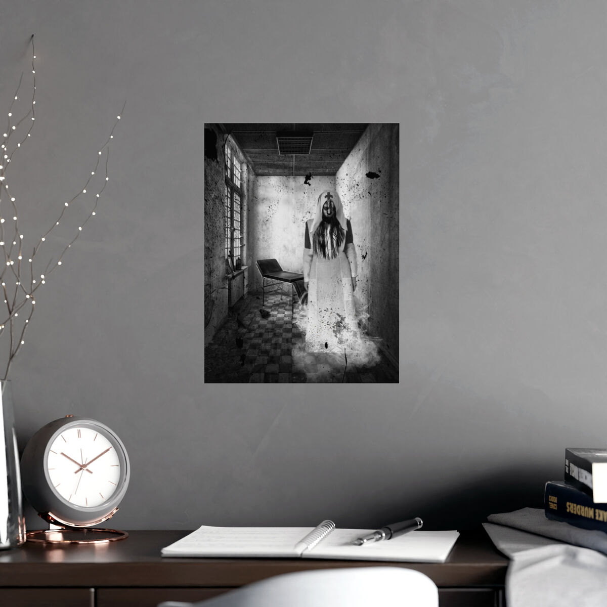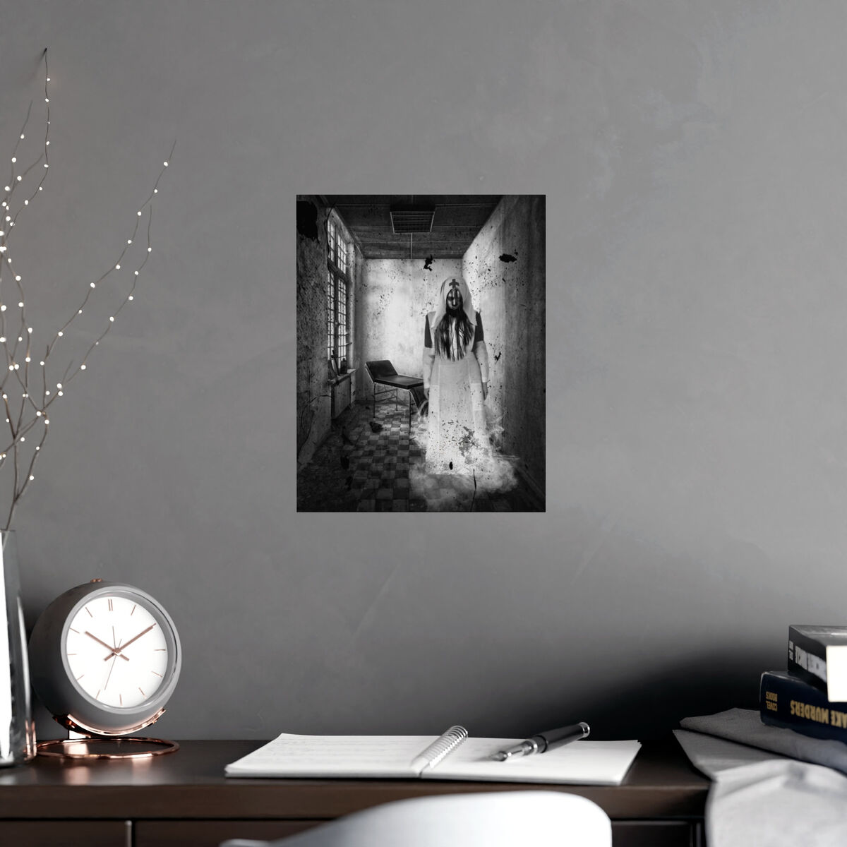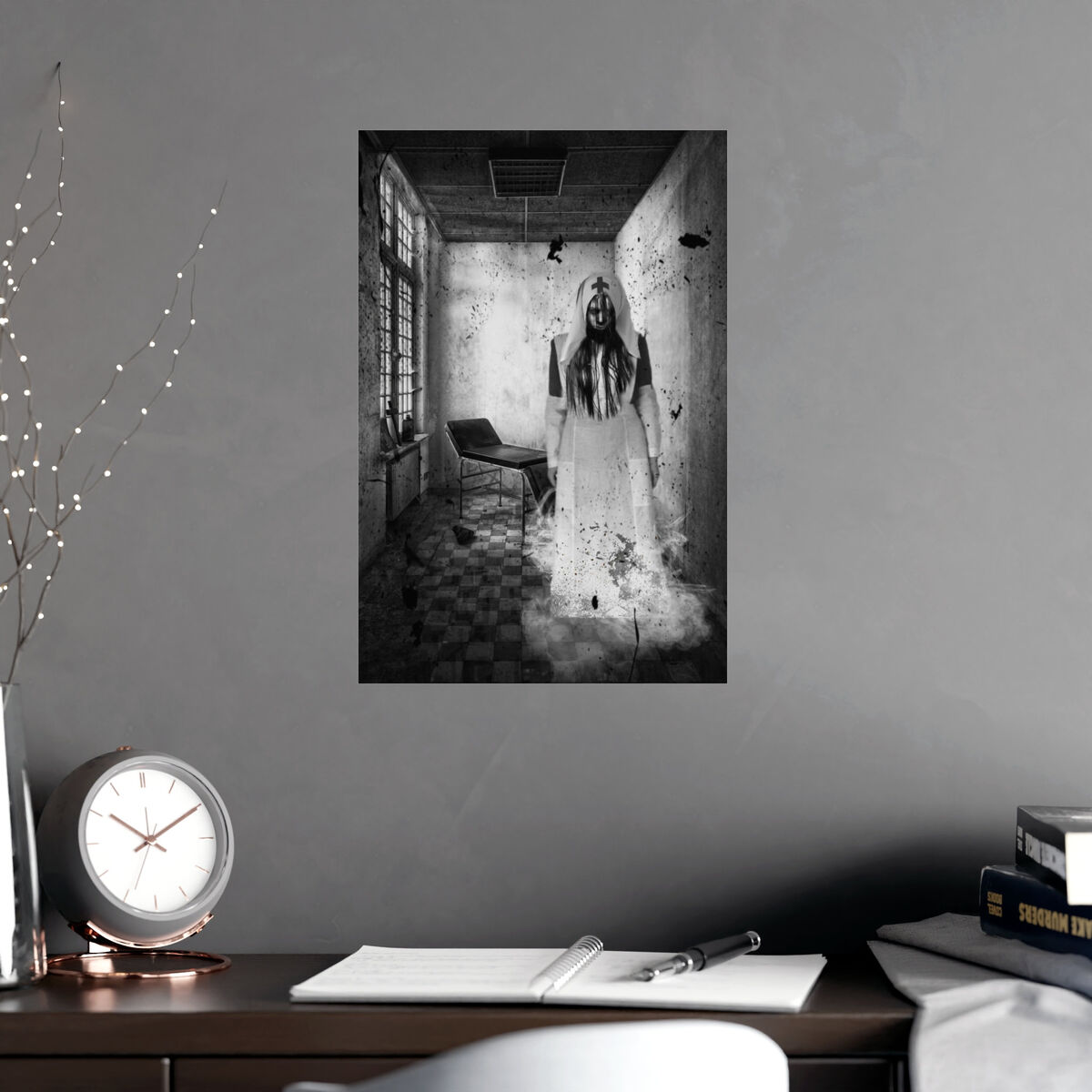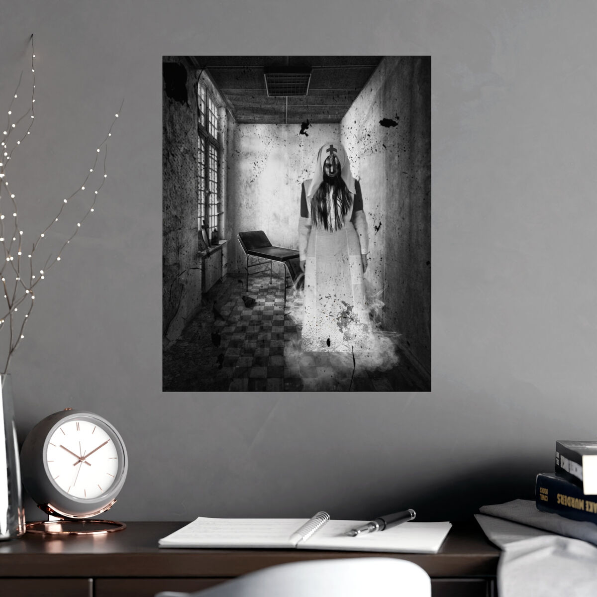 Gothic Wall Art Poster Creepy Nurse Photo Haunted Asylum Portrait Horror Print Halloween Goth Art Print Portrait