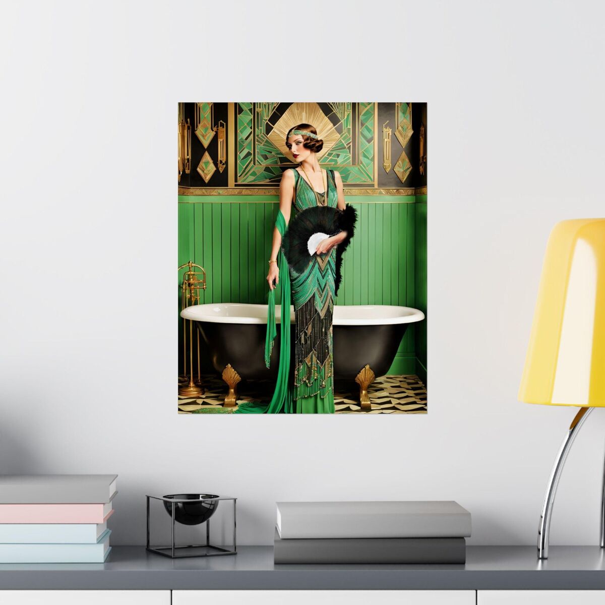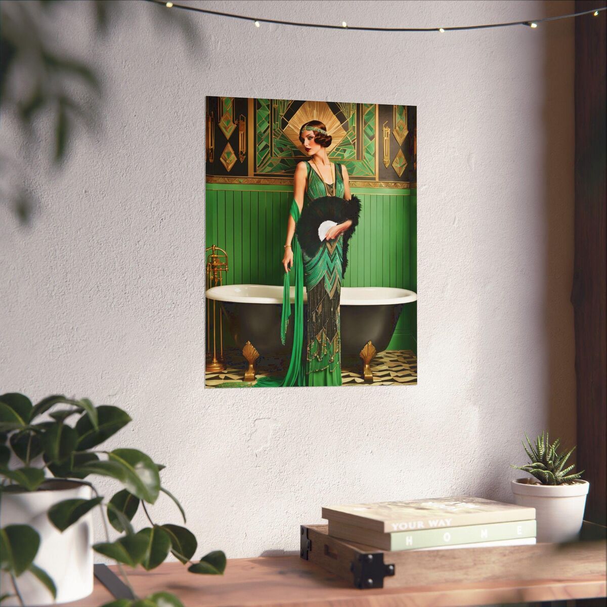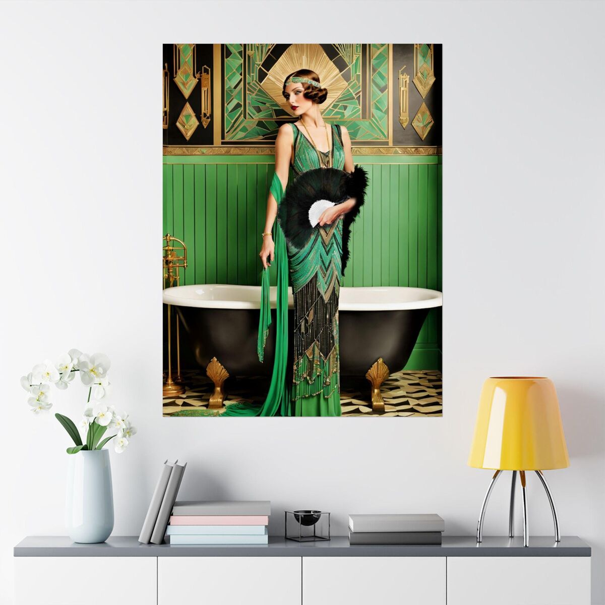 Green Art Deco Wall Art Print Bathroom Print Gatsby Girl Poster Retro Powder Room 1920s Style Home Decor