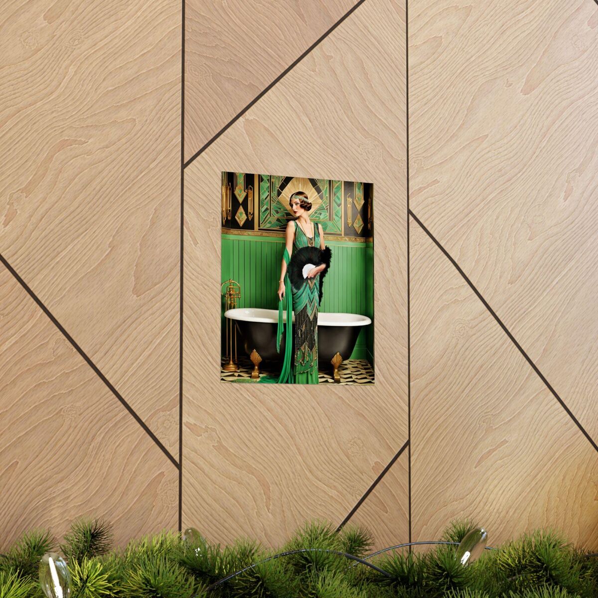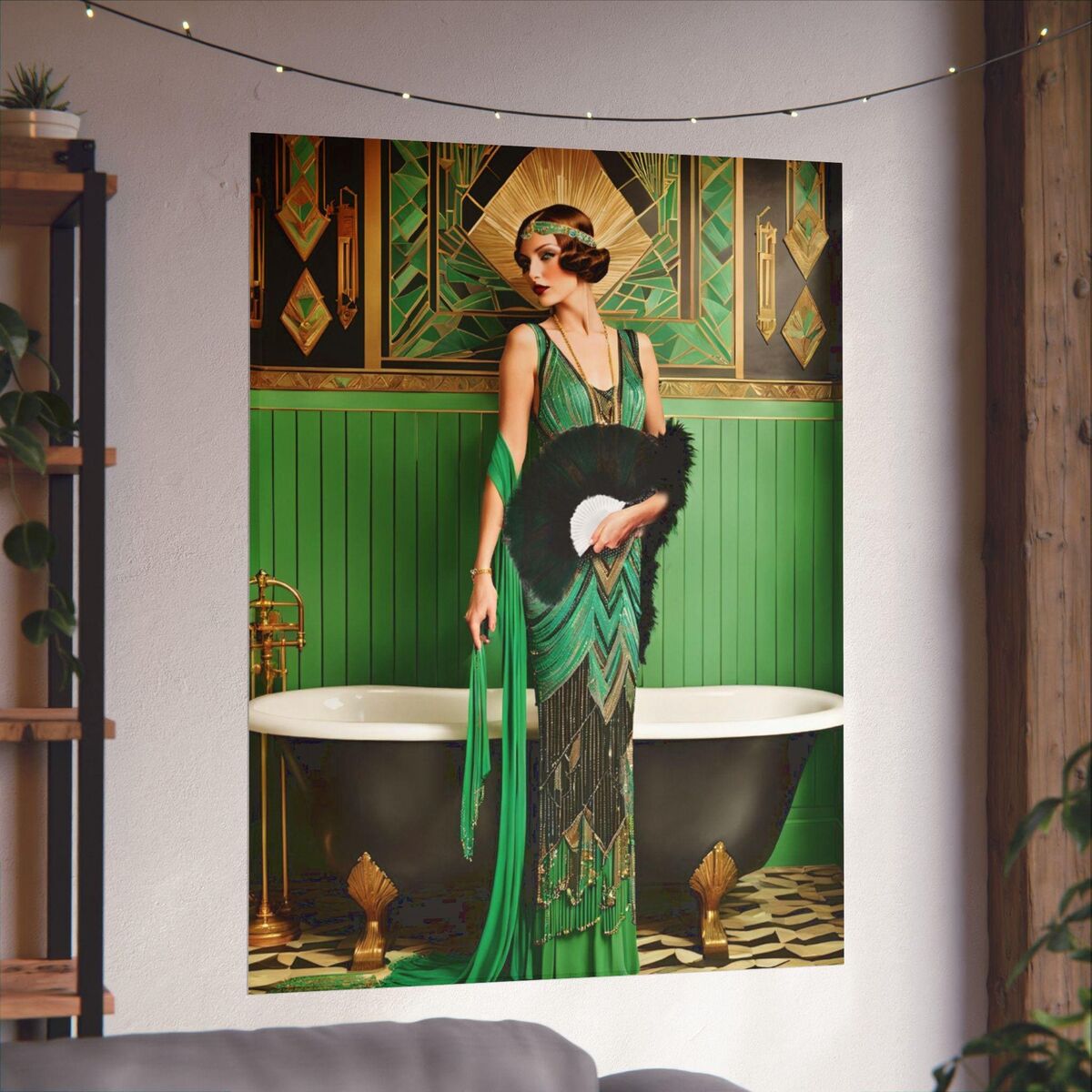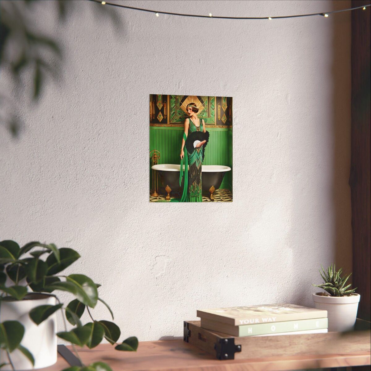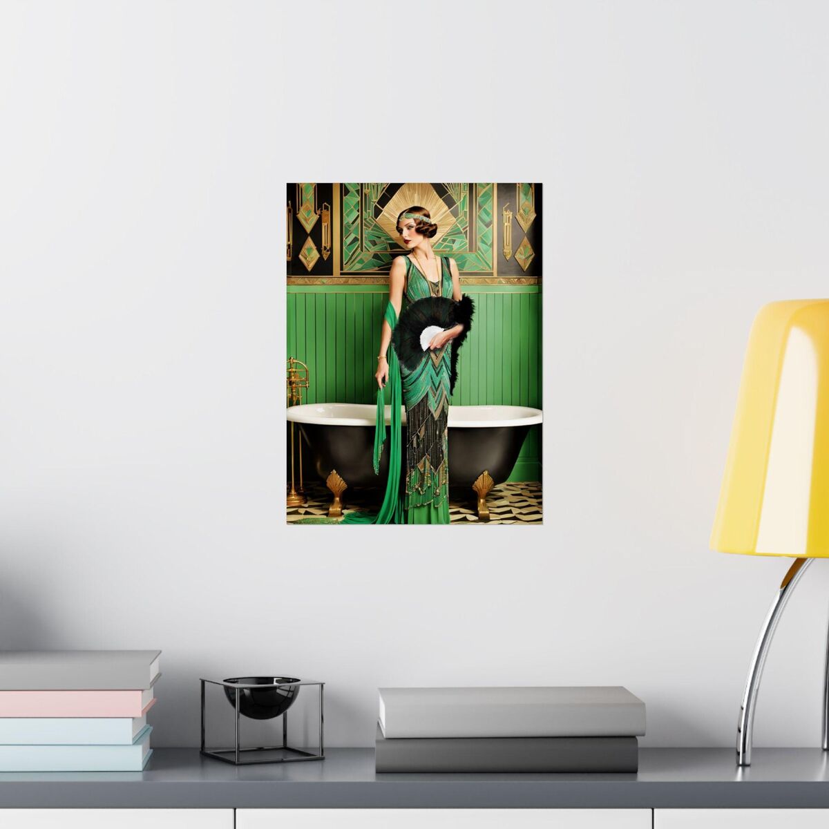 Green Art Deco Wall Art Print Bathroom Print Gatsby Girl Poster Retro Powder Room 1920s Style Home Decor