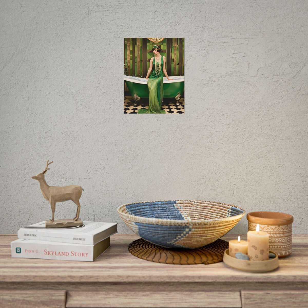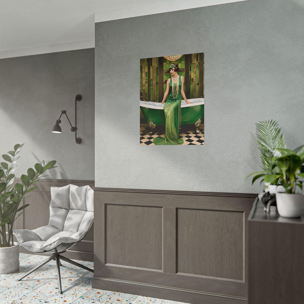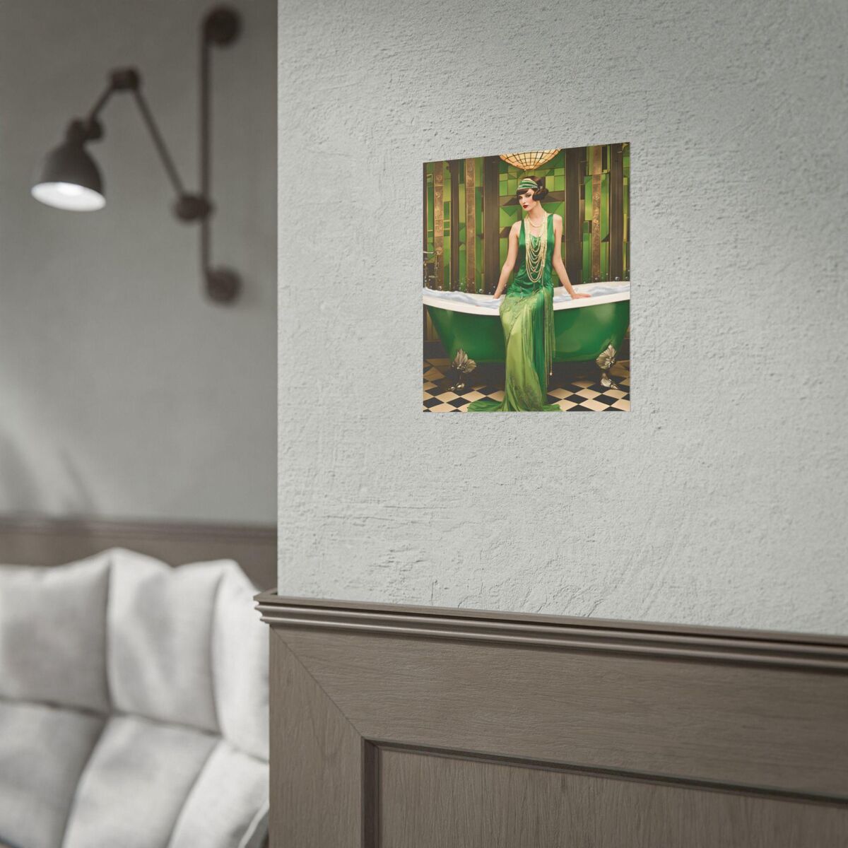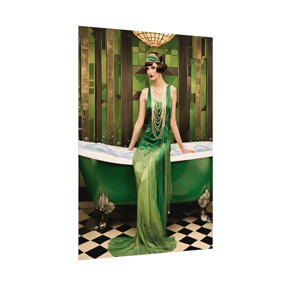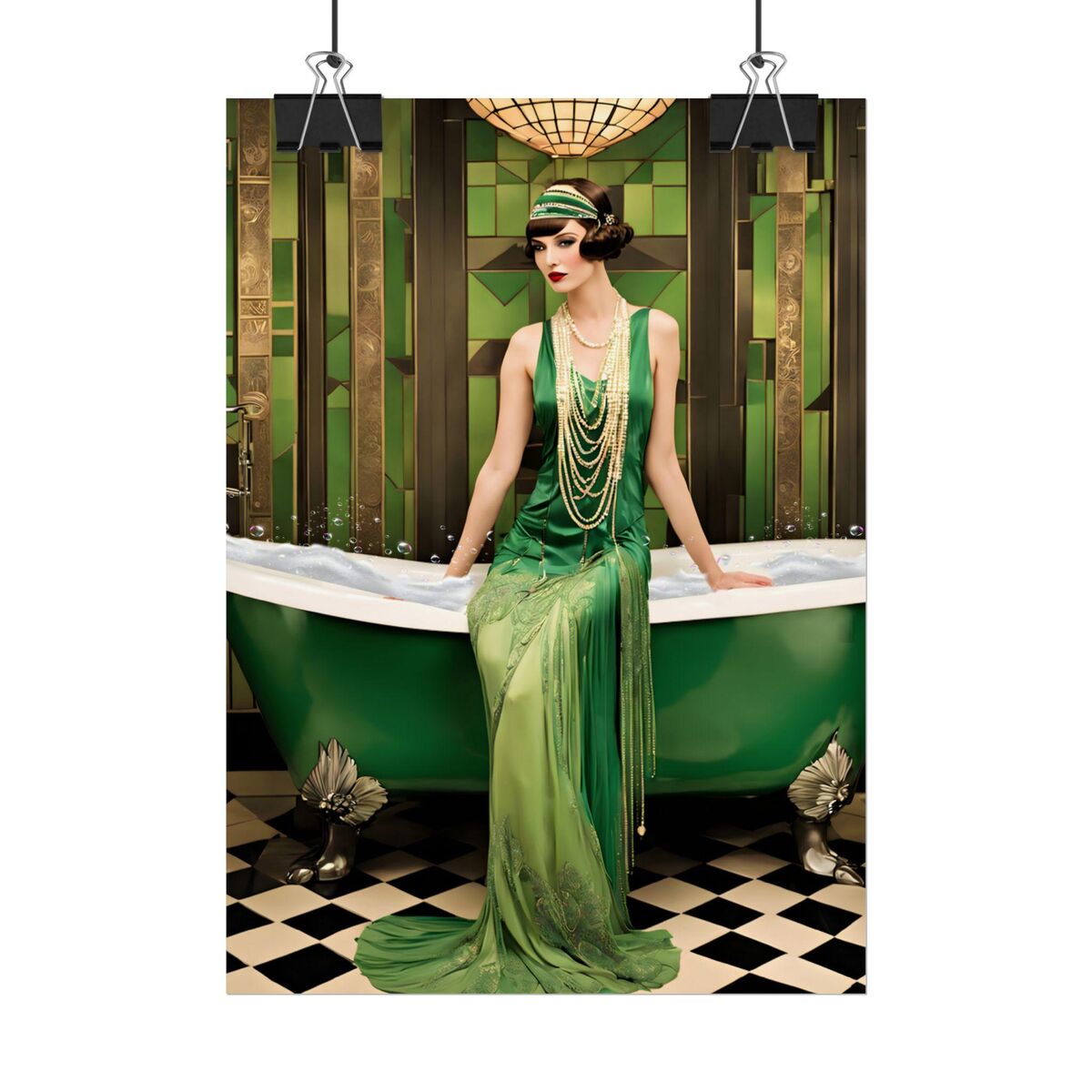 Green Bathroom Print Art Deco Gatsby Girl 1920s Style Flapper Gatsby Girl Powder Room Bathroom Poster Print Wall Art Retro Home Decor
