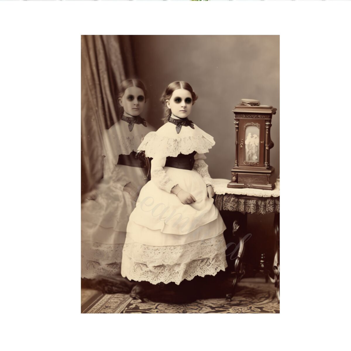 Children Creepy Photo Victorian Black Eyed Girls Ghost Family Vintage Printable Girl Art Halloween Download Wall Art Scrapbook Card