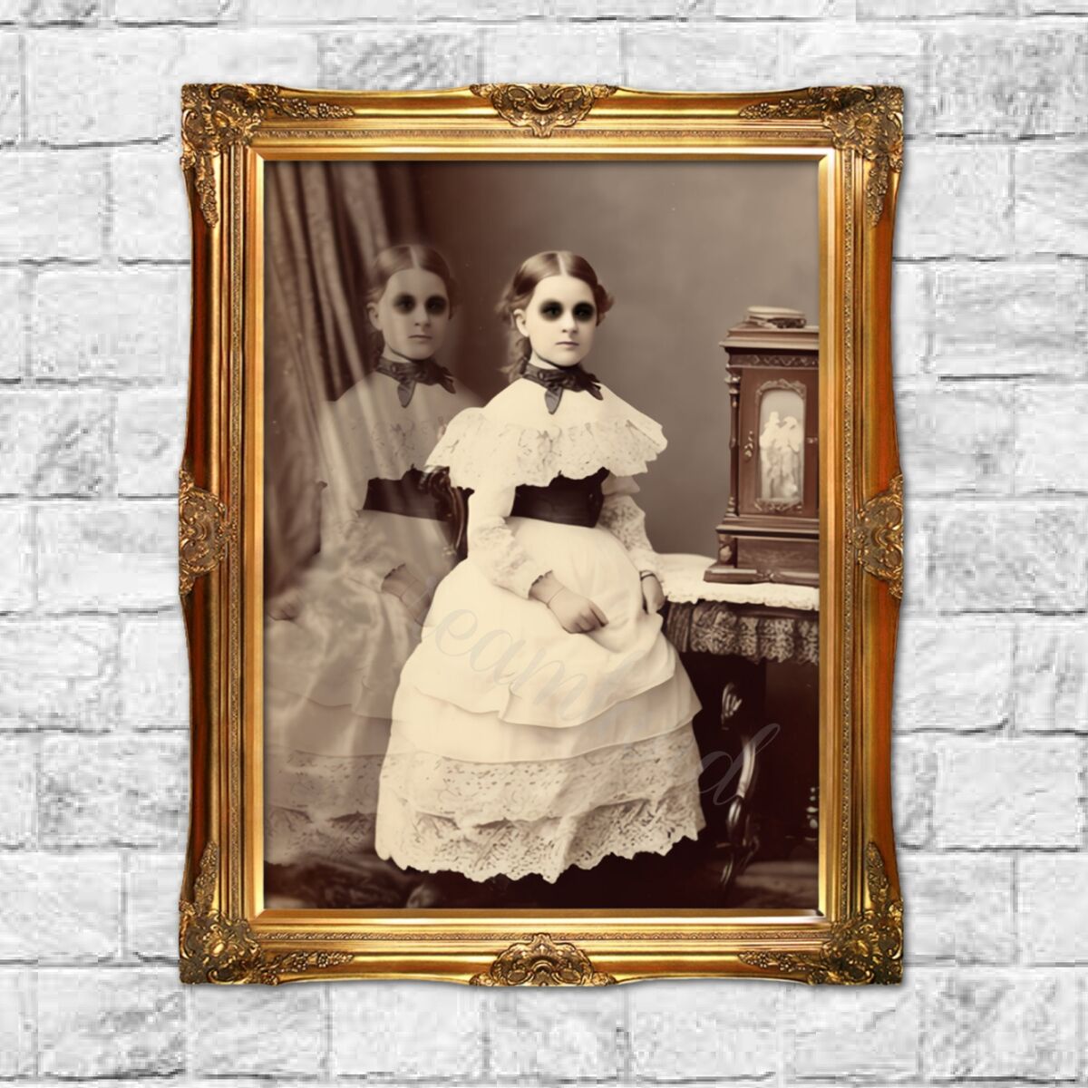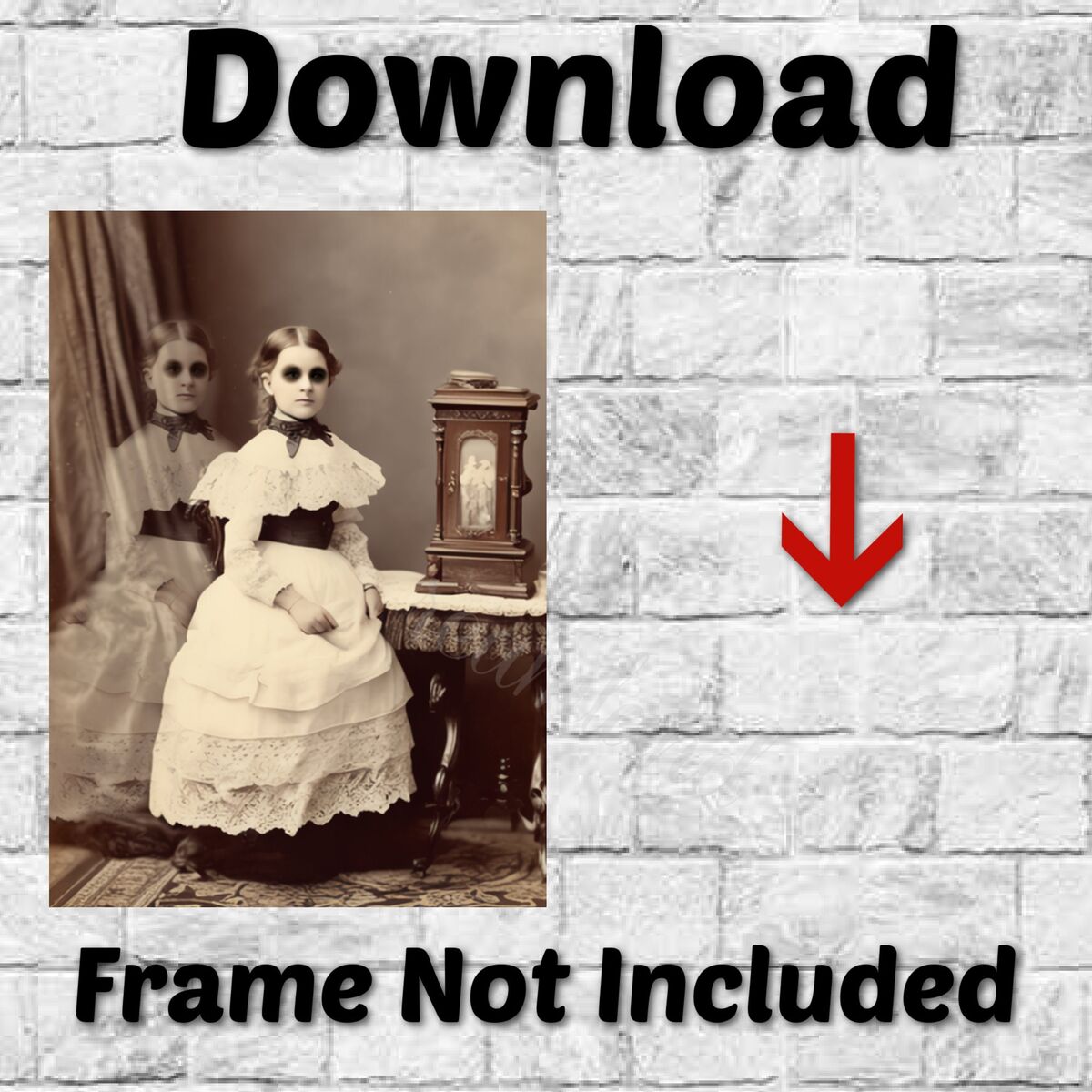 Haunted Creepy Ghost Twin Photo Printable Horror Wall Art Print Halloween Scary Digital Print Download