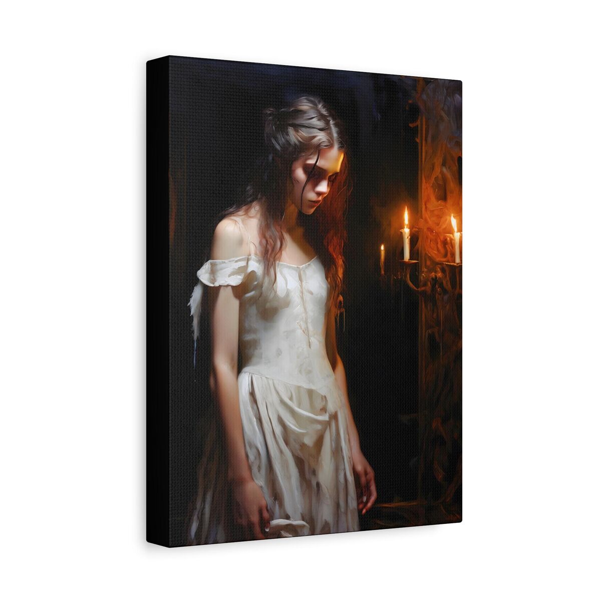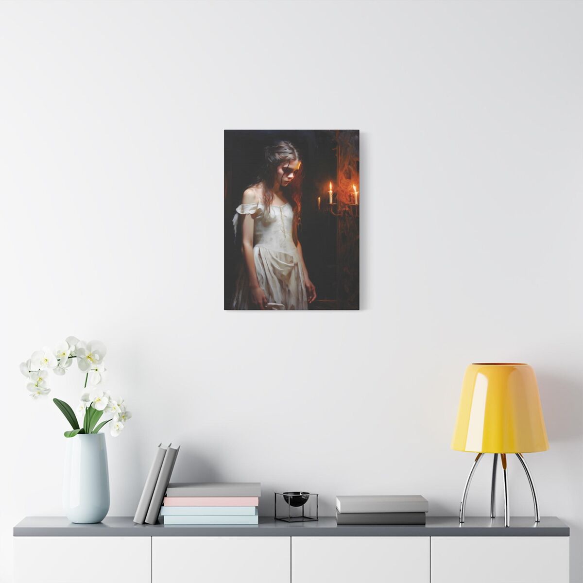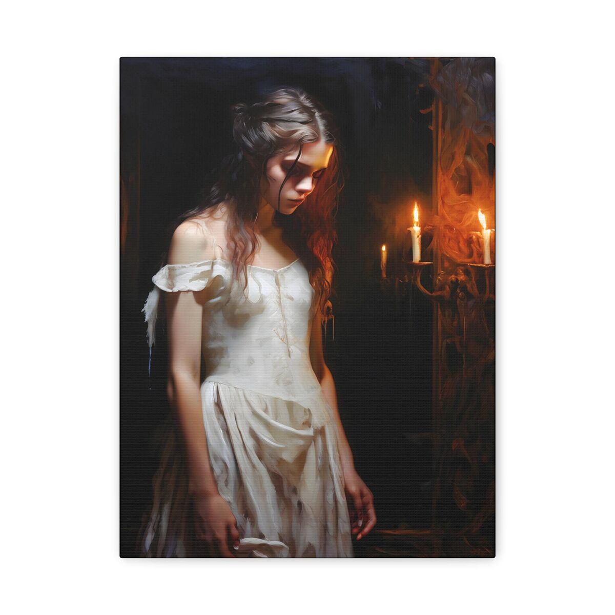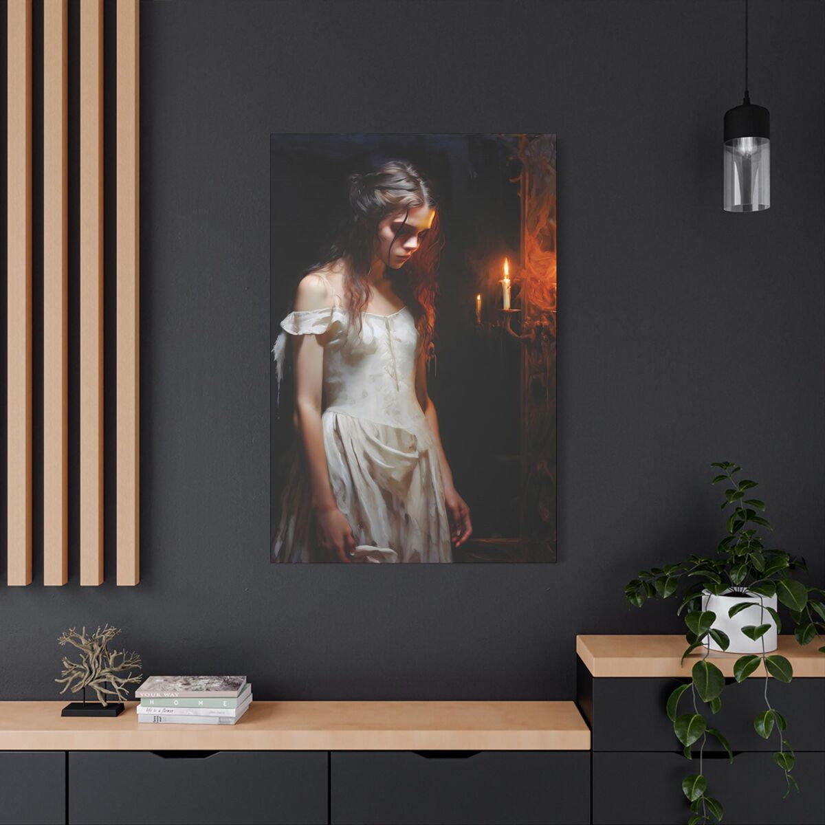 Haunted Painting Print Victorian Dark Academia Canvas Halloween Ghost Wall Art Decor Dark Moody Gothic Large Size Framed Canvas Print