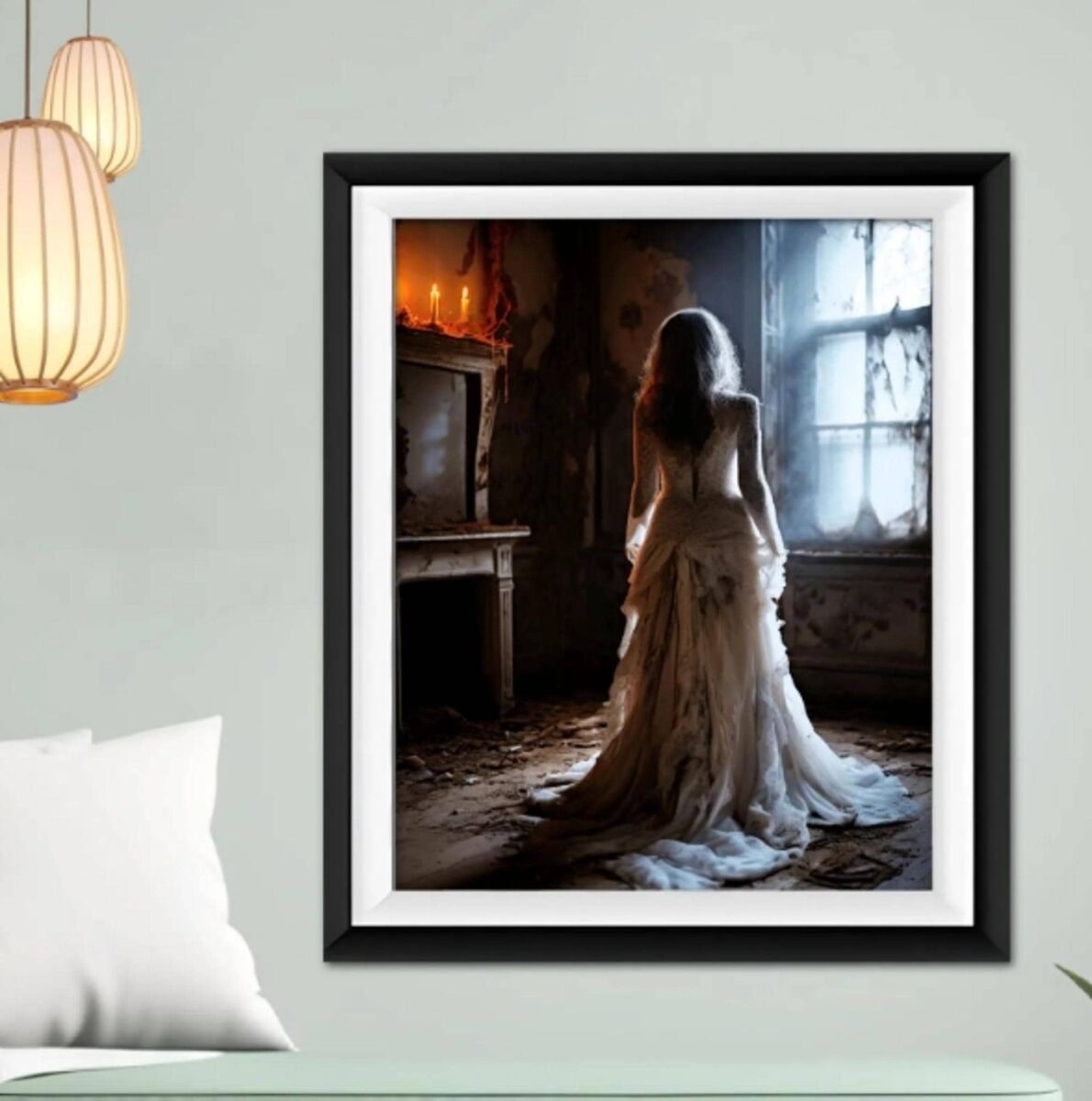 Haunted Victorian Bride Dark Academia Painting Print Dark Lady In White At Night Nocturne Poster Decor Dark Moody Wall Art