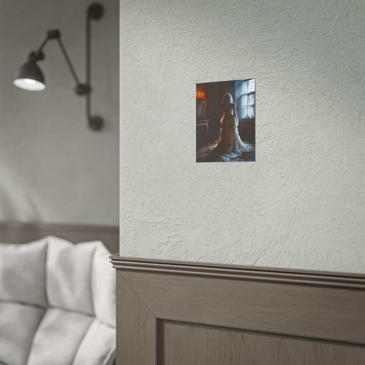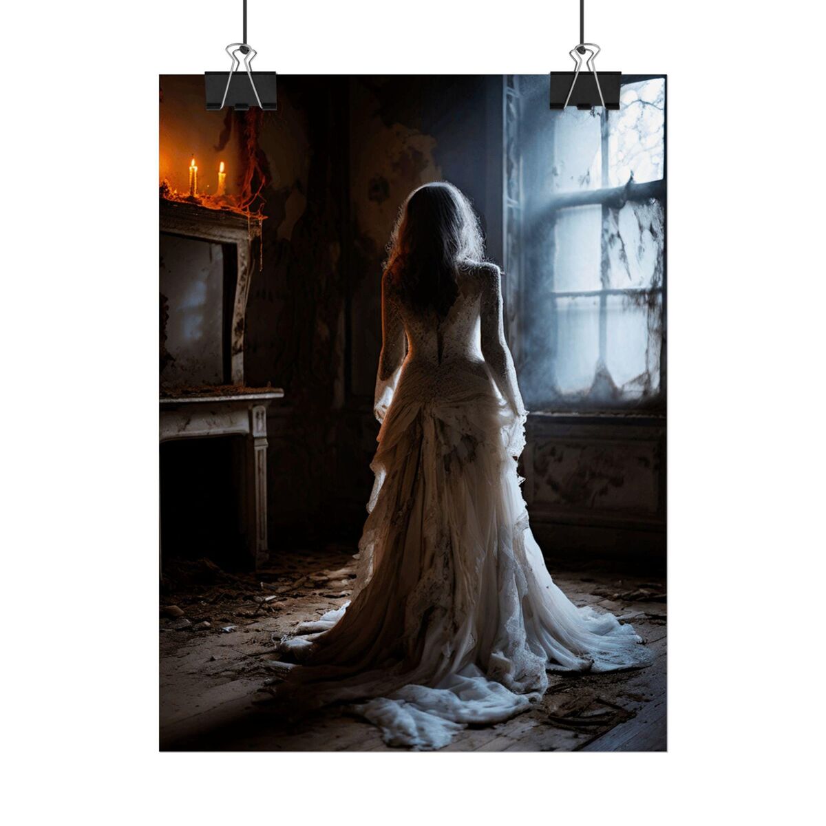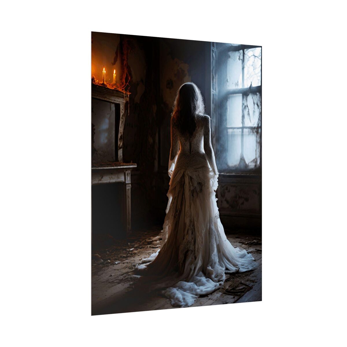 Enhance the ambiance of your living space with this captivating lady Print. This exquisite dark academia print features a mesmerizing lady in white print, exuding an enchanting aura that will add a touch of mystique to any room. This is a print of the original painting, and is exclusive to Dreamland