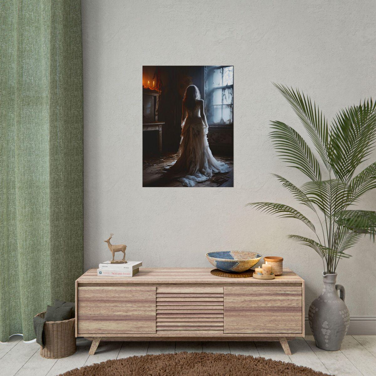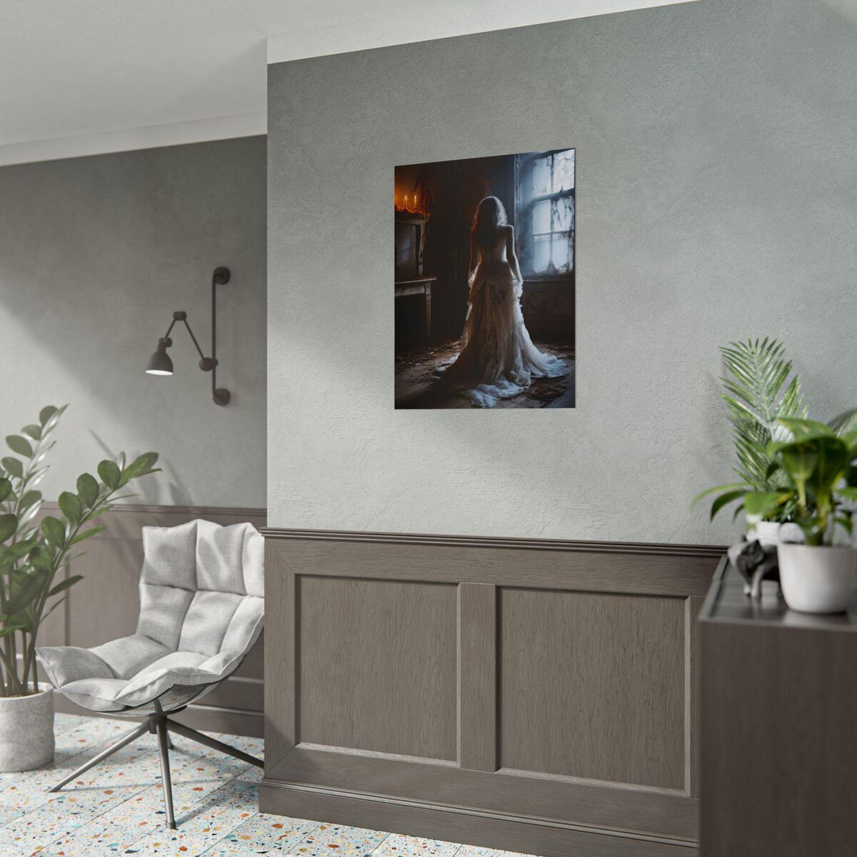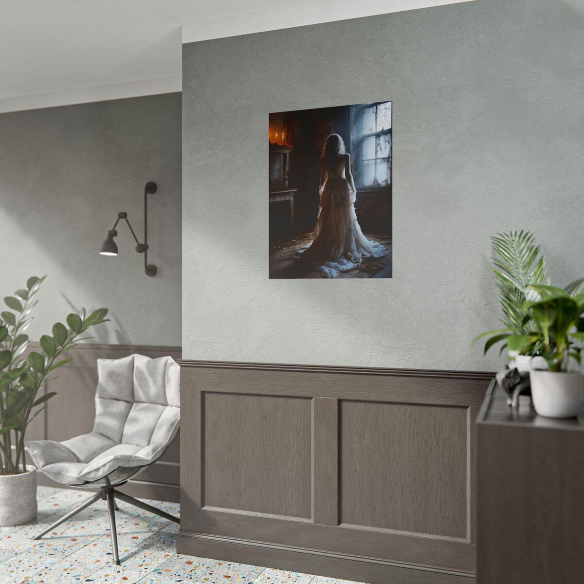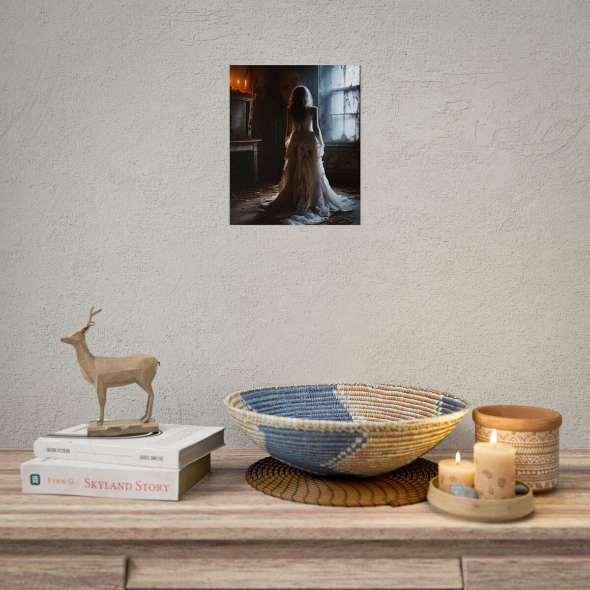 Enhance the ambiance of your living space with this captivating lady Print. This exquisite dark academia print features a mesmerizing lady in white print, exuding an enchanting aura that will add a touch of mystique to any room. This is a print of the original painting, and is exclusive to Dreamland