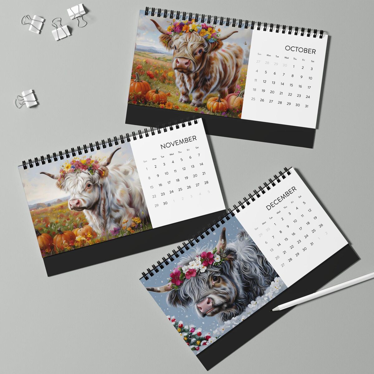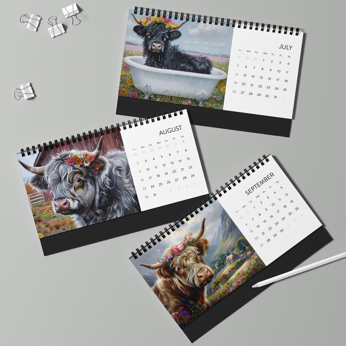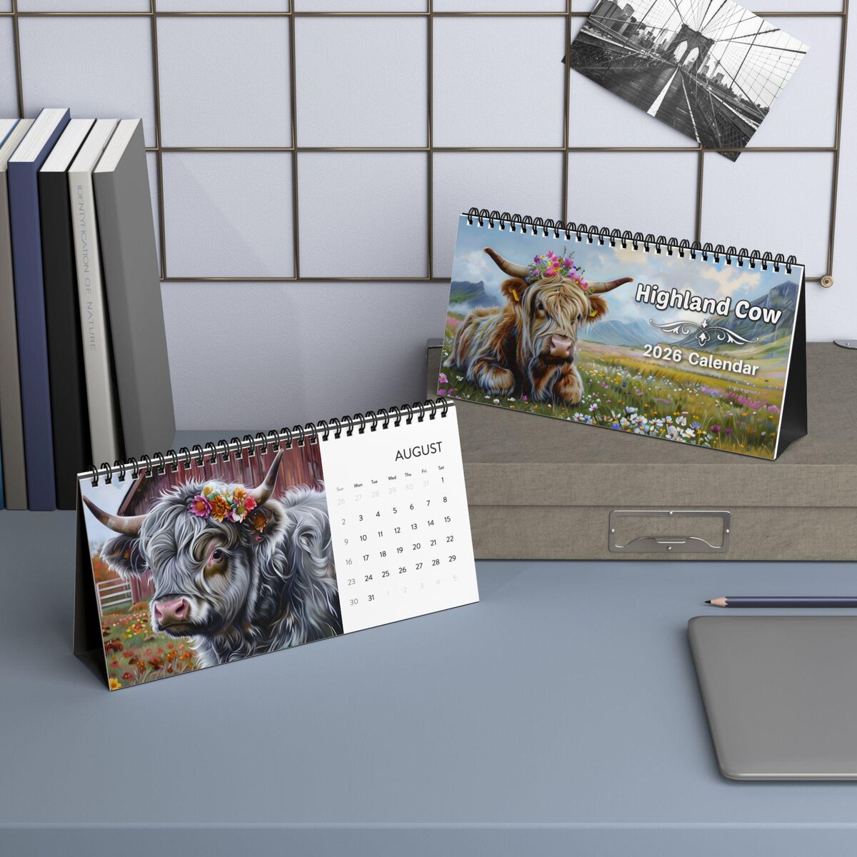 Highland Cow Desktop 2026 Calendar Spiral Desk Office Home Office Decor Calander Planner Scottish