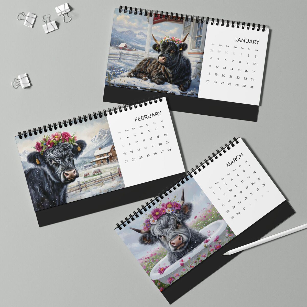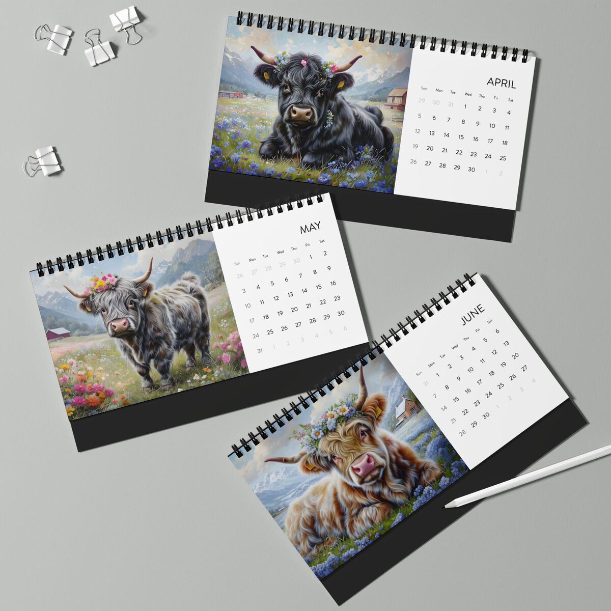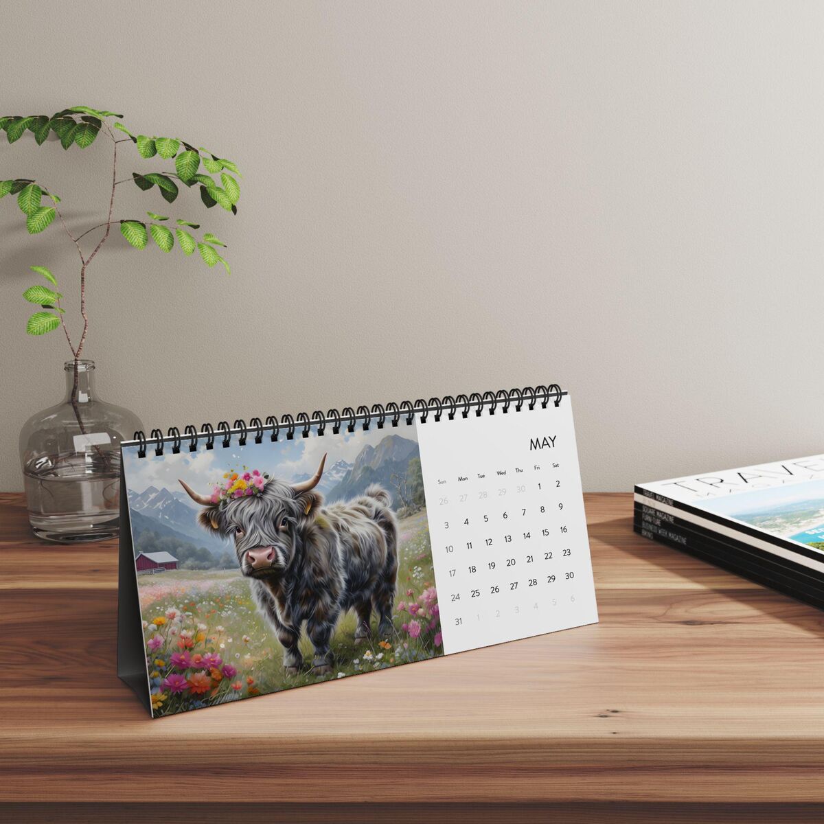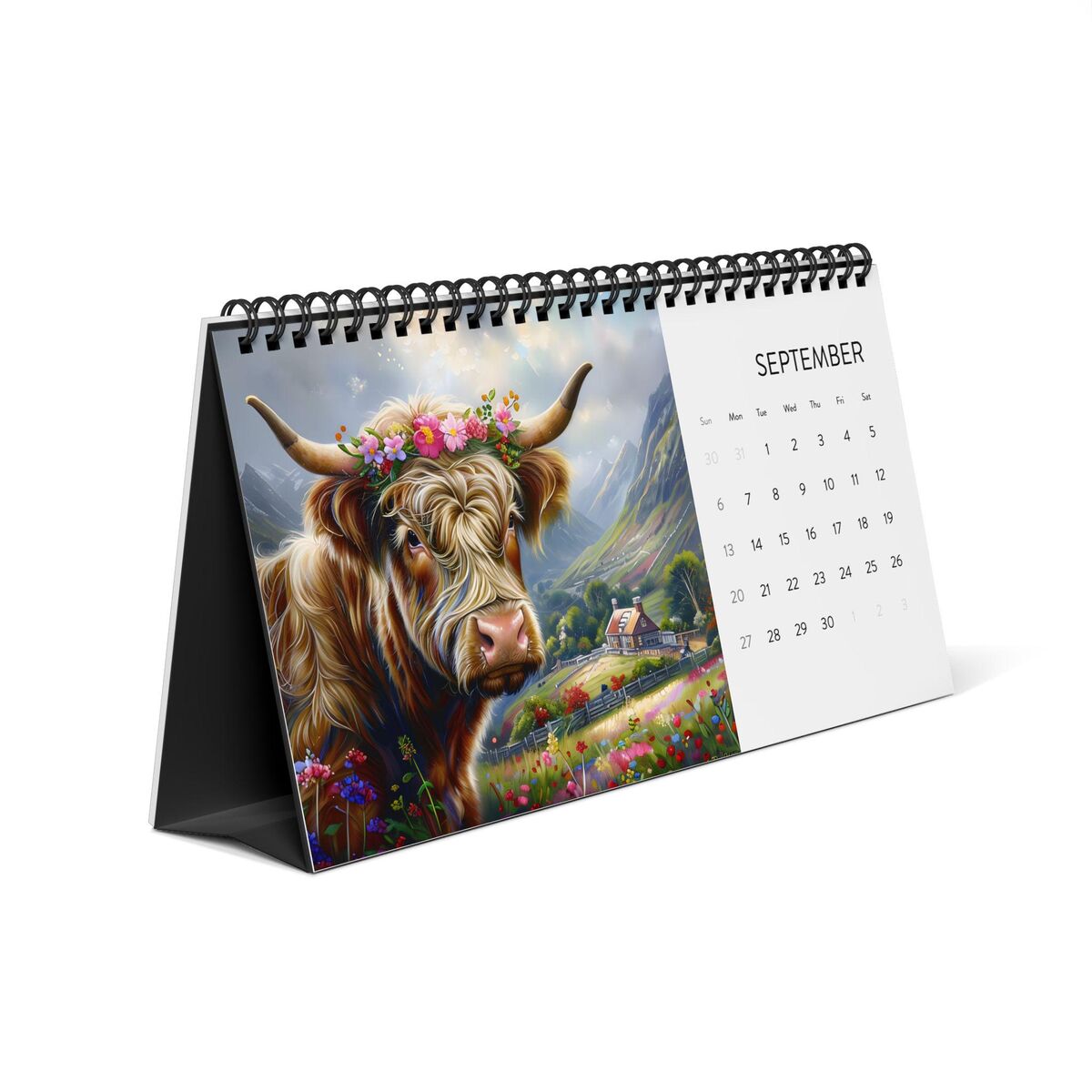 Highland Cow Desktop 2026 Calendar Spiral Desk Office Home Office Decor Calander Planner Scottish