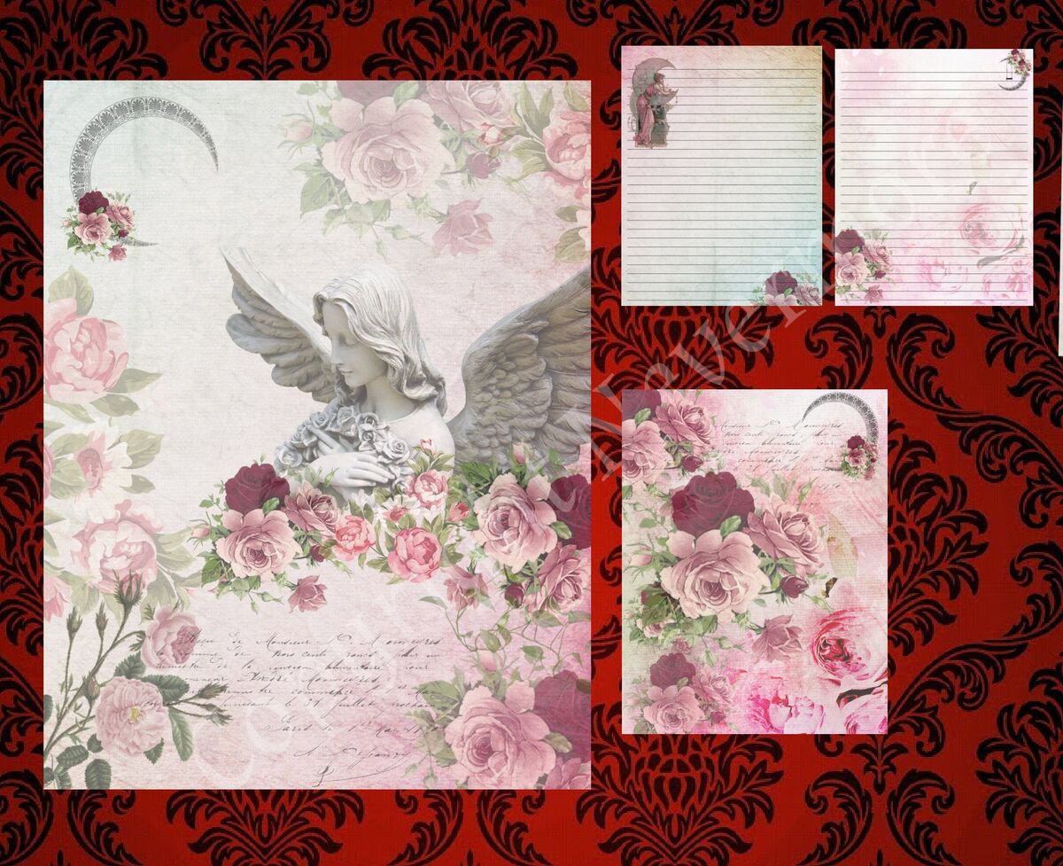 Junk Journal Vintage Roses Moon 10 Pages Digital Paper Flower Clip Art Printable Craft Ephemera Antique