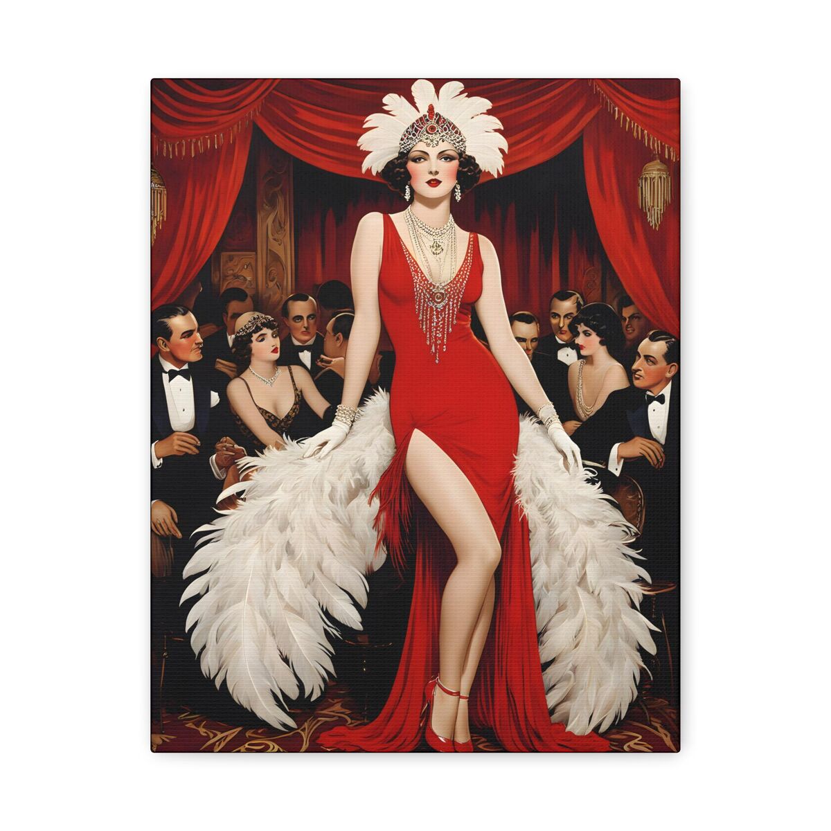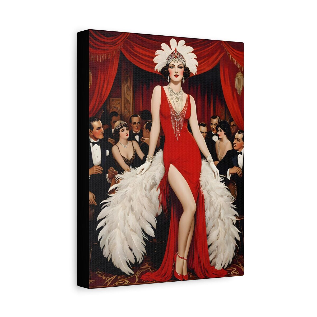 Lady In Red Speakeasy Wall Art Ziegfeld Girl Art Deco Canvas Print Gatsby Flapper Girl Portrait 1920s Gatsby Style Home Decor Poster