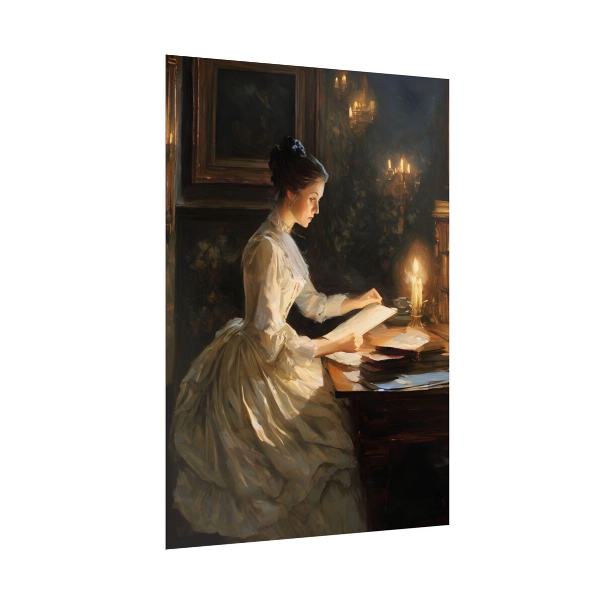 Lady In White Libary Dark Academia Wall Art Print Oil Painting Print Nocturne Painting Dark Victorain Dark Moody Wall Art