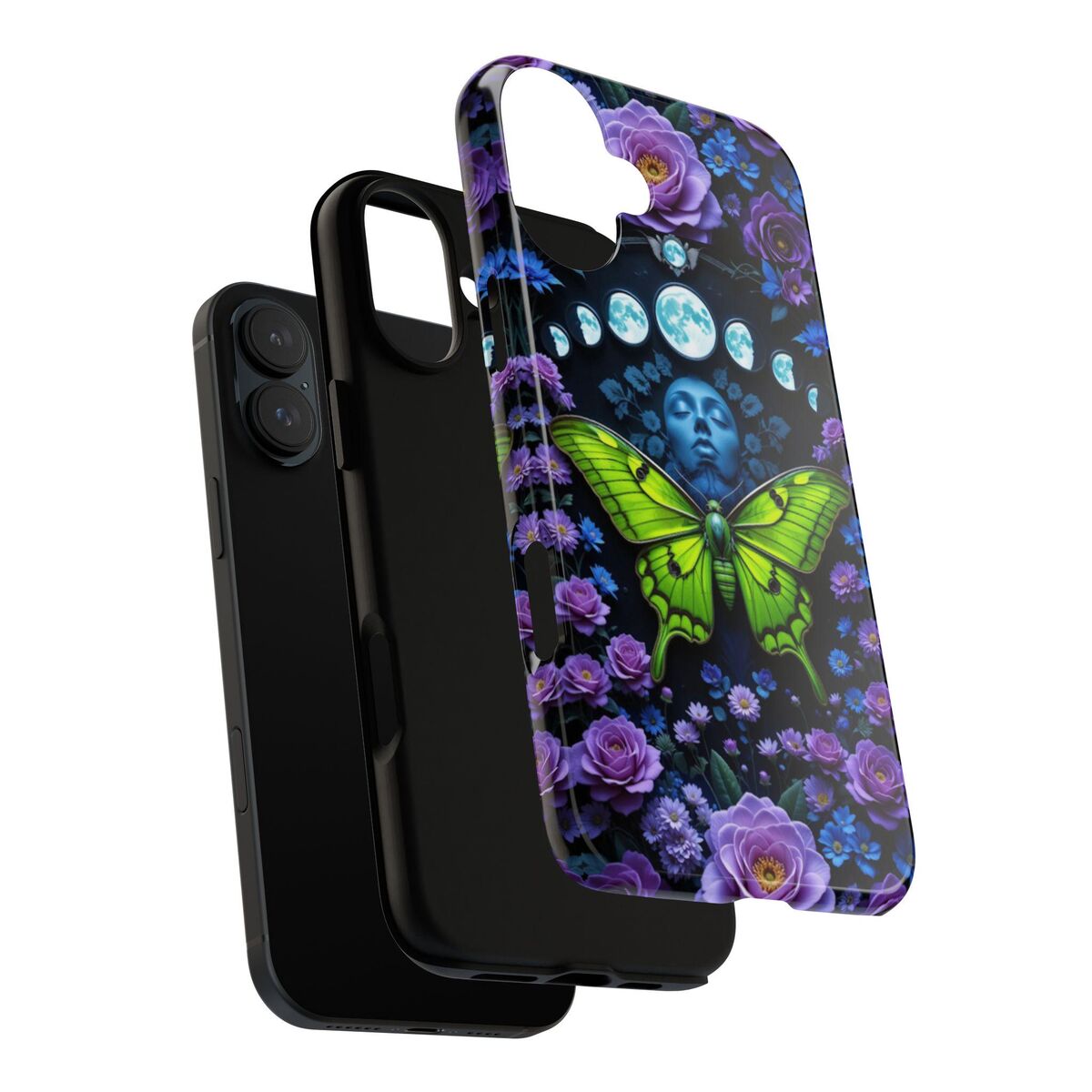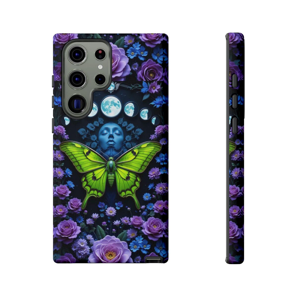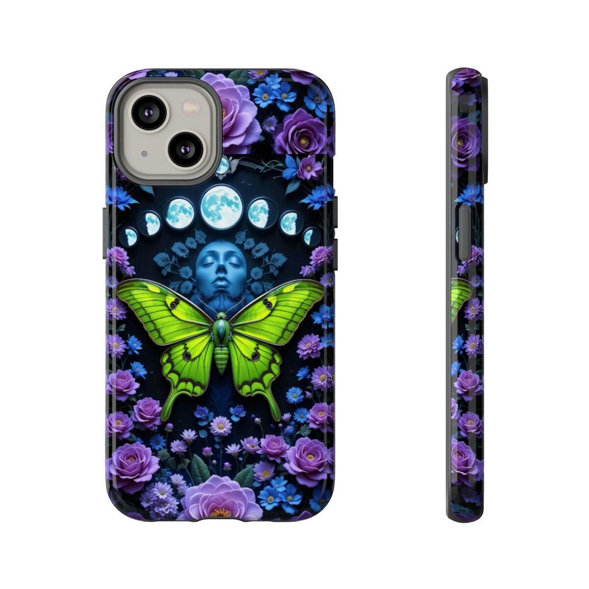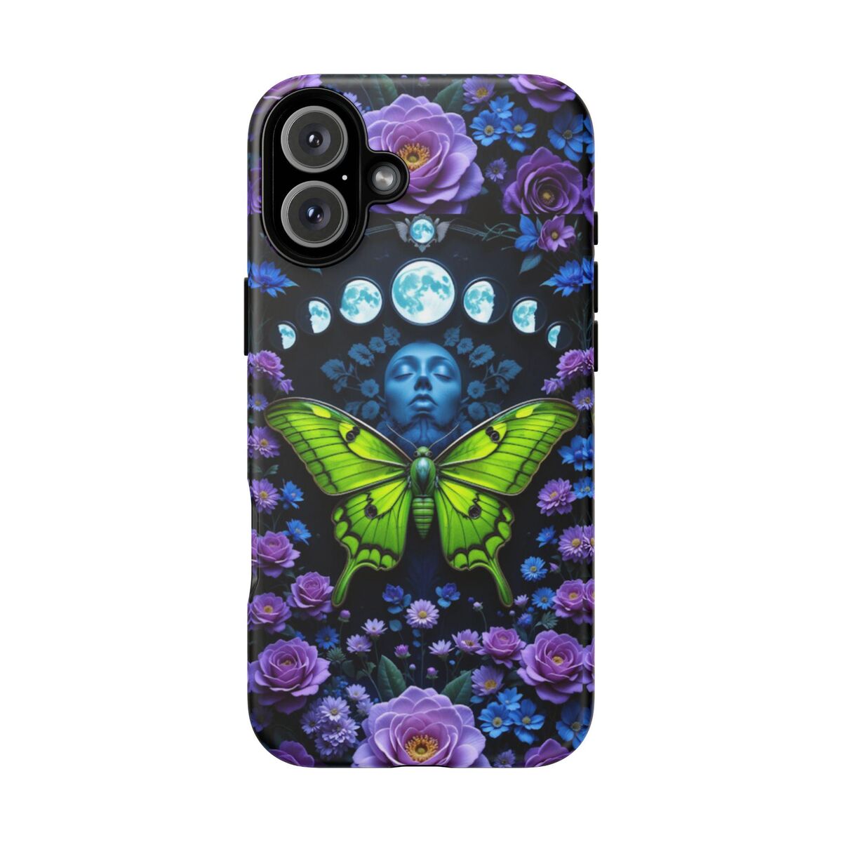 Luna Moth Moon Phase Phone Case Witchy Purple Blue Roses Unique Faux Stained Glass Fits iphone 16 15 14 13 Galaxy S25 S24 S23 Pixel And More