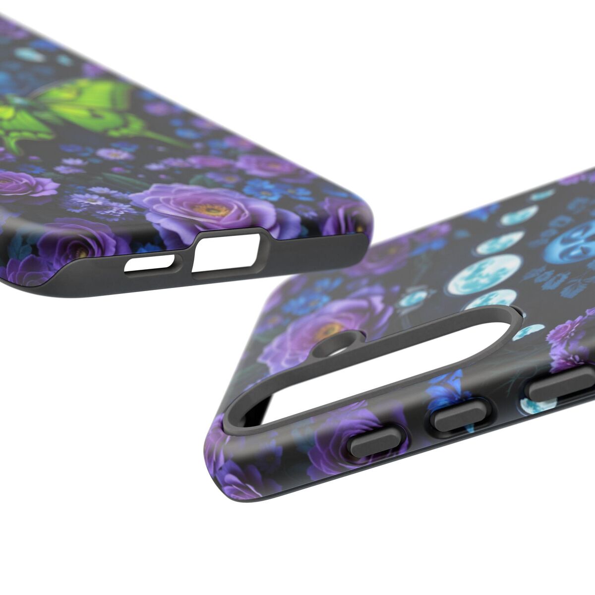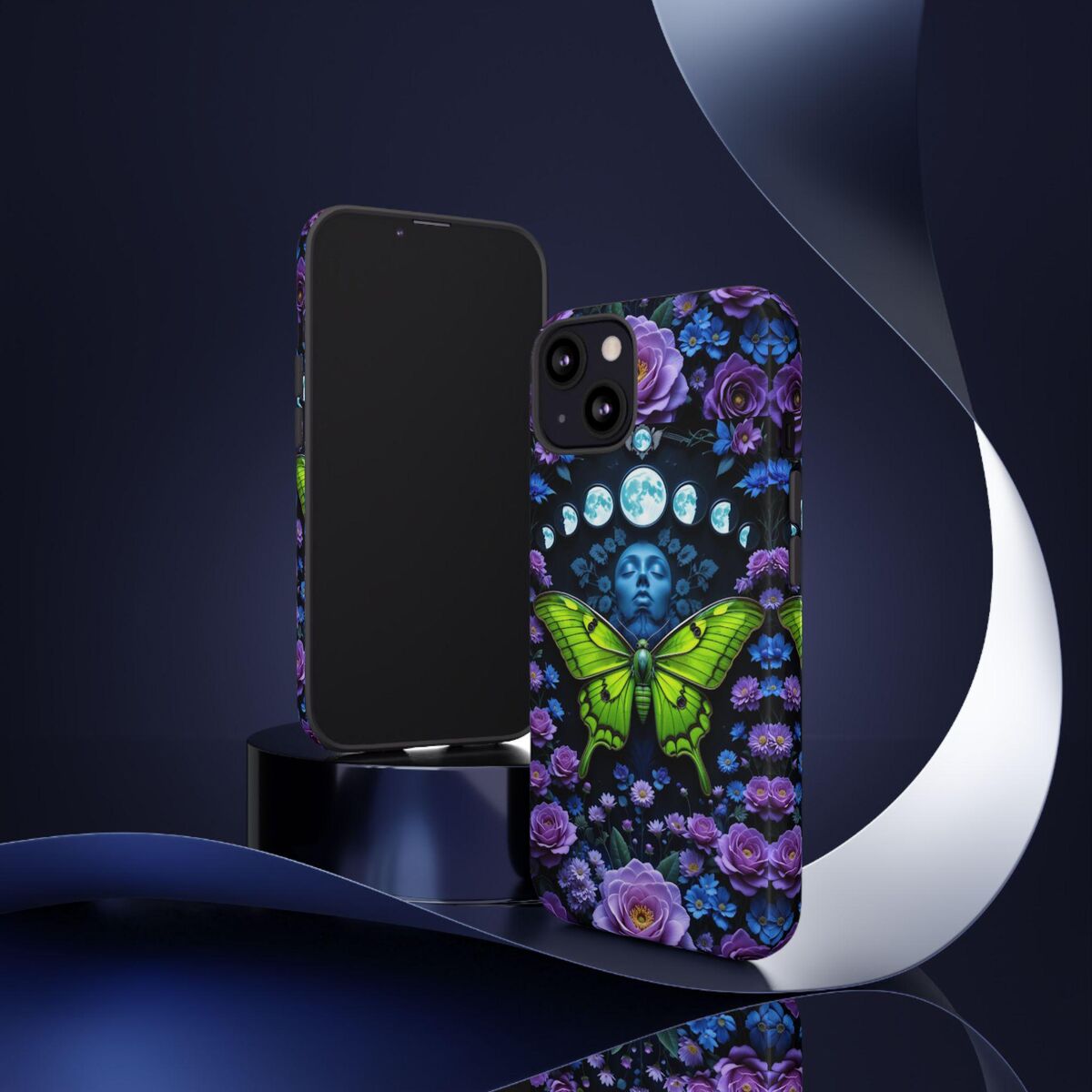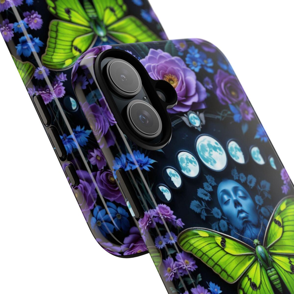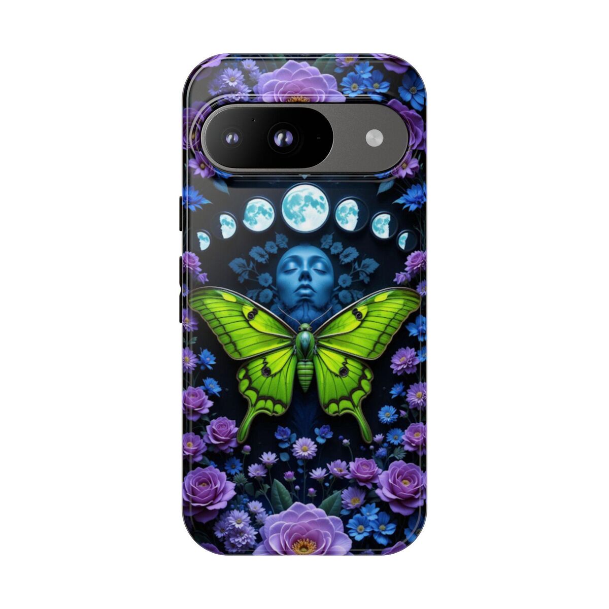 Luna Moth Moon Phase Phone Case Witchy Purple Blue Roses Unique Faux Stained Glass Fits iphone 16 15 14 13 Galaxy S25 S24 S23 Pixel And More