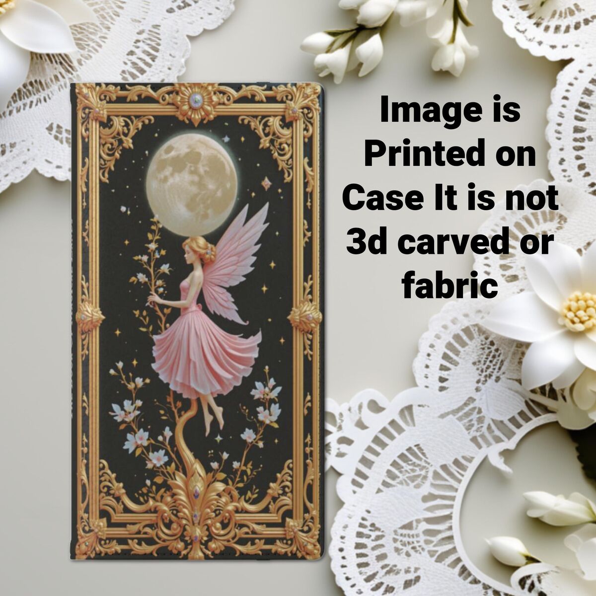 Blue Moon Fairy Book Phone Case Wallet Witchy Dark Academia Flip Case Card Case Fits iphone 16 15 14 Galaxy S25 And More